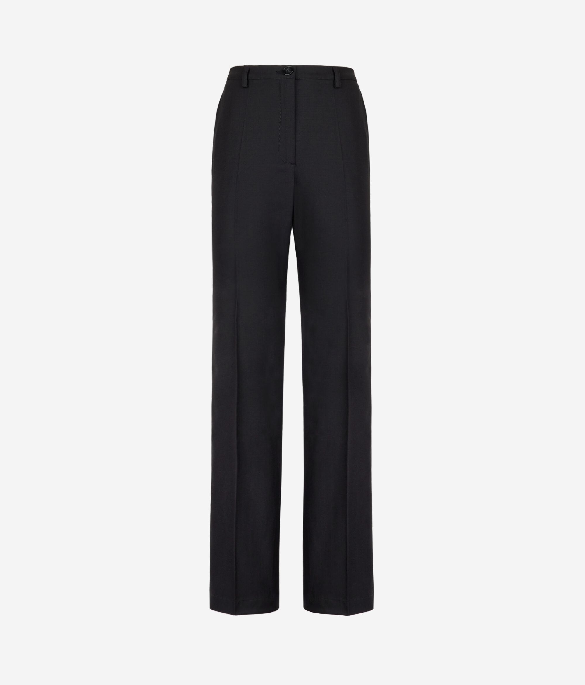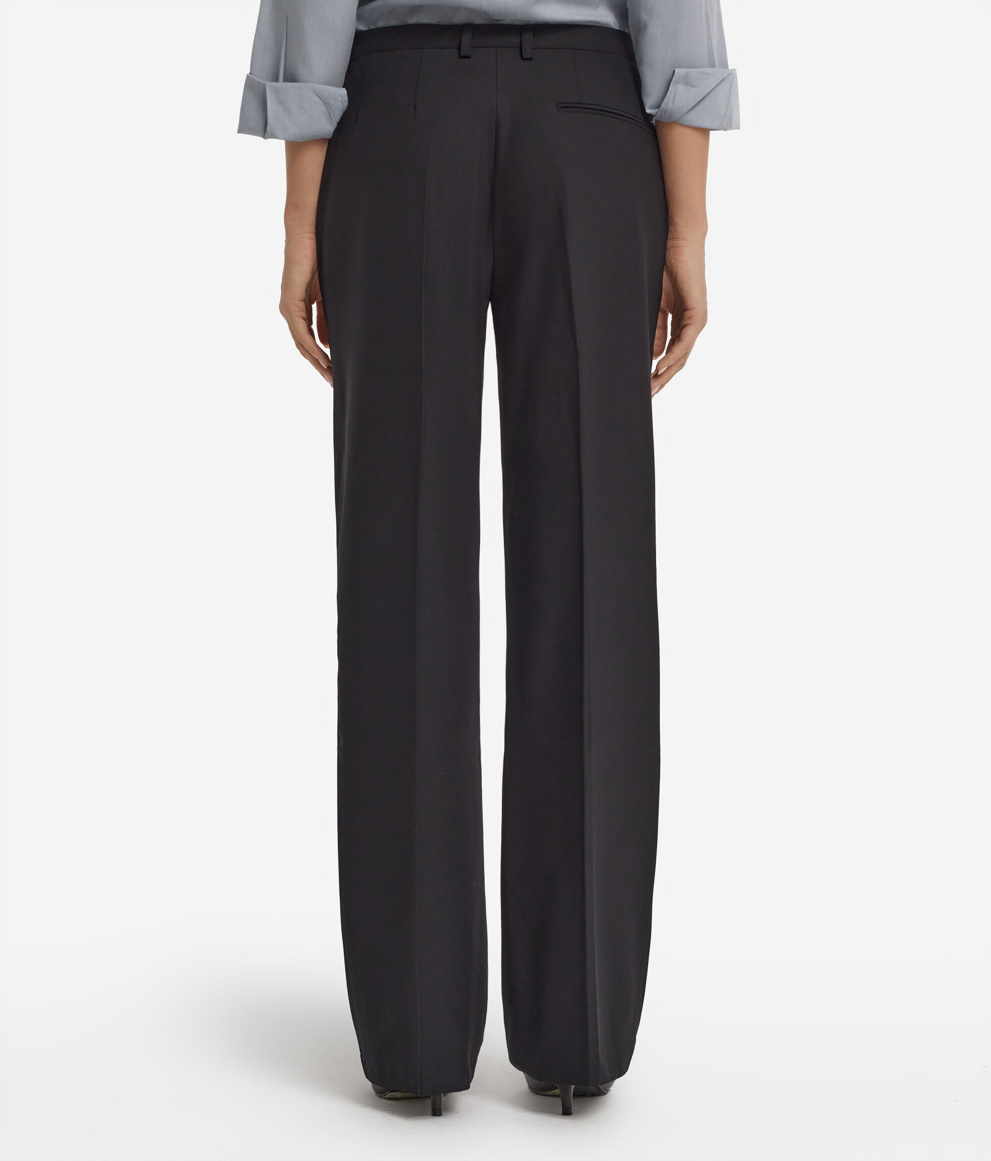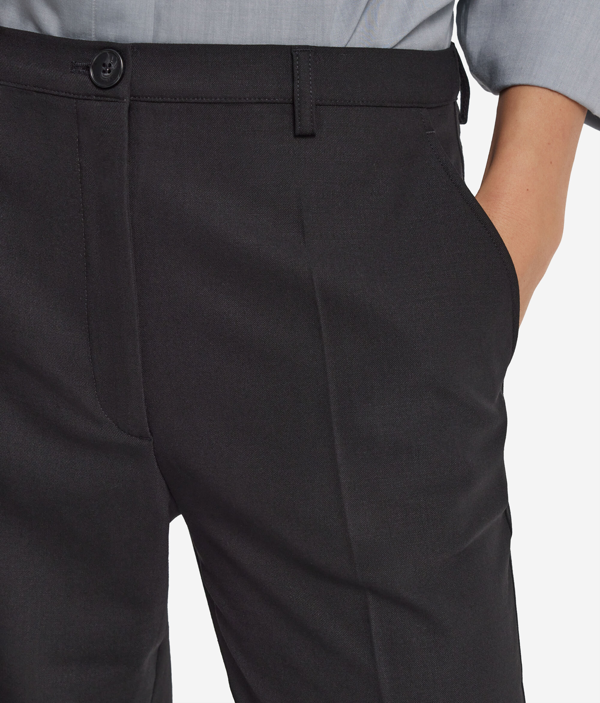 Κατασκευασμένο από μαλλί με λεία υφή, αυτό το παντελόνι σε στενή γραμμή τονίζει το πόδι με κομψό, σύγχρονο στυλ. Το ζωνάκι με θηλιές και το κλείσιμο με φερμουάρ και κουμπί εξασφαλίζουν μια λιτή γραμμή προσεγμένης ραπτικής, ενώ οι τσέπες σε αμερικάνικο στυλ προσδίδουν πρακτικότητα, διατηρώντας παράλληλα μια ισορροπημένη σιλουέτα. Άνετο παρά τη στενή γραμμή του, φτάνει μέχρι τον αστράγαλο προσθέτοντας μια μοντέρνα πινελιά που αναδεικνύει κάθε τύπο υποδήματος.