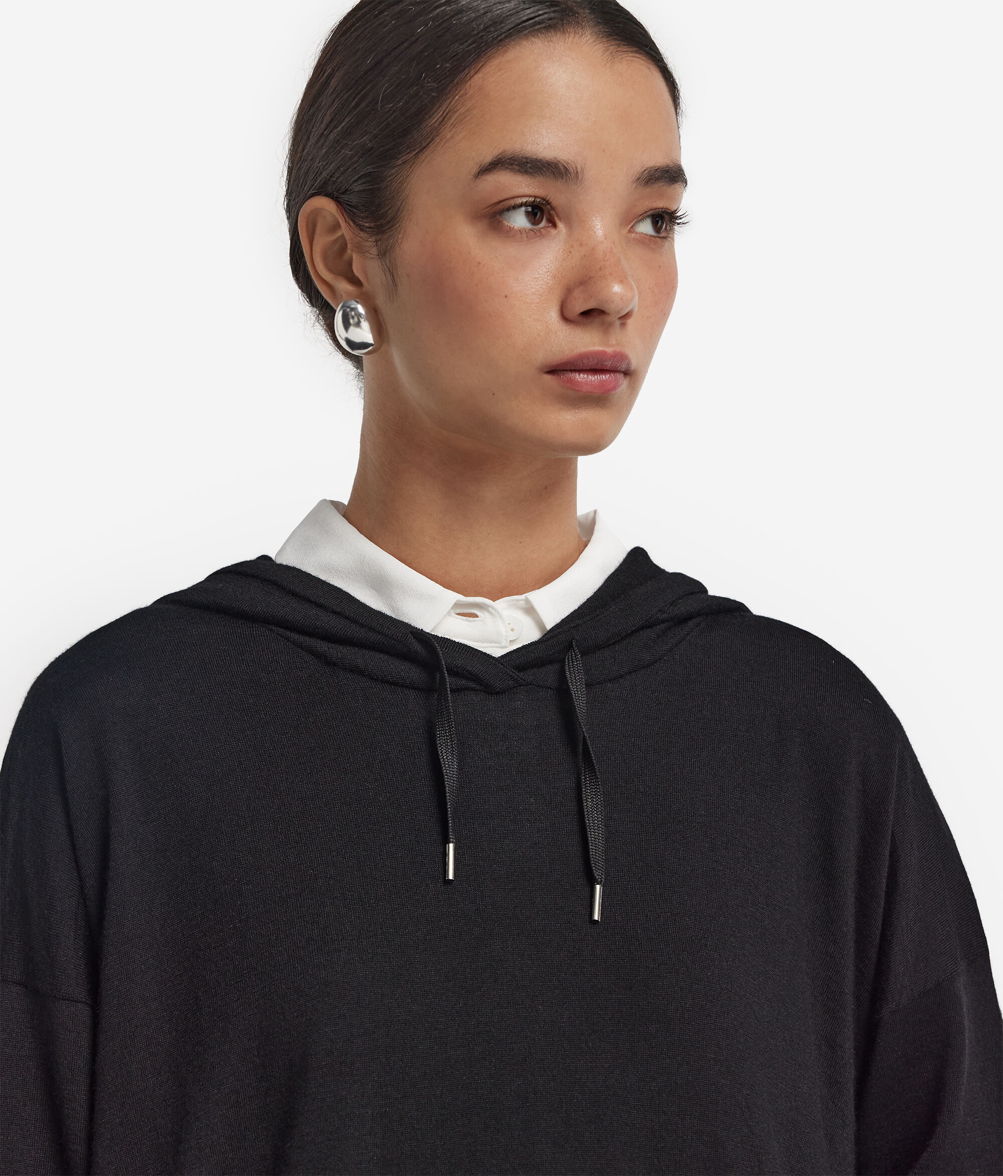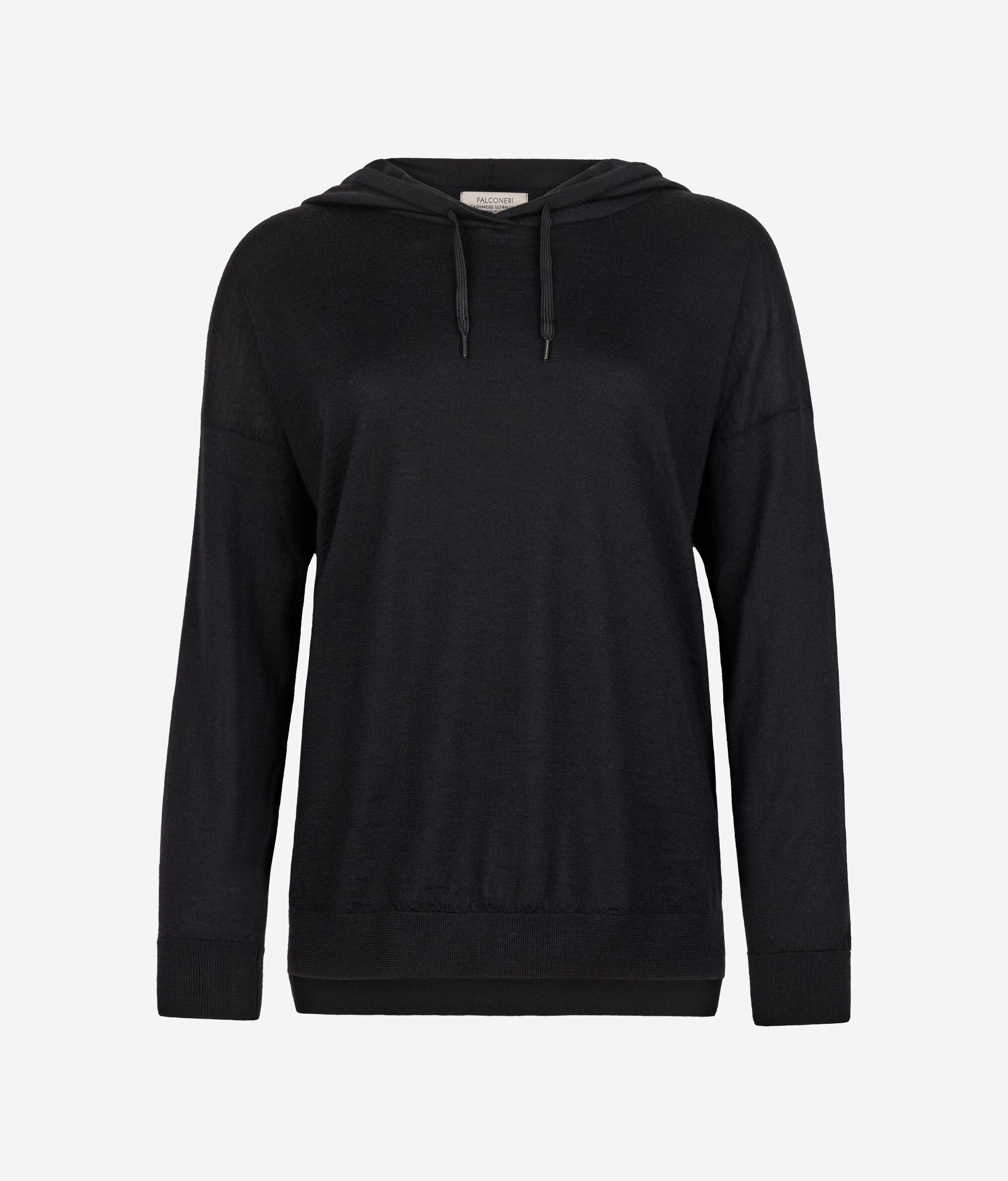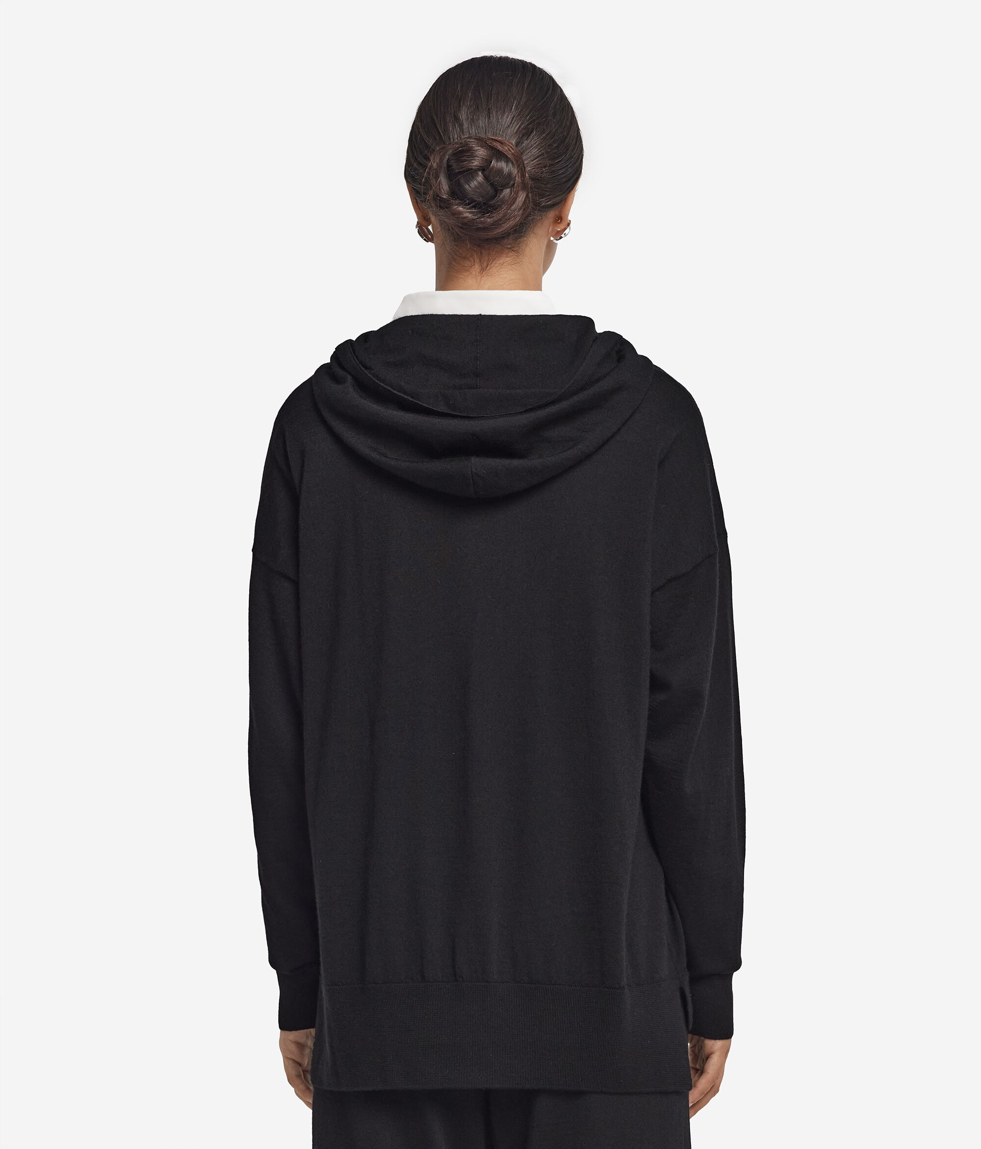 Φούτερ σε casual στυλ, με εκλεπτυσμένα νήματα από Ultrafine Cashmere. Κουκούλα με κορδόνι και χαμηλή μανικοκόλληση, για χαλαρή εμφάνιση και εφαρμογή που αγκαλιάζει το σώμα. Μικρά σκισίματα στη βάση για άνεση και ελευθερία κινήσεων. Ριμπ πλέξη στις μανσέτες και στη βάση που χαρίζει σταθερή δομή και ξεχωριστή υφή. Με ασύμμετρο μήκος και χαλαρή εφαρμογή, είναι η ιδανική επιλογή για κομψές casual εμφανίσεις και μοντέρνο στυλ.