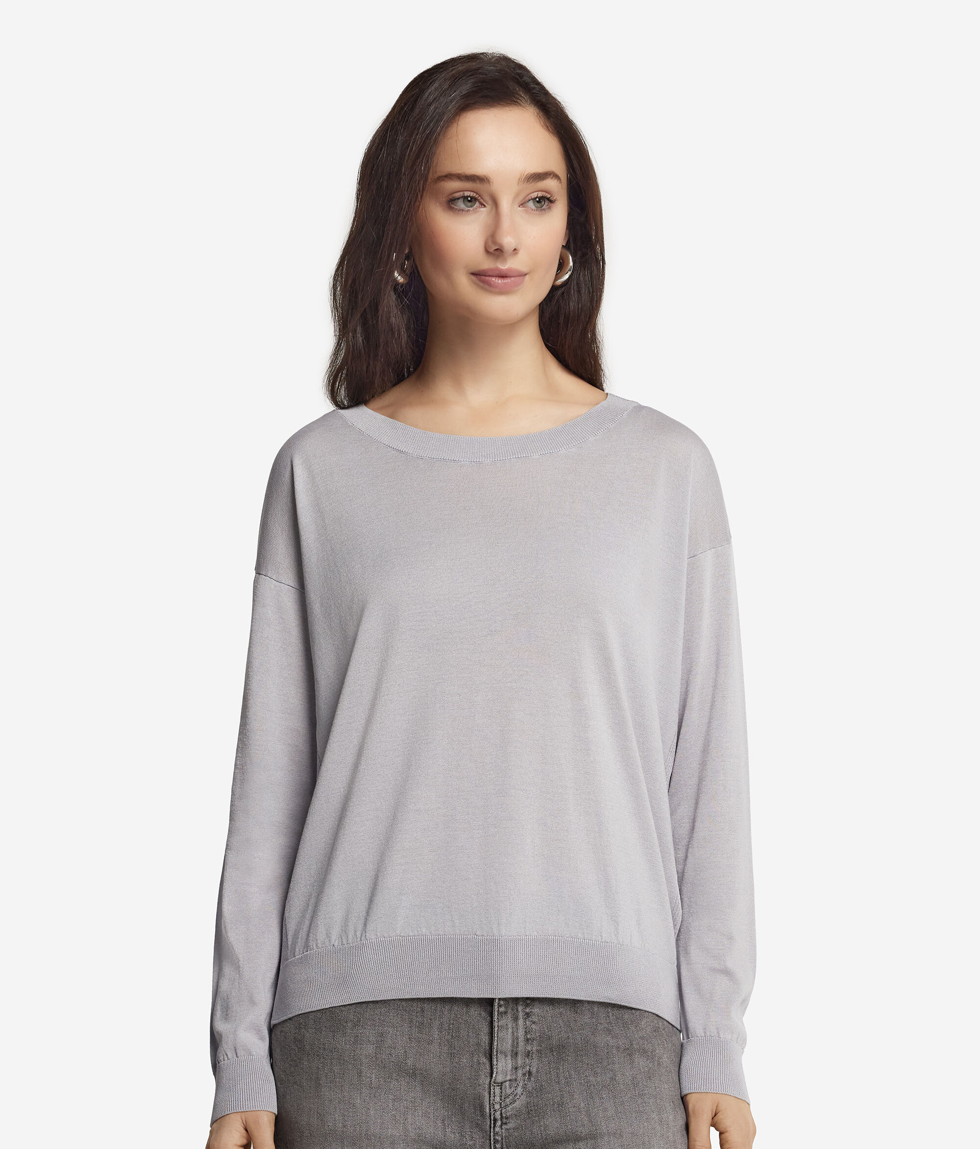 Η εκλεκτή ποιότητα του μεταξιού και του βαμβακιού διακοσμεί τις χαλαρές γραμμές αυτής της μπλούζας με φαρδιά λαιμόκοψη και της προσδίδει ρευστή και ευχάριστη υφή. Ένα ευκολοφόρετο, μοναδικό και απαραίτητο ρούχο, ιδανικό με κάθε συνδυασμό.