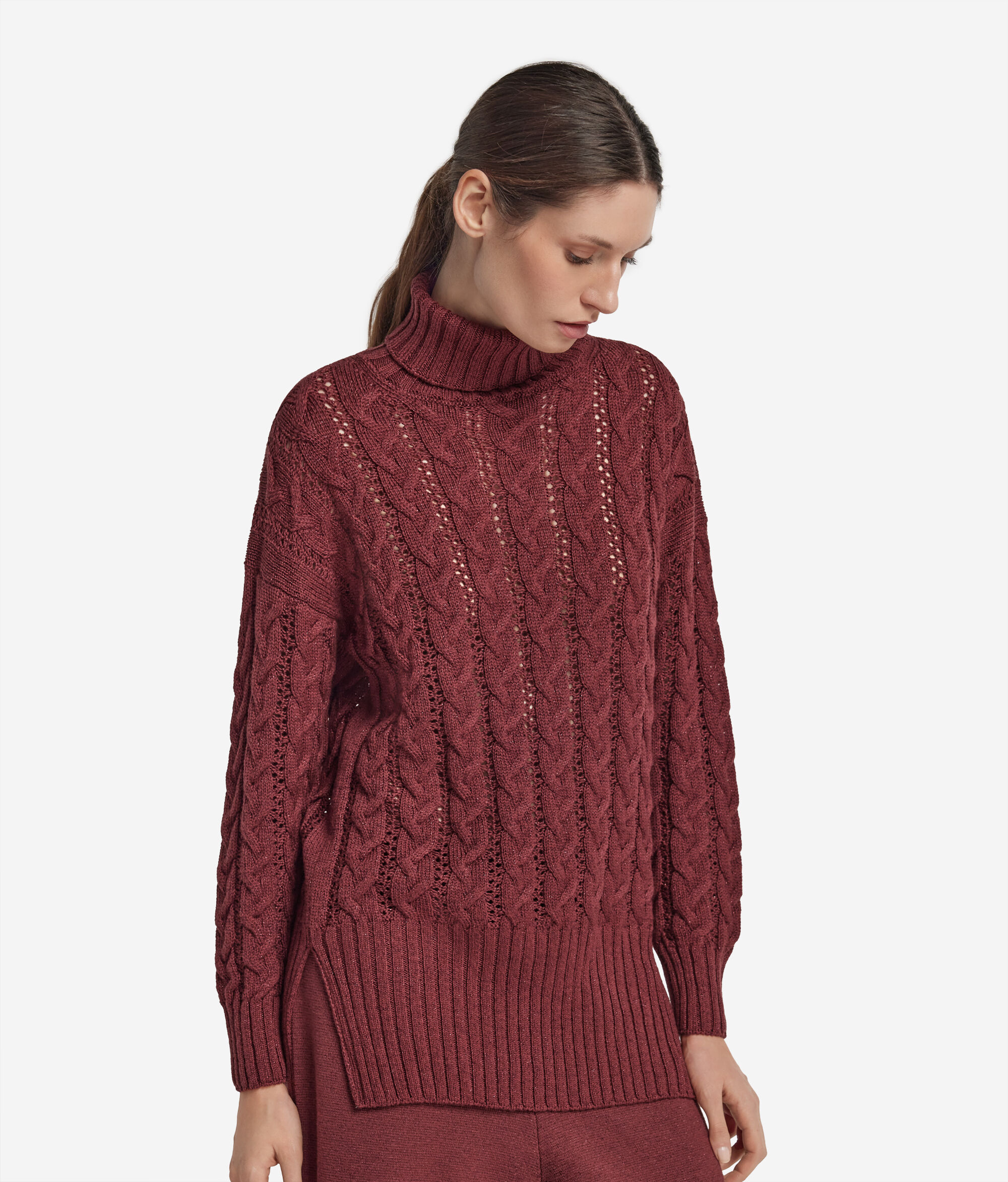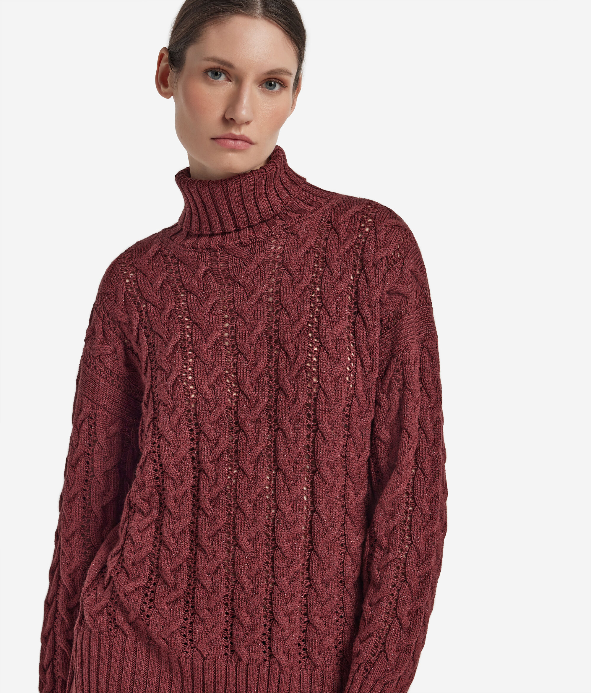 Dolčevita s uzorkom pletenica od vune lureks