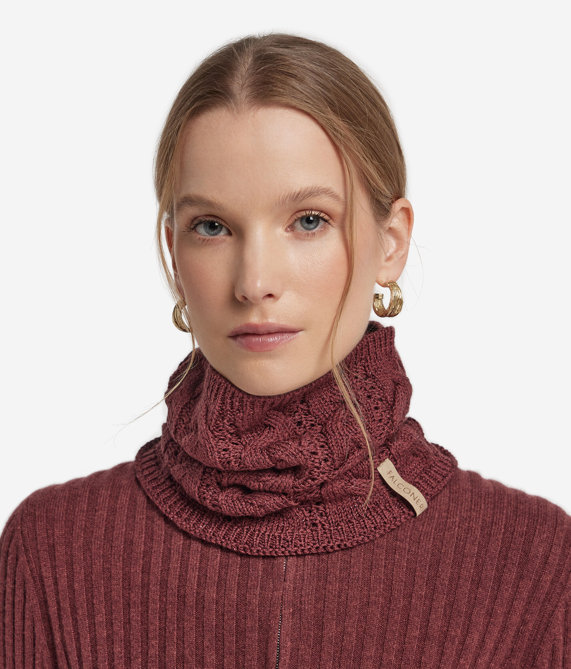 Dodatak koji spaja toplinu i stil: izrađen od lamé vune, ovaj grijač za vrat hvata svjetlost s nježnim sjajnim efektom, dok rupičasto pletivo i vertikalne pletenice daju odjevnom predmetu teksturu i pokretljivost. Elegantan i moderan, dizajniran je kako bi u hladnijim danima dao dodir sofisticiranosti i prepoznatljivosti.