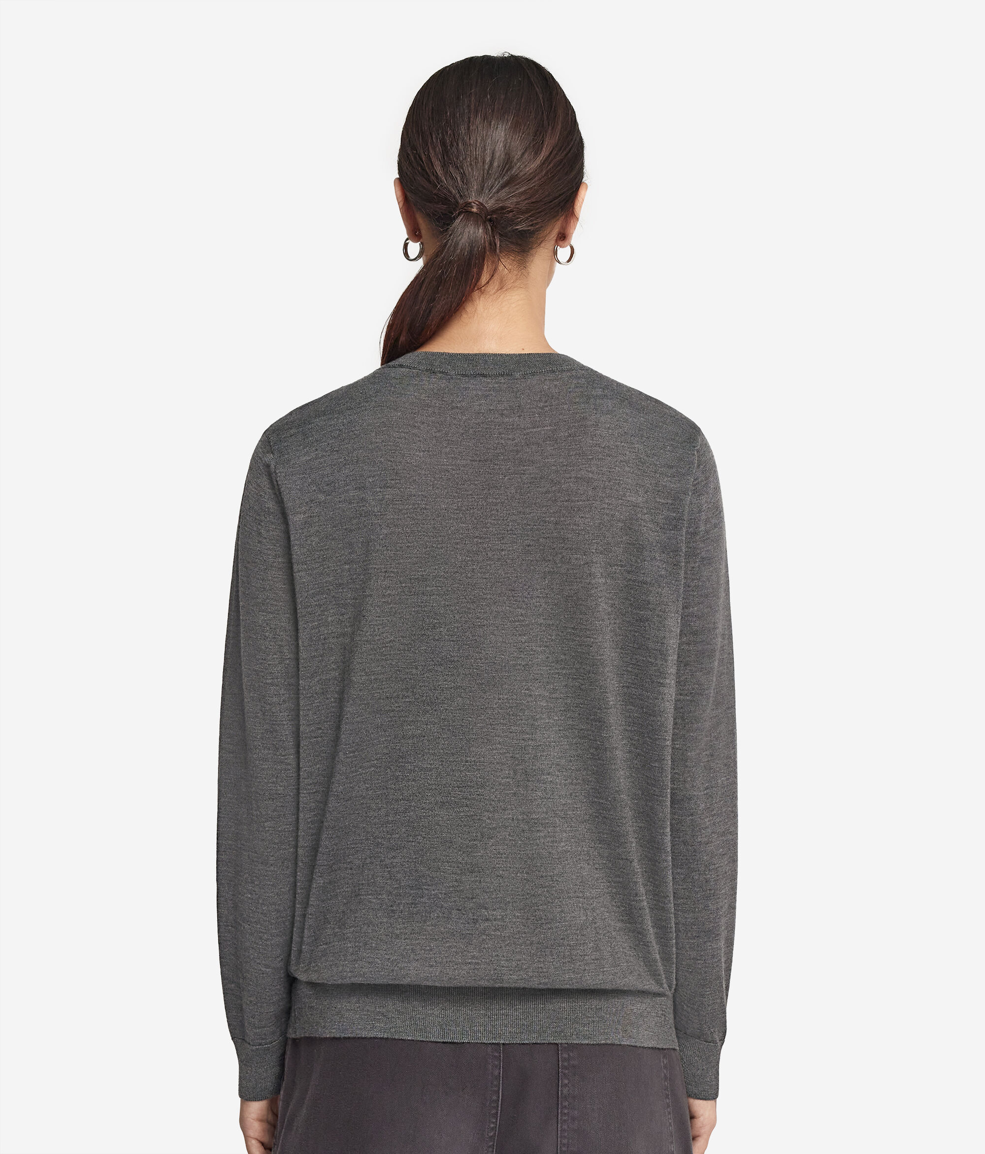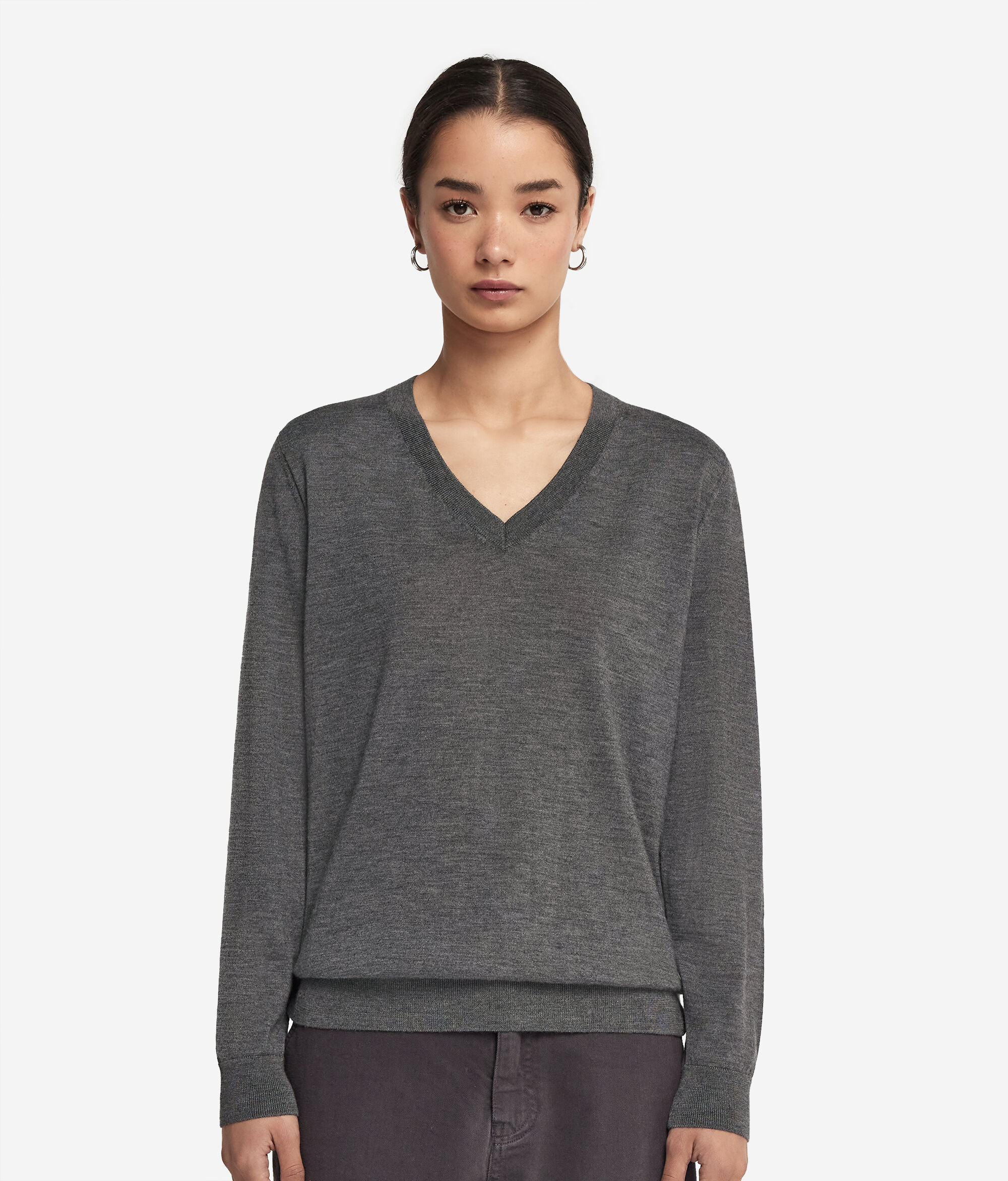 Dodajte luksuz i udobnost svojoj garderobi uz majicu s ovratnikom na V-izrez od ultrafinog kašmira. Dizajn je obogaćen rebrastom izradom na ovratniku, manžetama i donjem dijelu, dajući dodir klase minimalnom stilu odjevnog komada. Zahvaljujući svom mekom kroju, savršena je mješavina klasike i modernog koja dodaje dašak diskretnog, ali bezvremenskog luksuza u svaki ormar.