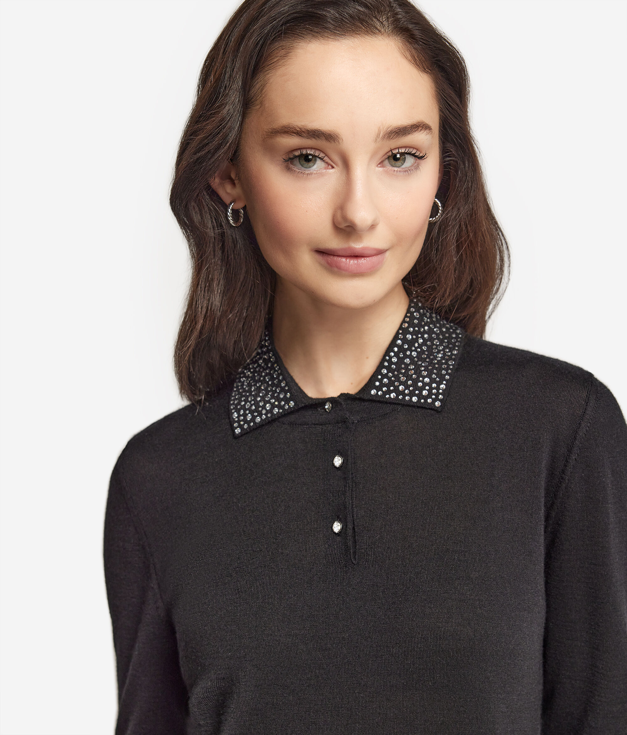 • Zatvaranje ovratnika s vidljivim gumbima u obliku dragulja