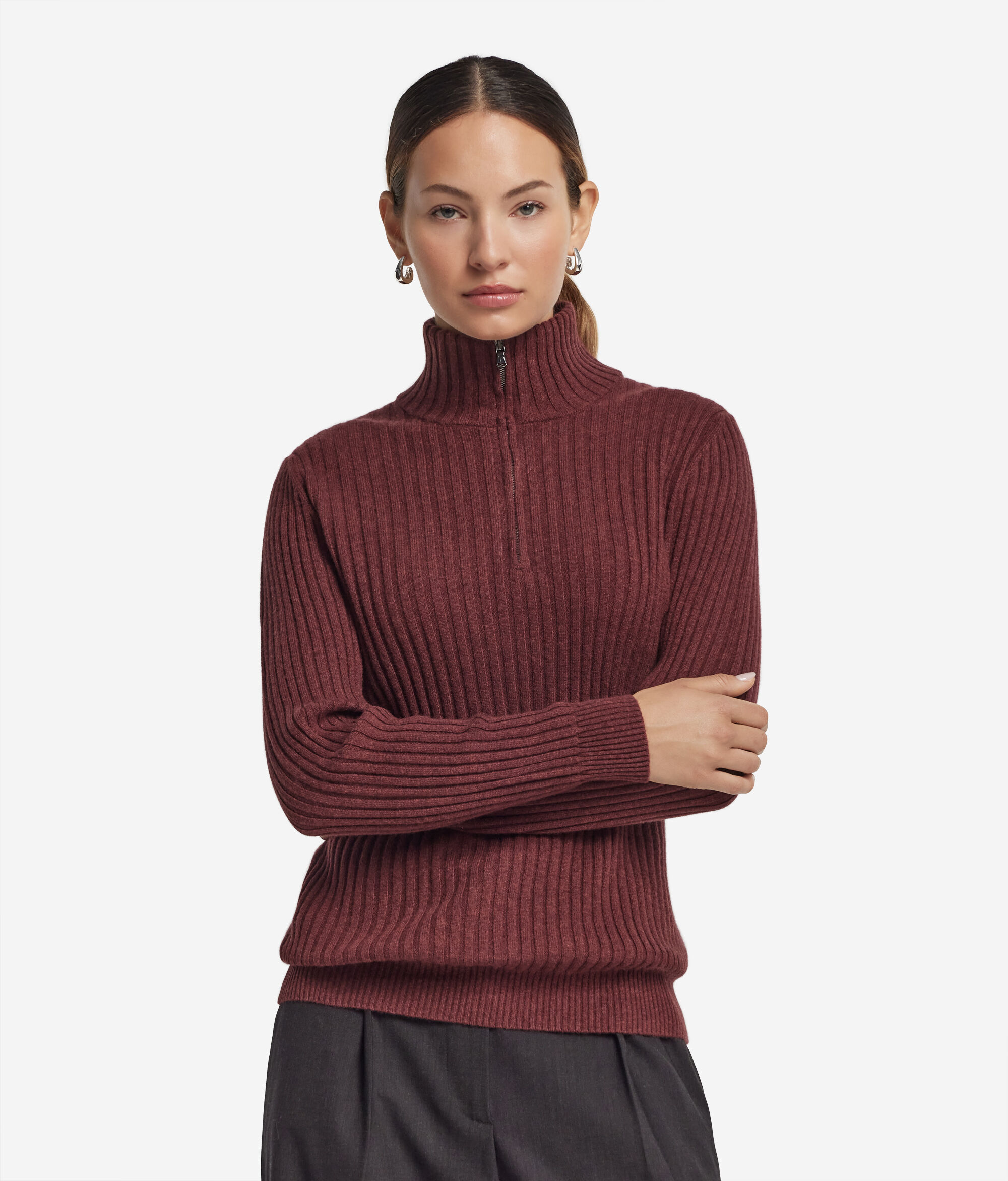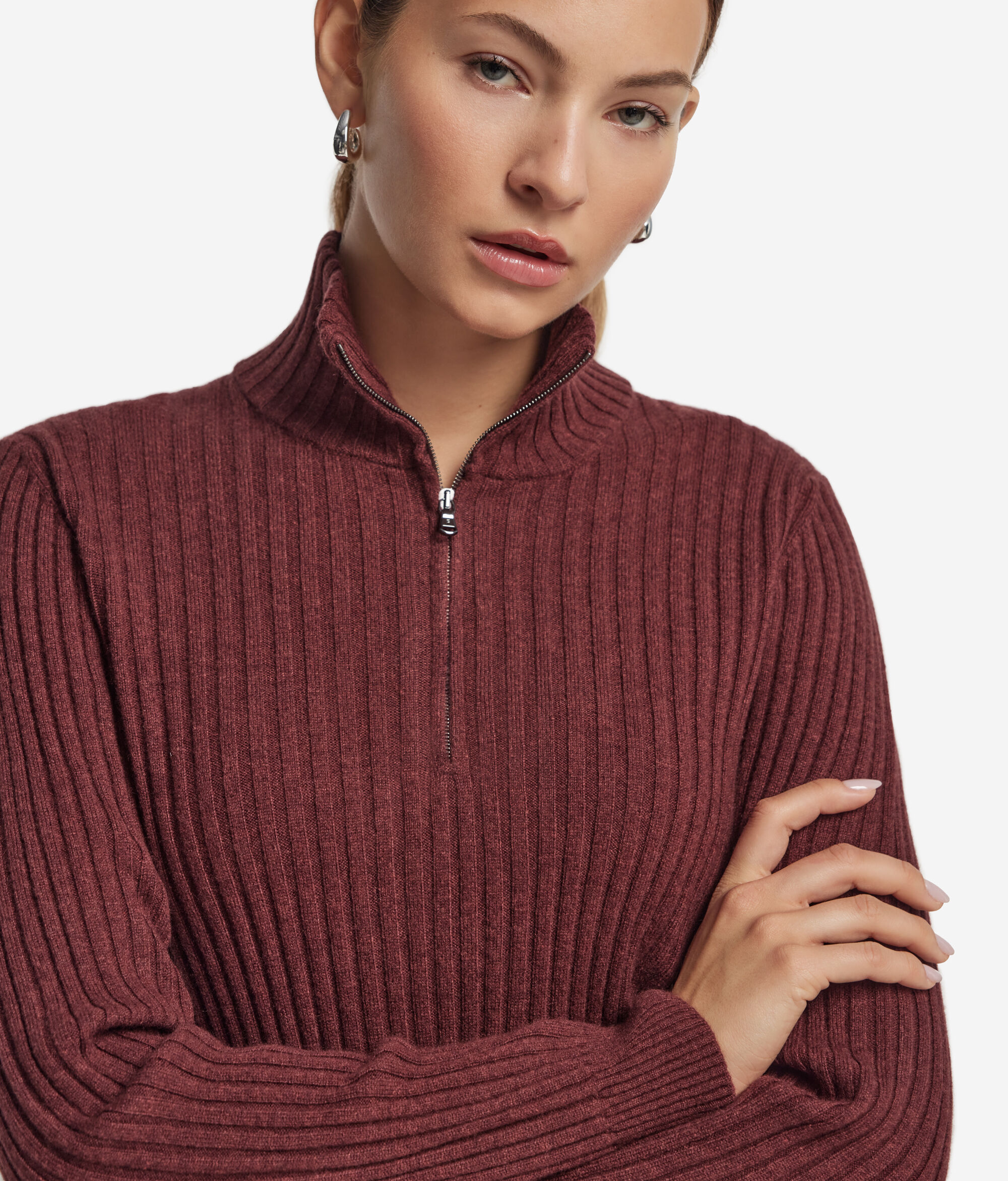 Rebrasti pulover s polu-patentnim zatvaračem od ultramekog kašmira