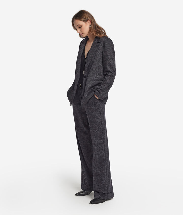 Predimenzionirani dugi sako od vune s uzorkom riblje kosti