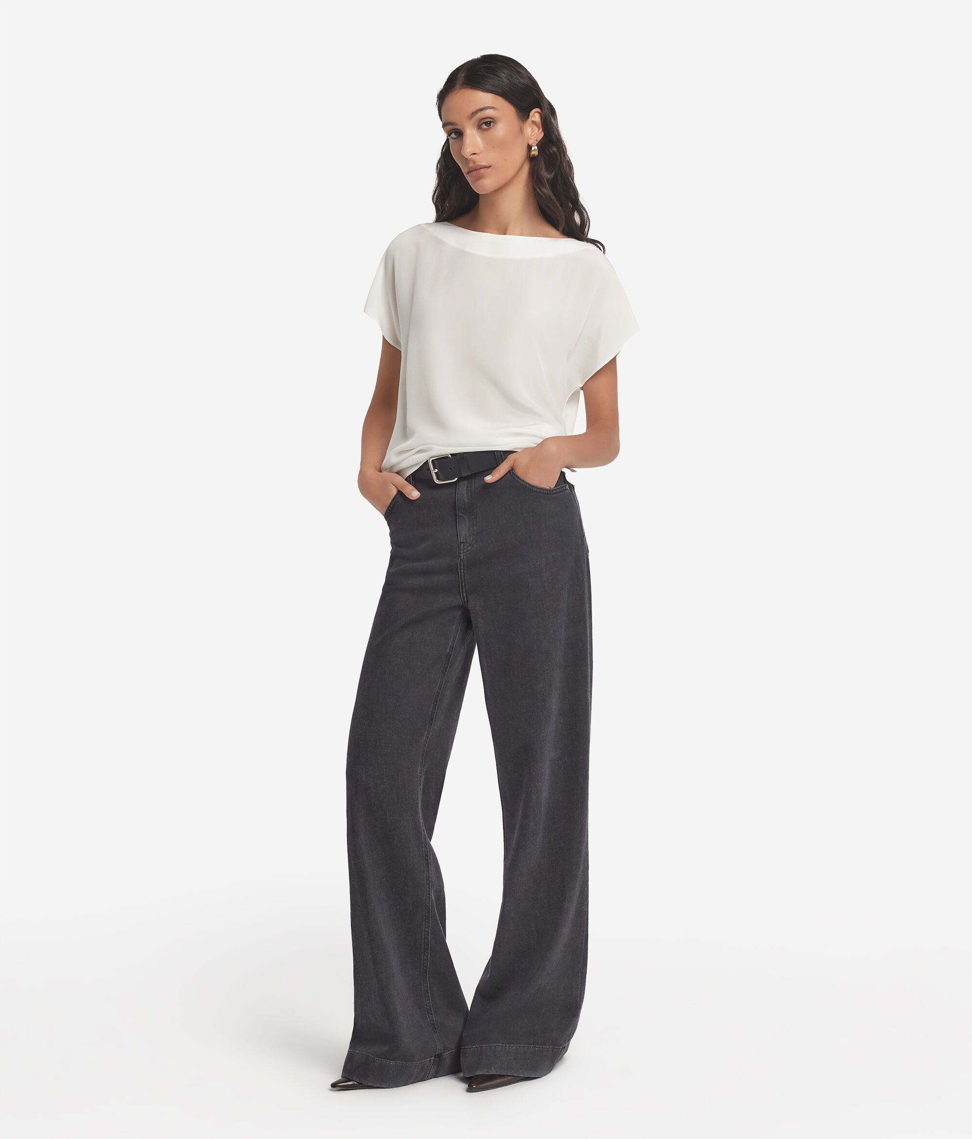 Majica kratkih rukava s ovratnikom s lađa-izrezom od svile i modala88,00 €Odaberite svoju bojuBijelaSvjetlosiva sedefastaTAMNOPLAVA+ 1Odabrana boja: Bijela