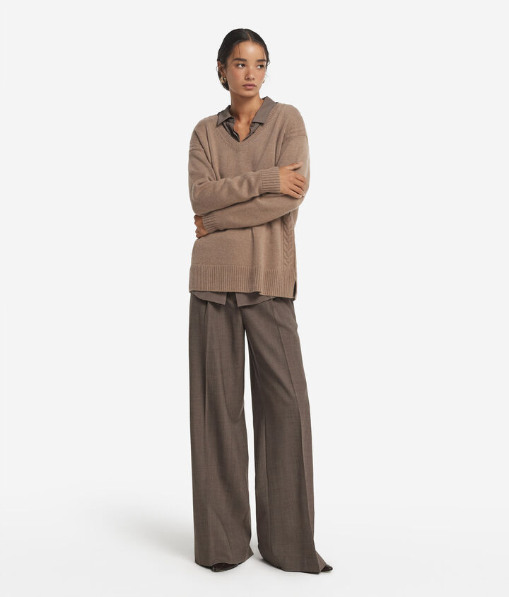 Majica s ovratnikom na V-izrez od kašmira s bočnim prorezima