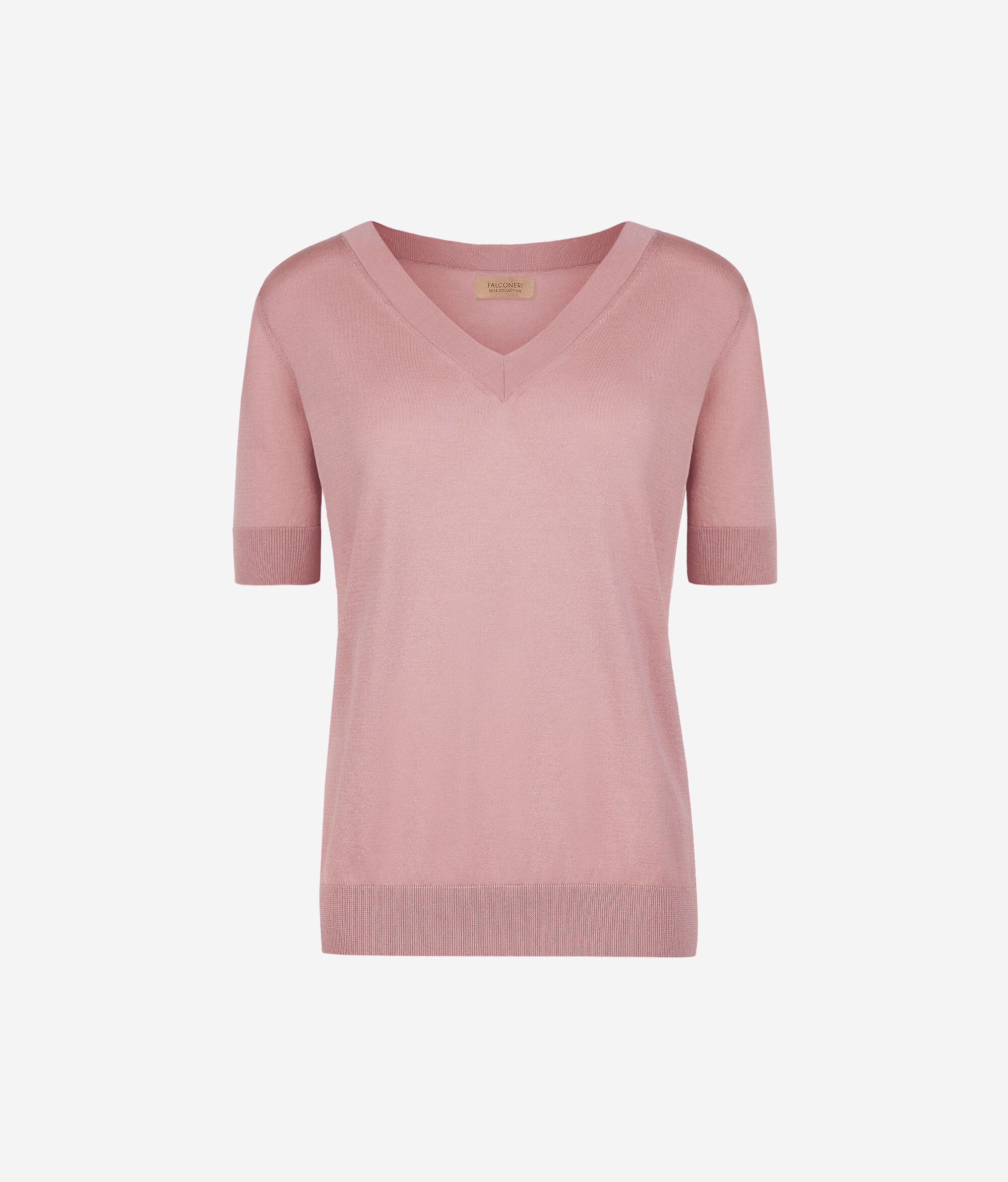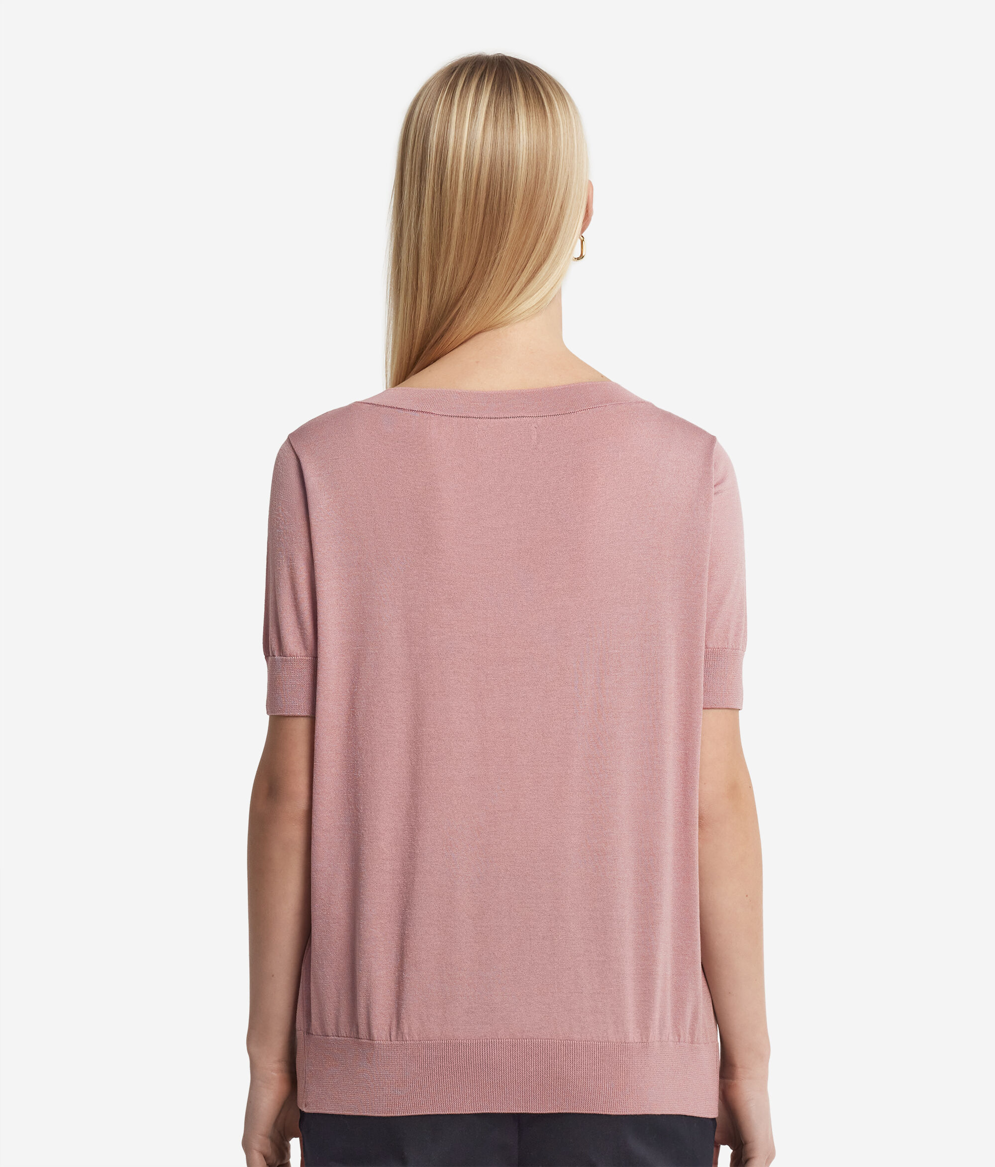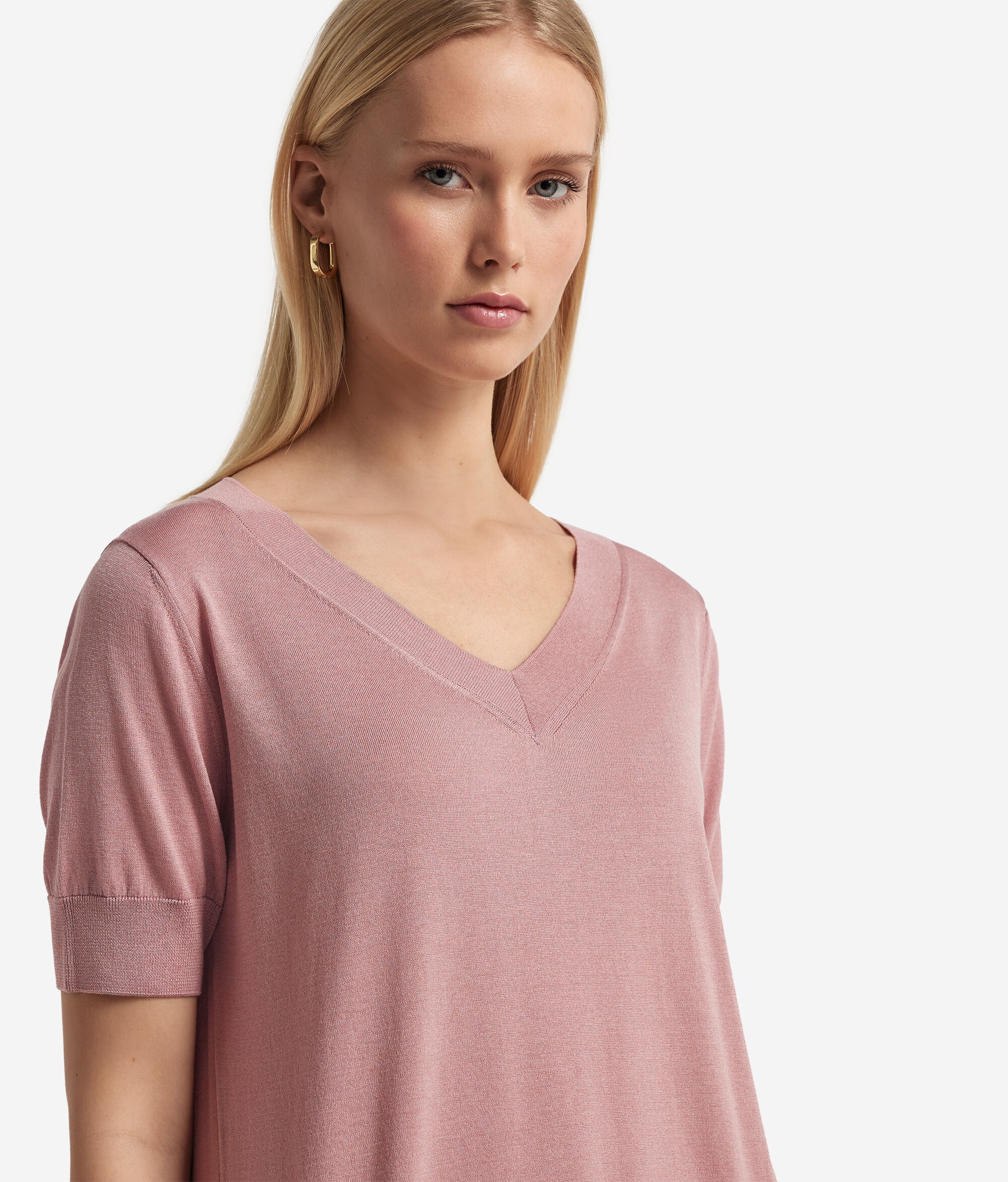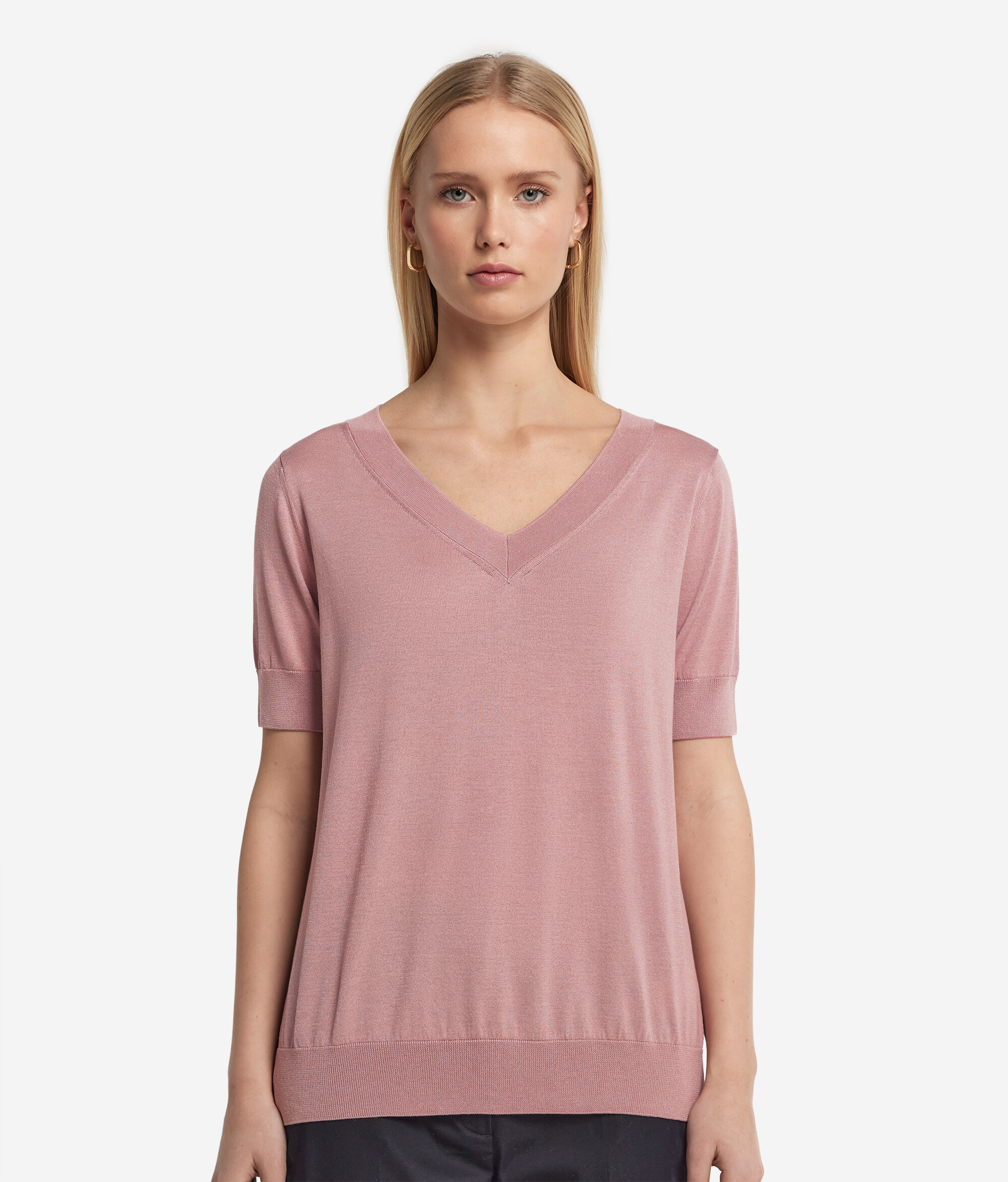 Short-Sleeved V-Neck Silk and Cotton Jumper