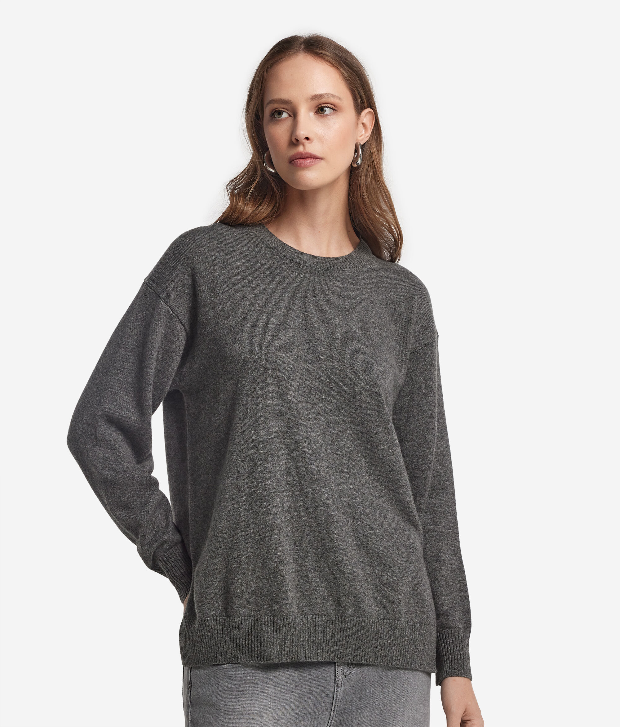 Created in fine Ultrasoft Cashmere, this round-neck jumper embodies essential elegance combined with enveloping softness. The extraordinarily soft touch hugs the silhouette with lightness, while the subtle side slits give harmony and fluidity to movement.