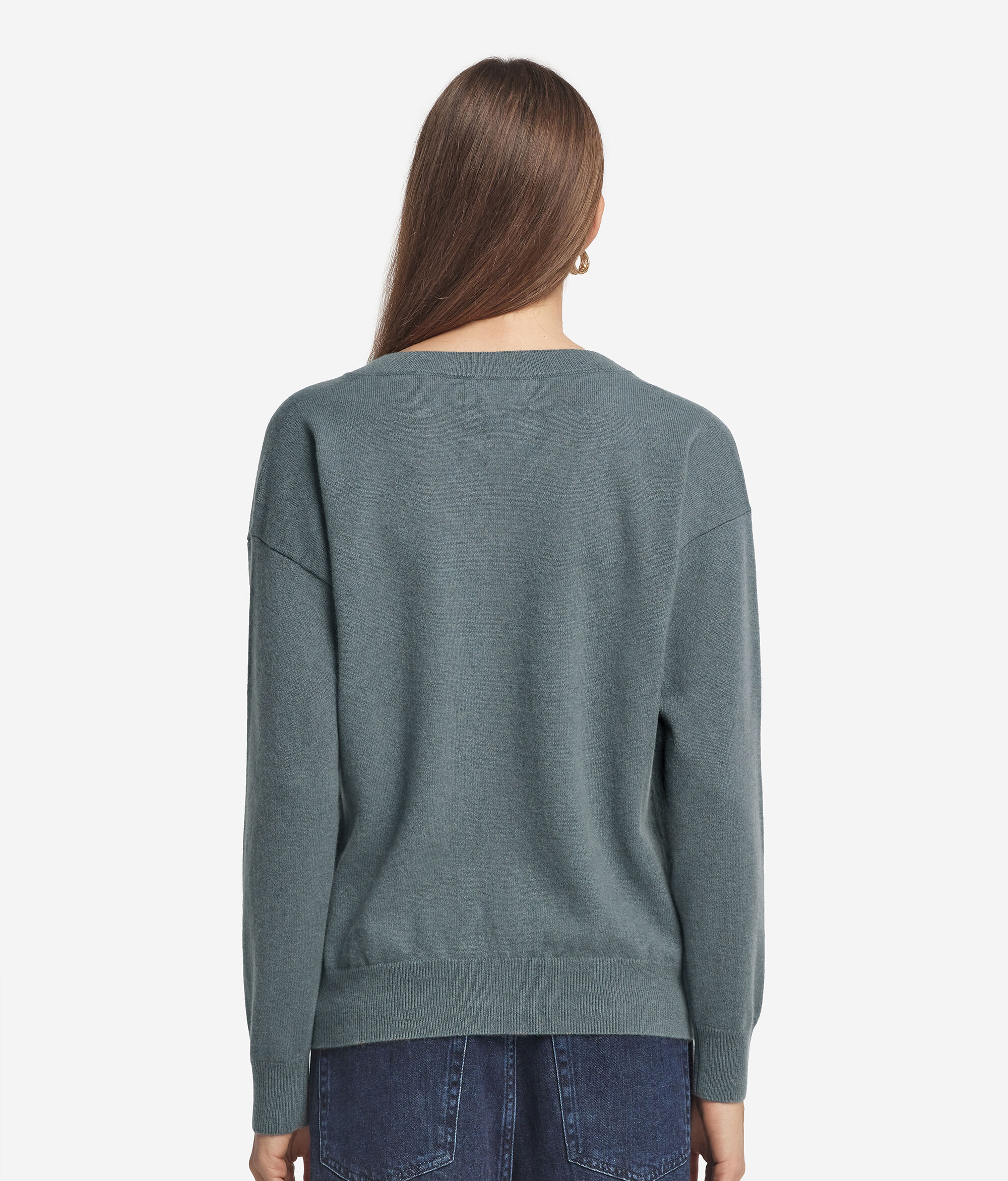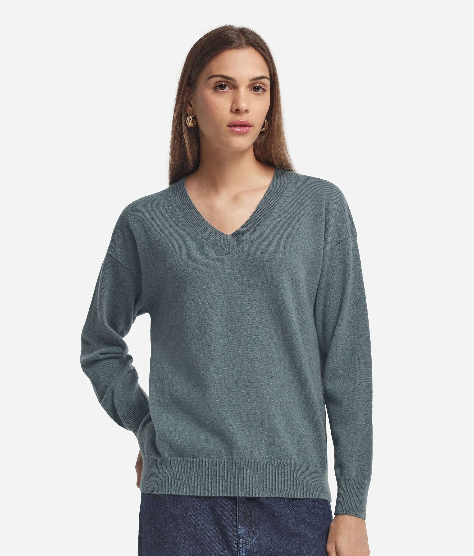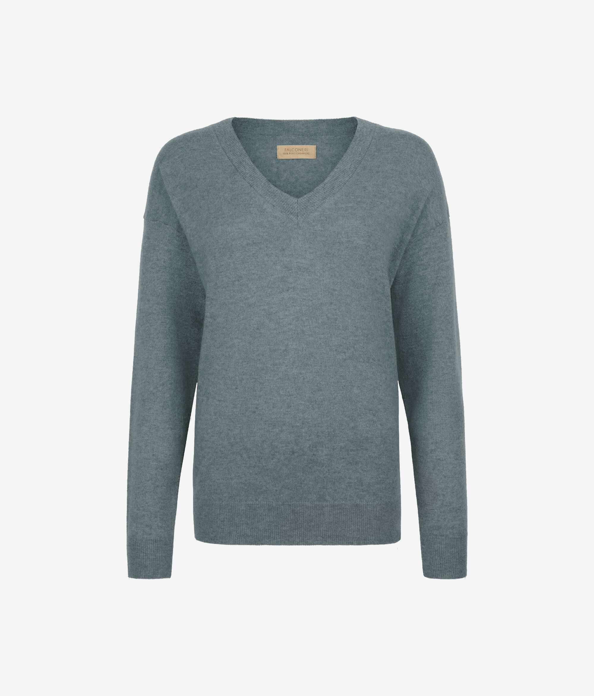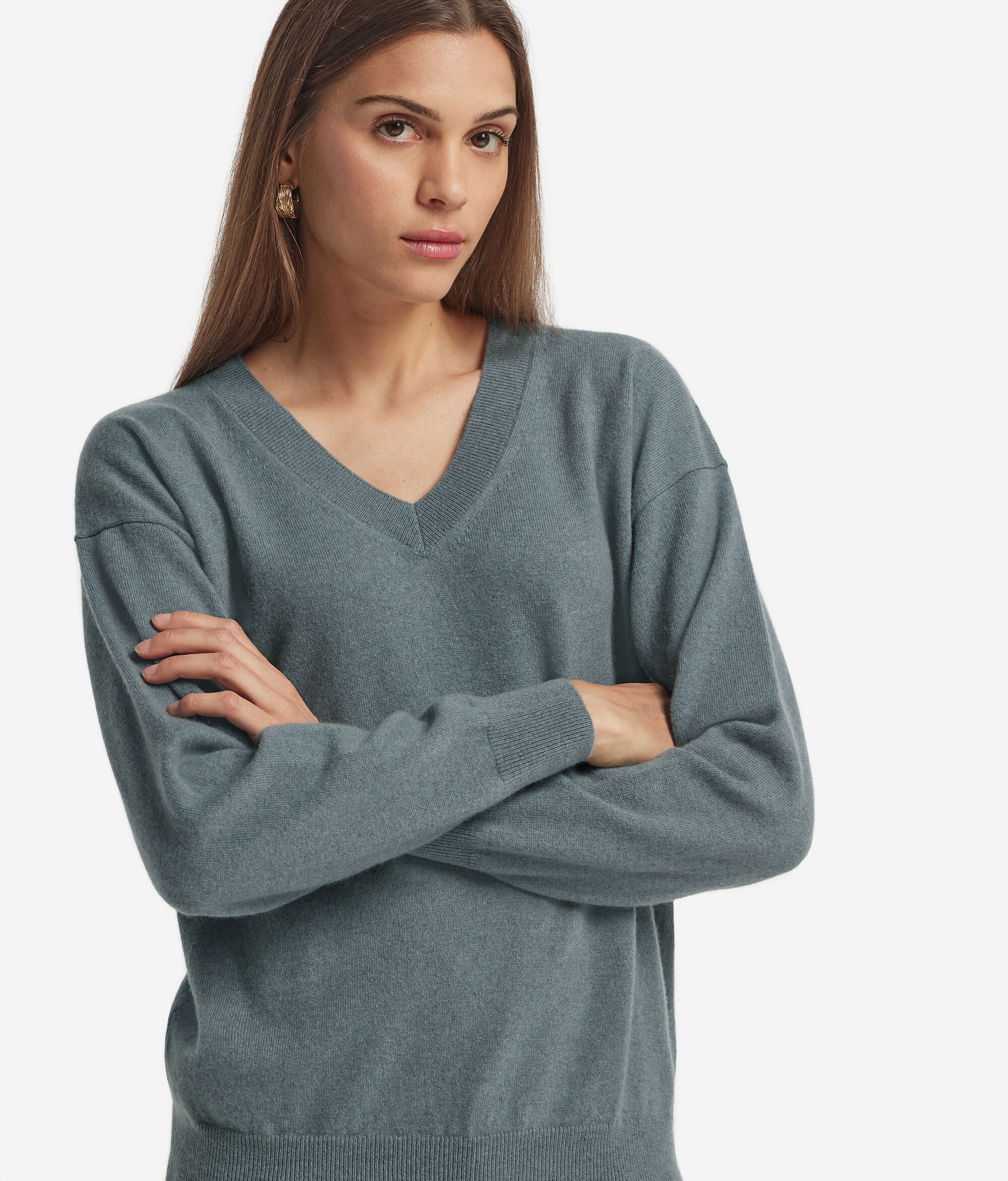 Created in Ultrasoft Cashmere, this V-neck jumper will become a key piece in your wardrobe for cooler days. The edge, cuffs and neckline are embellished by ribbed knit that adds a touch of refinement. The dropped shoulders and its loose wearability provide a relaxed and natural fit that comes up to a fashionable and contemporary style.