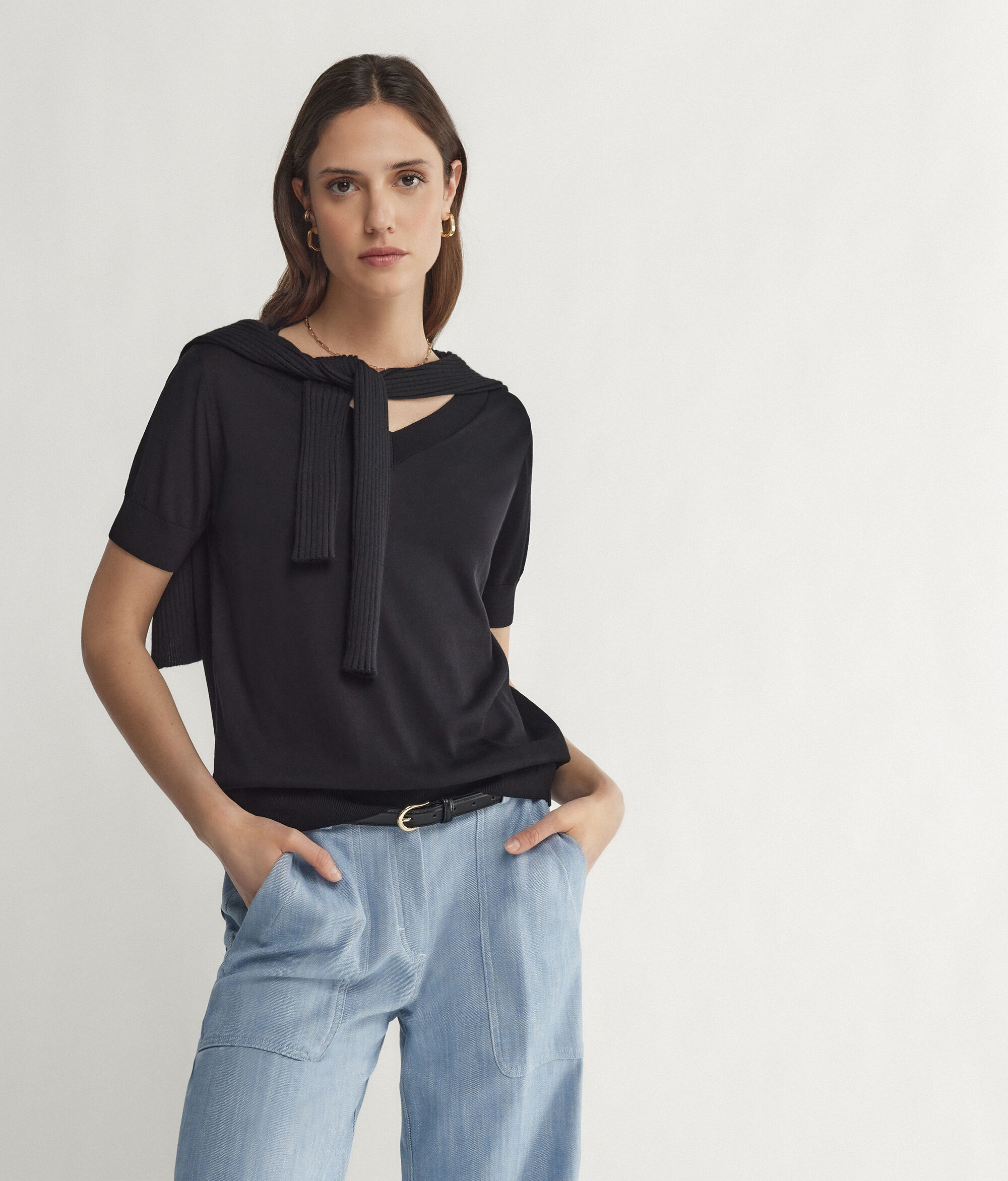 Short-Sleeved Round-Neck Ultrafine Cashmere Top