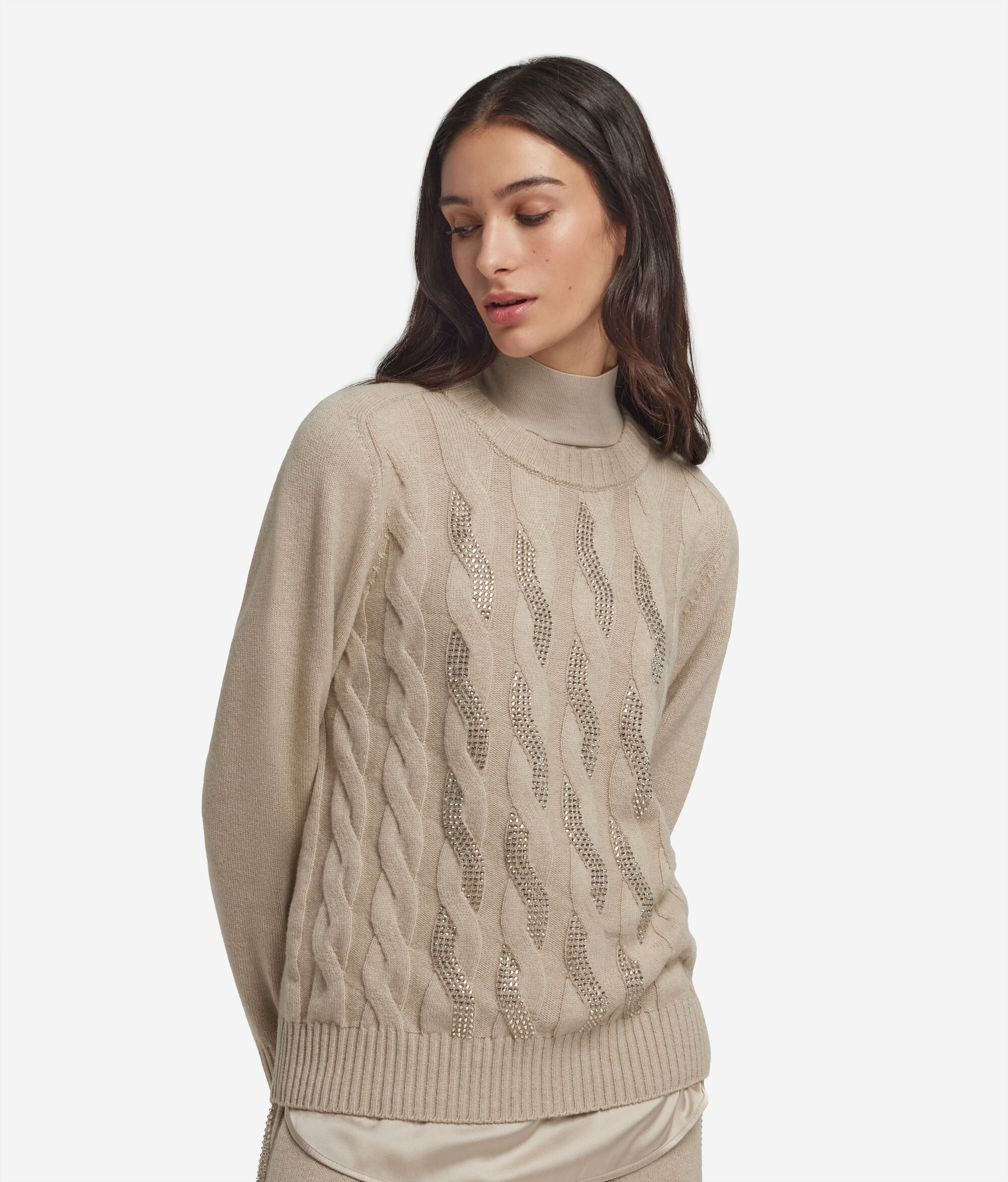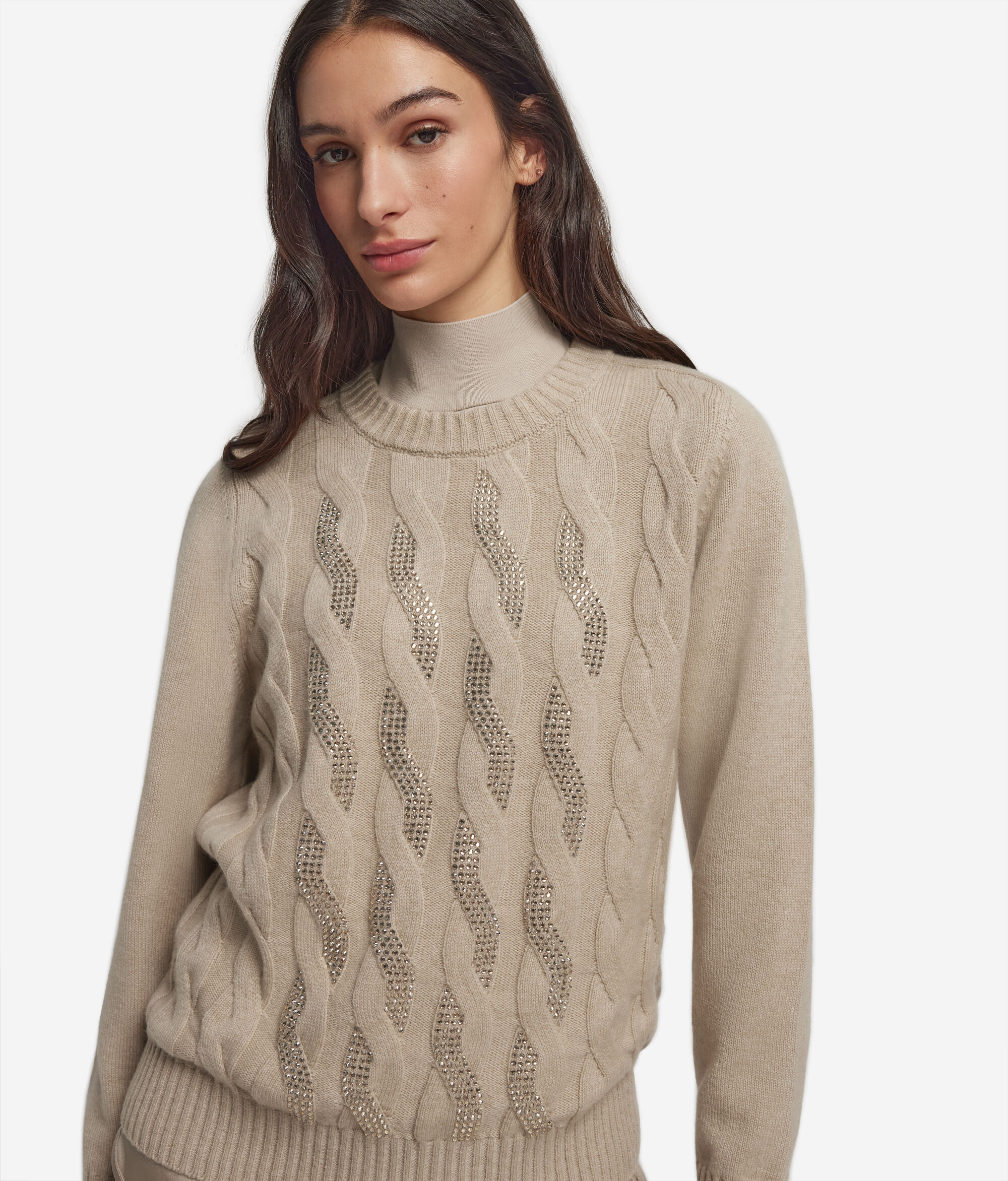 Fonott Mintás Környakú Ultrasoft Kasmír Pulóver Strasszkövekkel