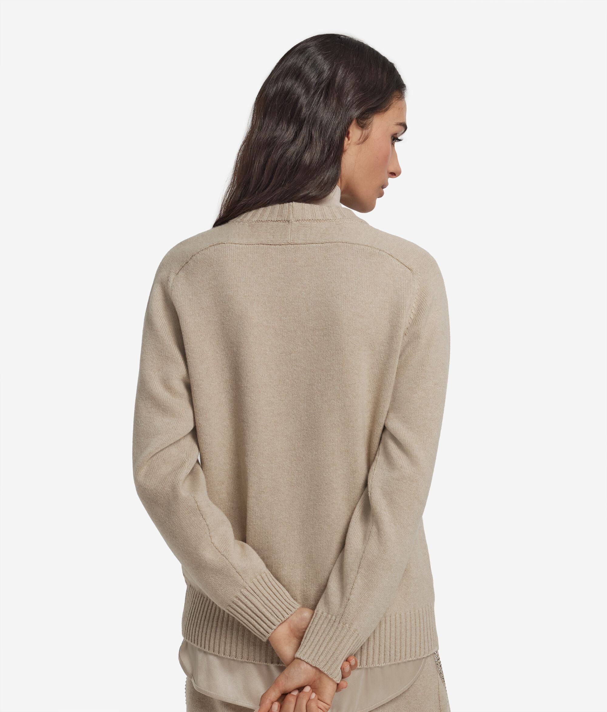 Ez az Ultrasoft kasmírból készült pulóver a kényelmet és az elegáns részleteket ötvözi. Az elülső, visszafogottan csillogó strasszkövekkel díszített fonott mintás kidolgozás egyedien elegáns viseletté varázsolja. Bordázott nyakkivágása és alsó szegélye természetes módon emelik ki az alakot, csípőig érő hossza pedig igazán sokoldalú viseletté teszi, tökéletes farmerrel, szövetnadrággal és blézer alatt egyaránt.