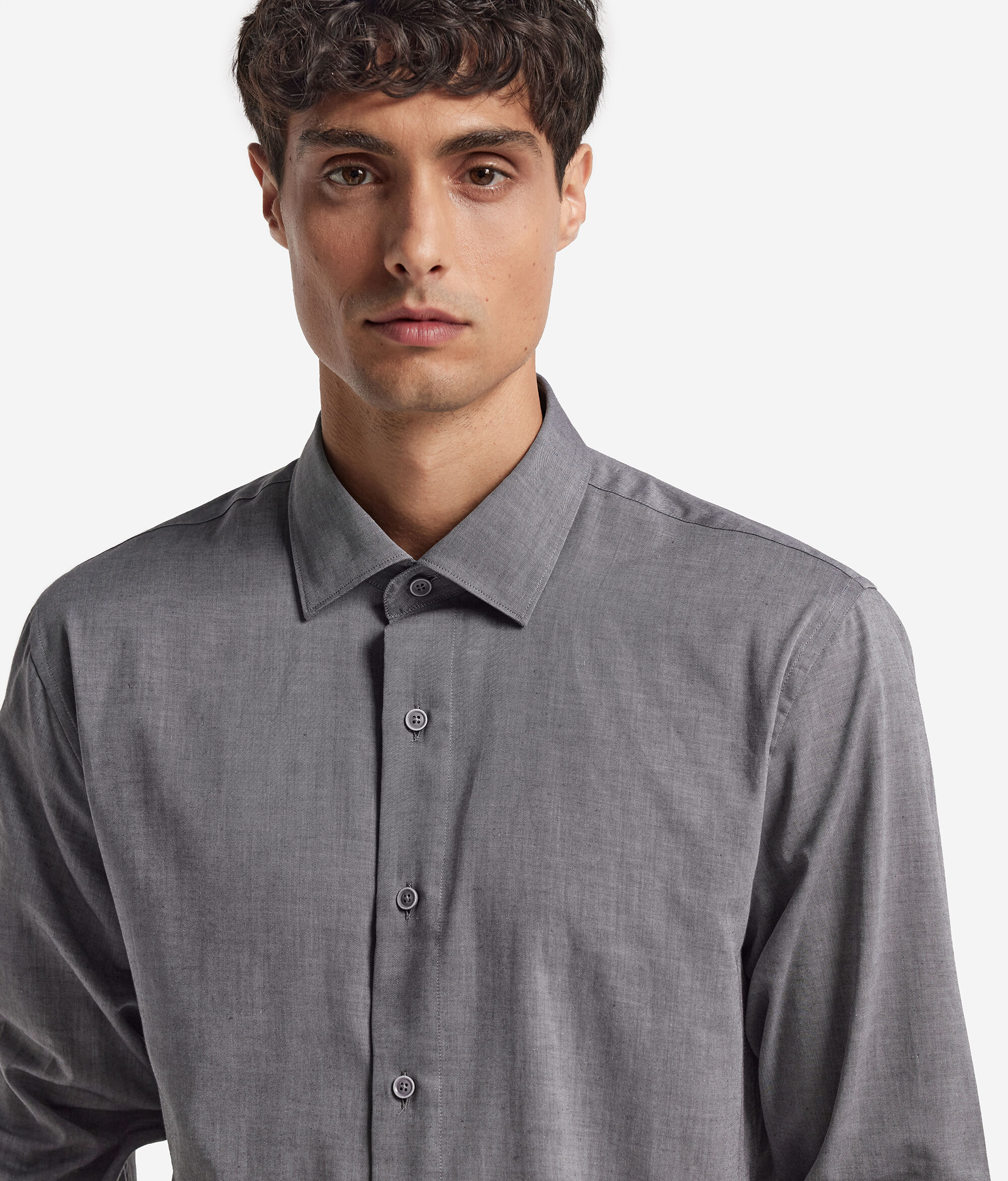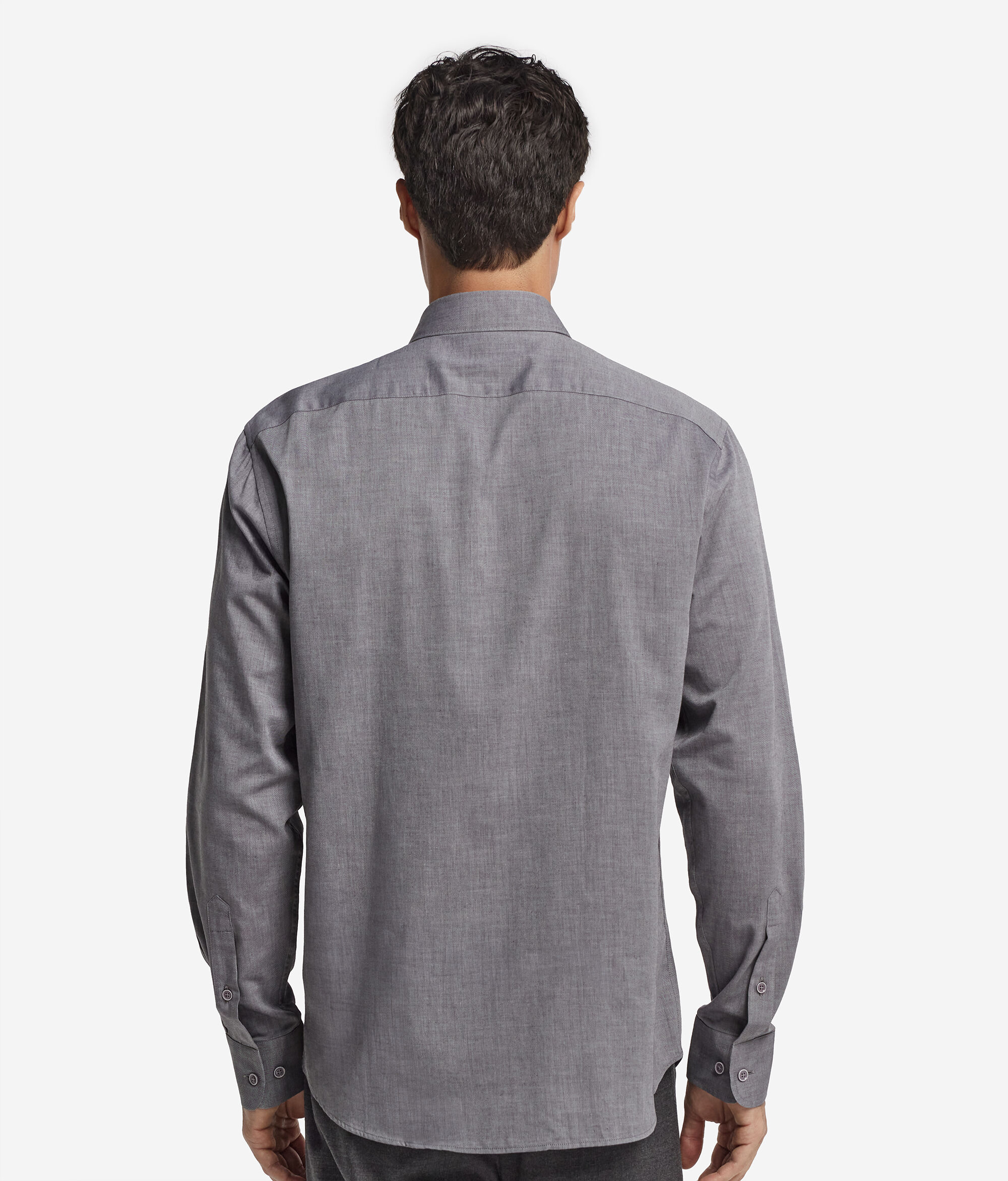 Kifinomult minimalizmus és minőségi szövetek határozzák meg ennek a könnyű és puha tapintású kasmír pamut ingnek a jellegét. A letisztult dizájnt fokozza a gallér és az elülső, rejtett gombolás, amelyek kifogástalan és modern vonalvezetést kölcsönöznek. Sokoldalú és időtlen modell, amely tökéletes önmagában, vagy zakó és pulóver alá is, elegánsan rétegezve.