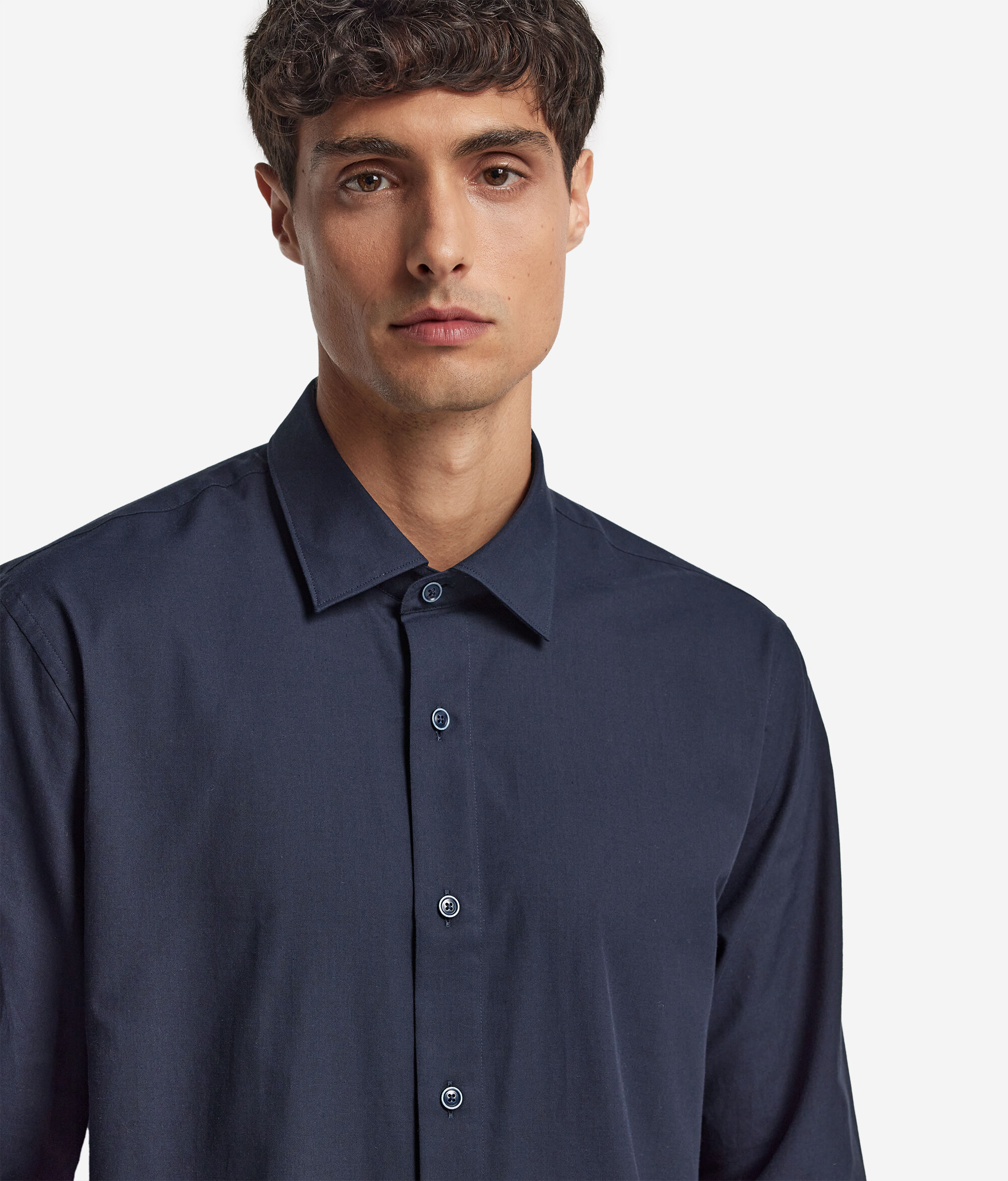 Kifinomult minimalizmus és minőségi szövetek határozzák meg ennek a könnyű és puha tapintású kasmír pamut ingnek a jellegét. A letisztult dizájnt fokozza a gallér és az elülső, rejtett gombolás, amelyek kifogástalan és modern vonalvezetést kölcsönöznek. Sokoldalú és időtlen modell, amely tökéletes önmagában, vagy zakó és pulóver alá is, elegánsan rétegezve.