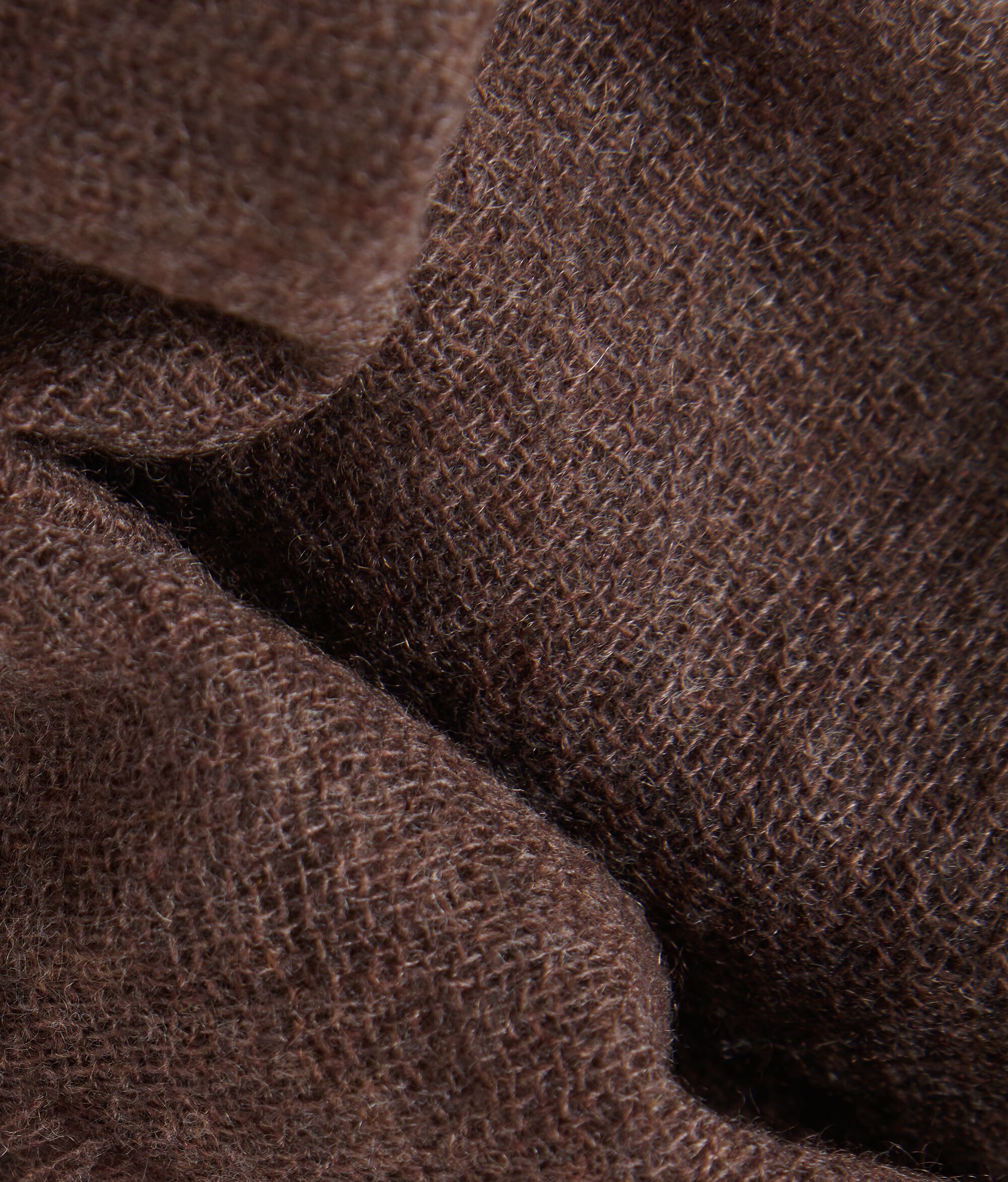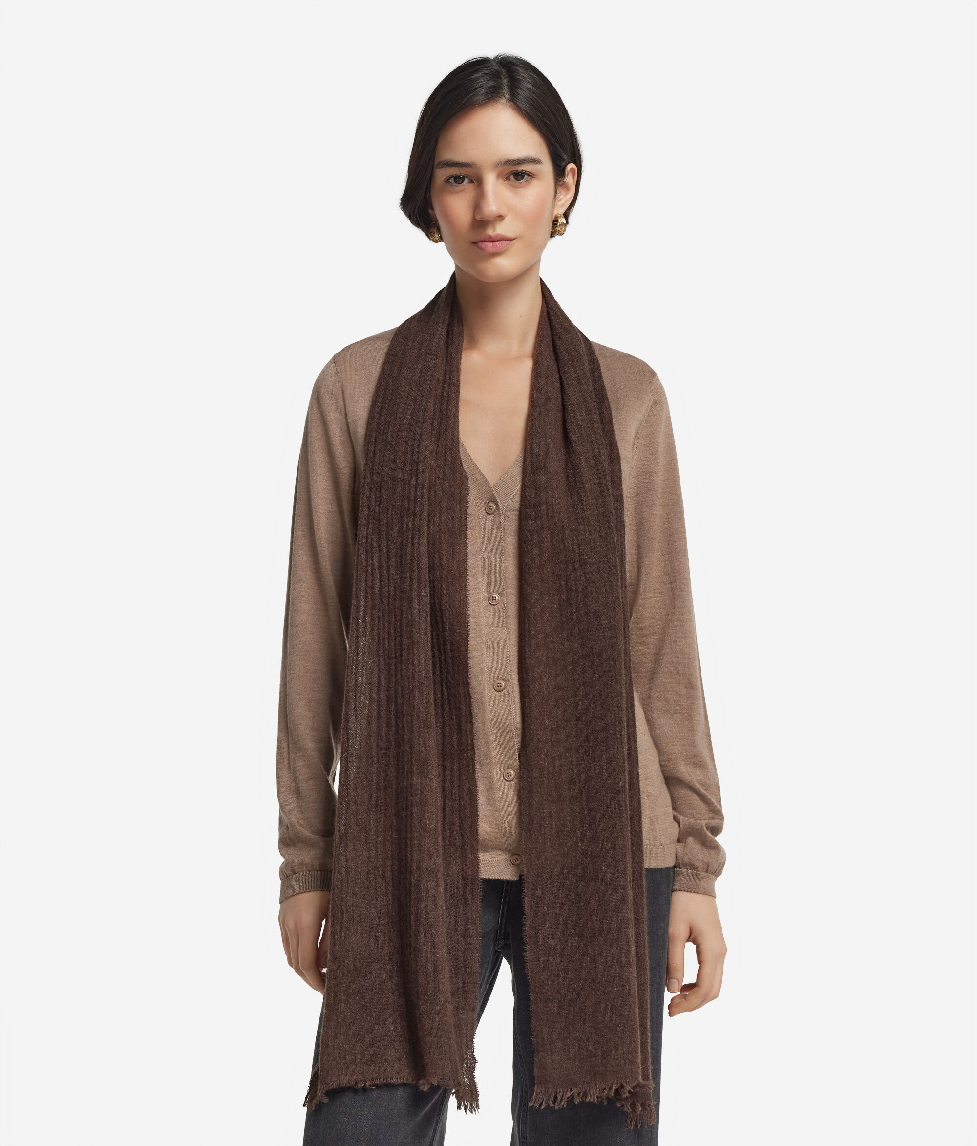 Teljes egészében kasmírból készült meleg sál, amely tökéletesen illik a kollekció felsőruházatához.