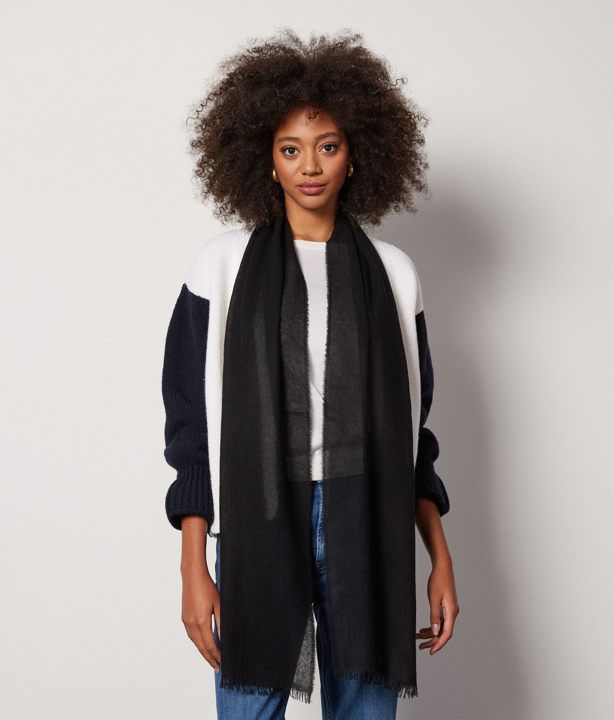 Teljes egészében kasmírból készült meleg sál, amely tökéletesen illik a kollekció felsőruházatához.