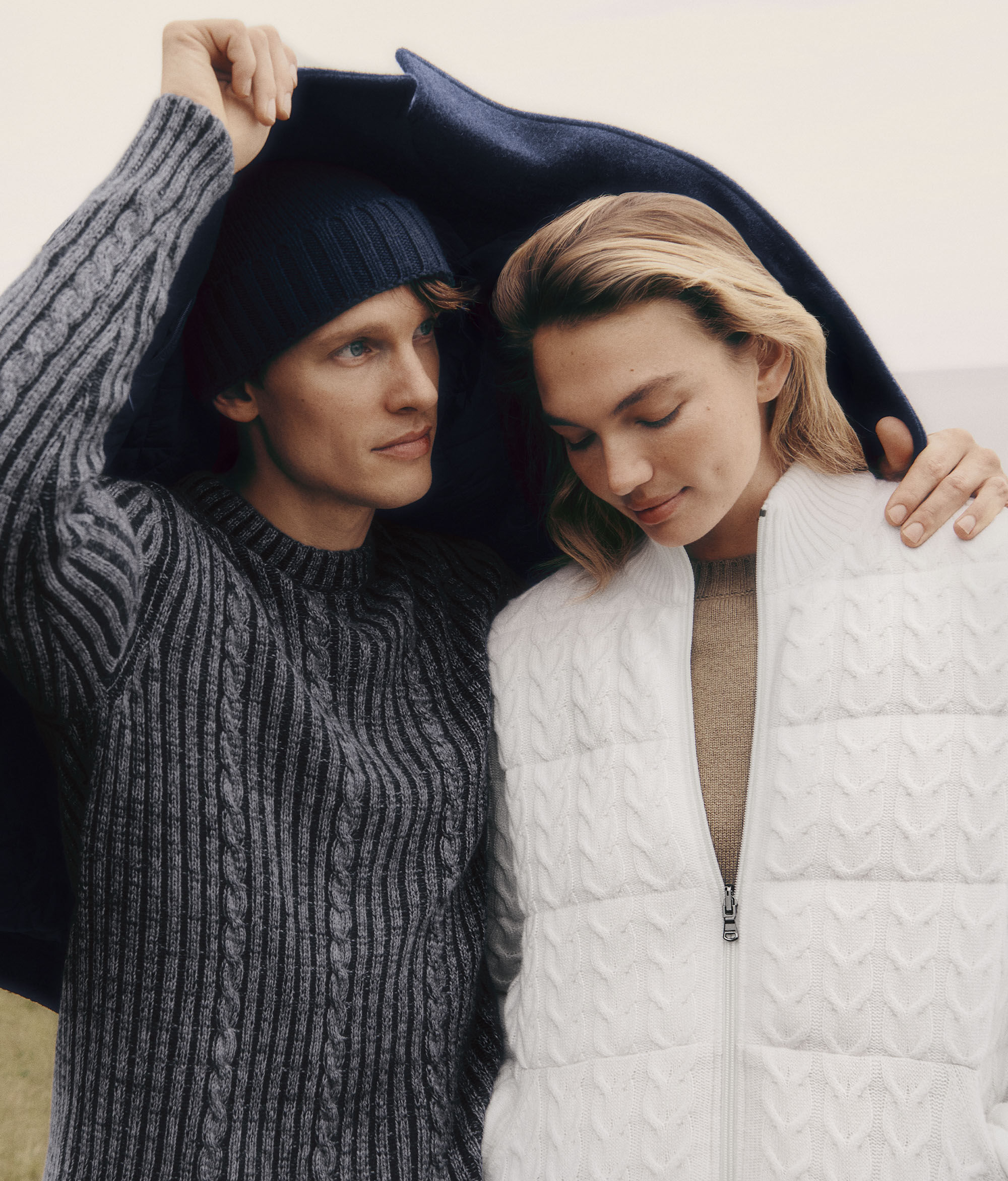 Piumino trecce reversibile in cashmere e tessuto tecnico