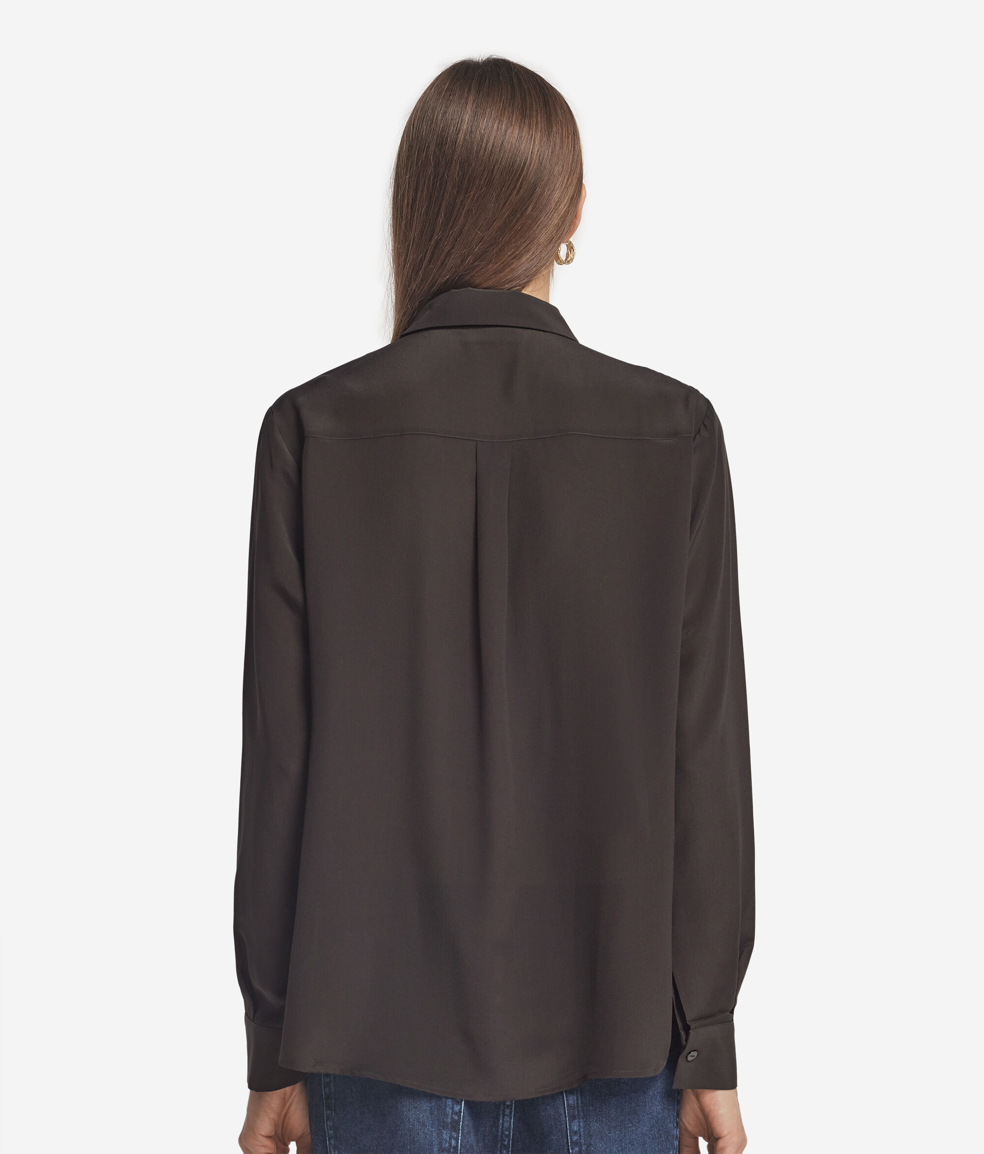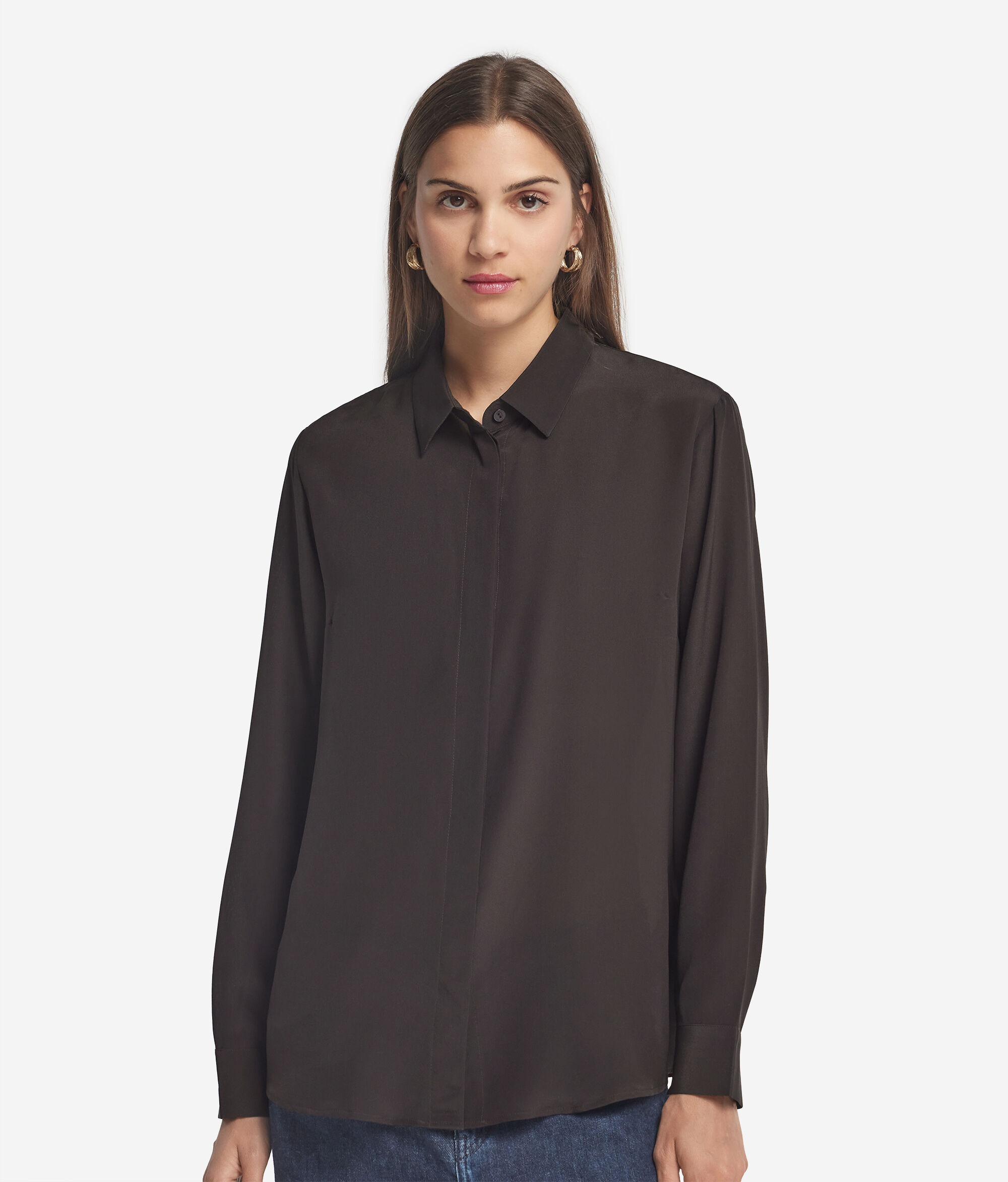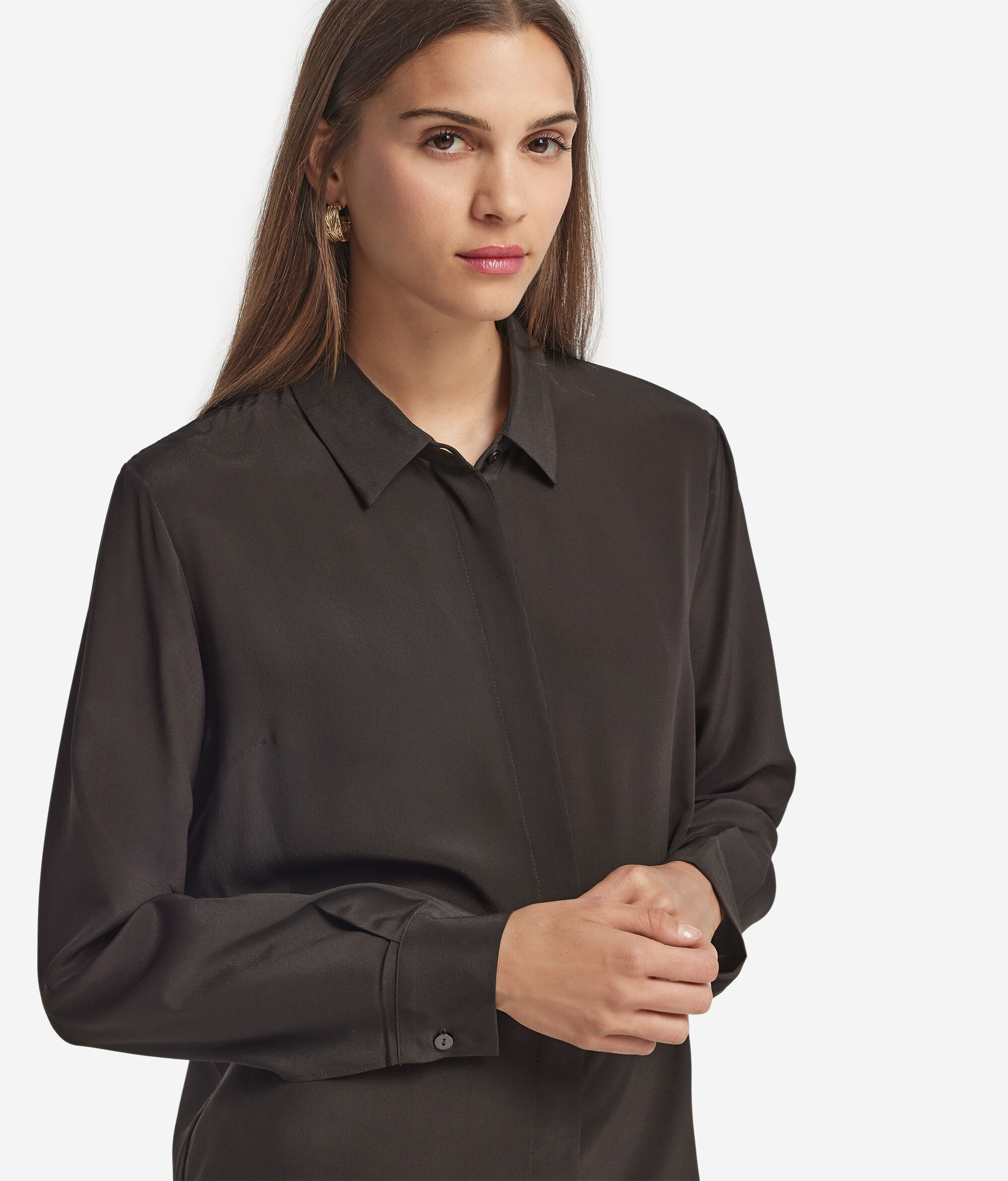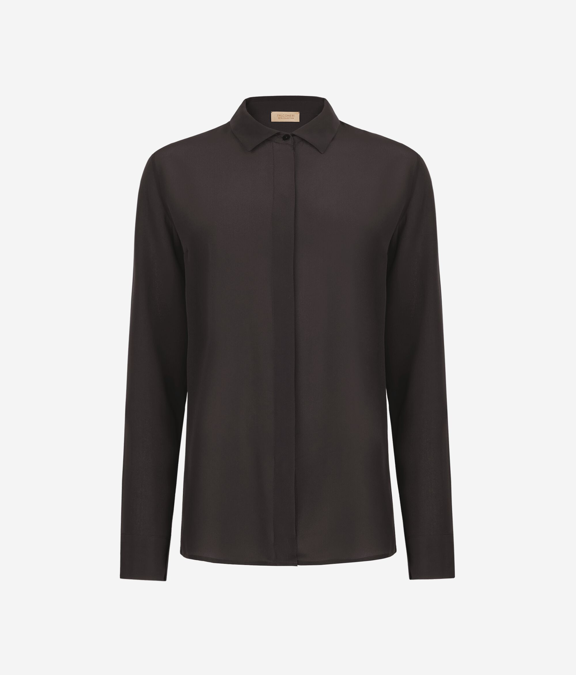 Scopri l'eleganza senza tempo di questa camicia realizzata in crepe de chine. Il design, dalle linee pulite ed essenziali, è arricchito da un classico colletto e da una chiusura con bottoni. Sobria ma distintamente raffinata non può mancare nell'armadio di chi ama qualità e stile senza compromessi.