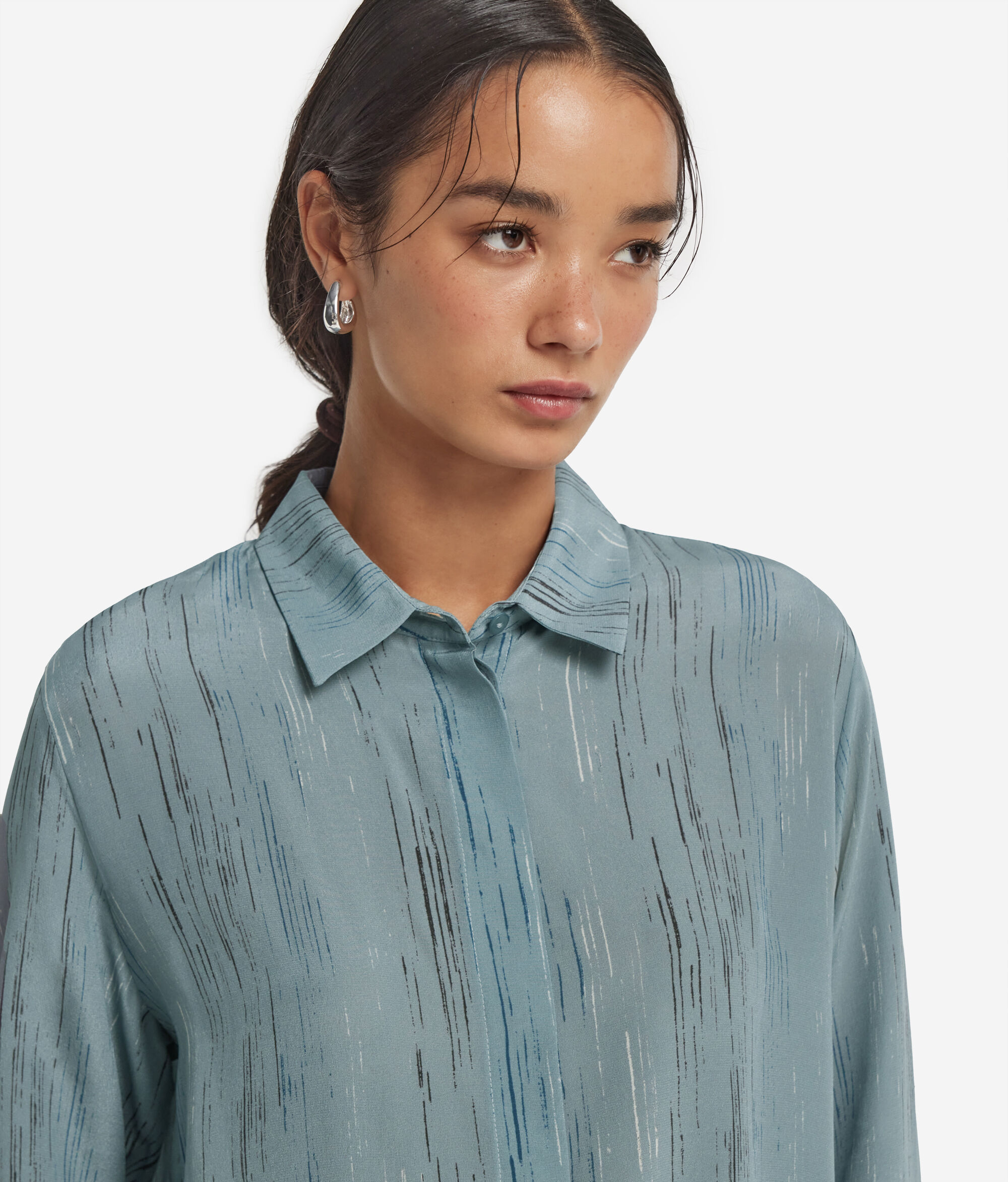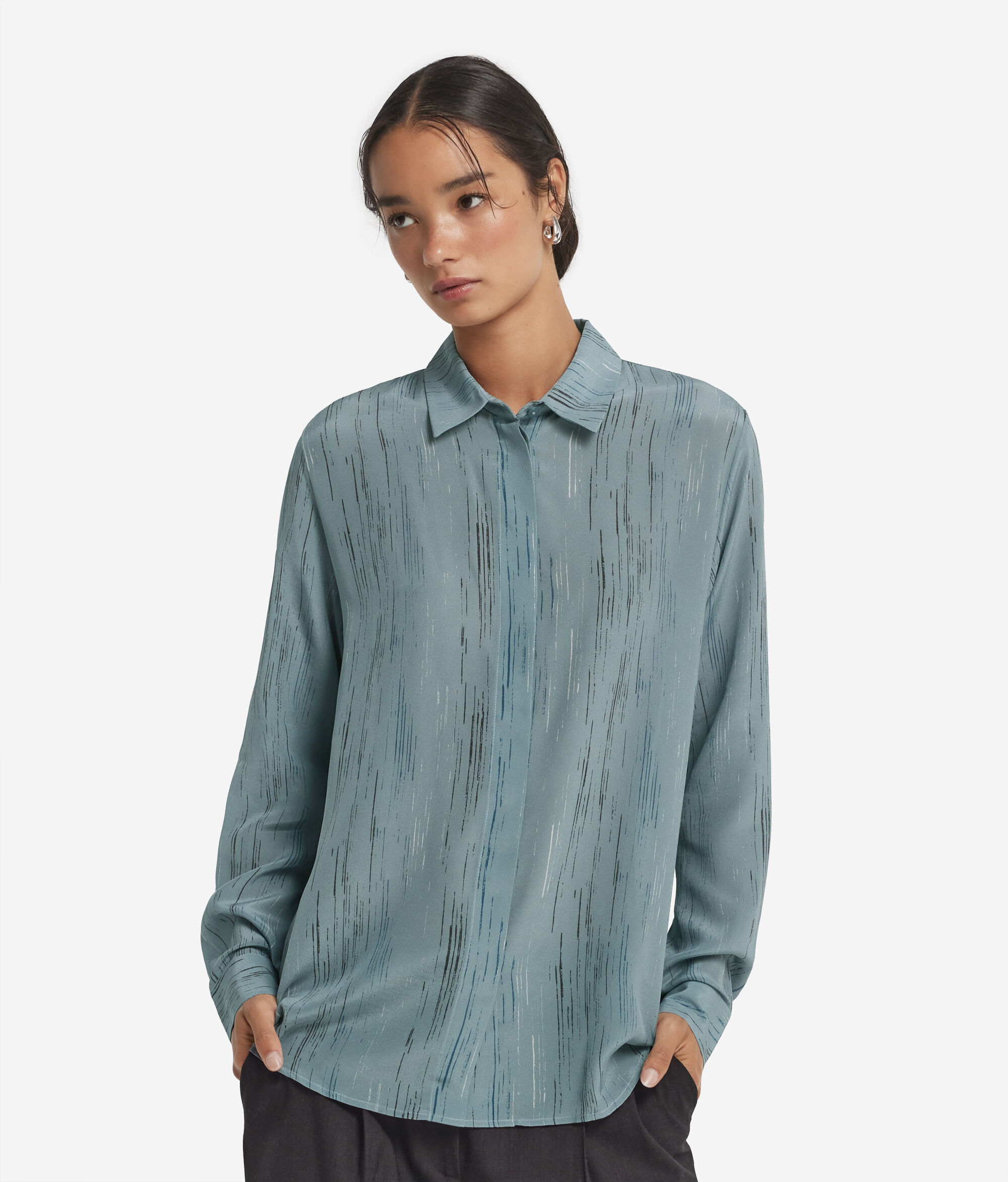 Camicia con colletto in seta stampata