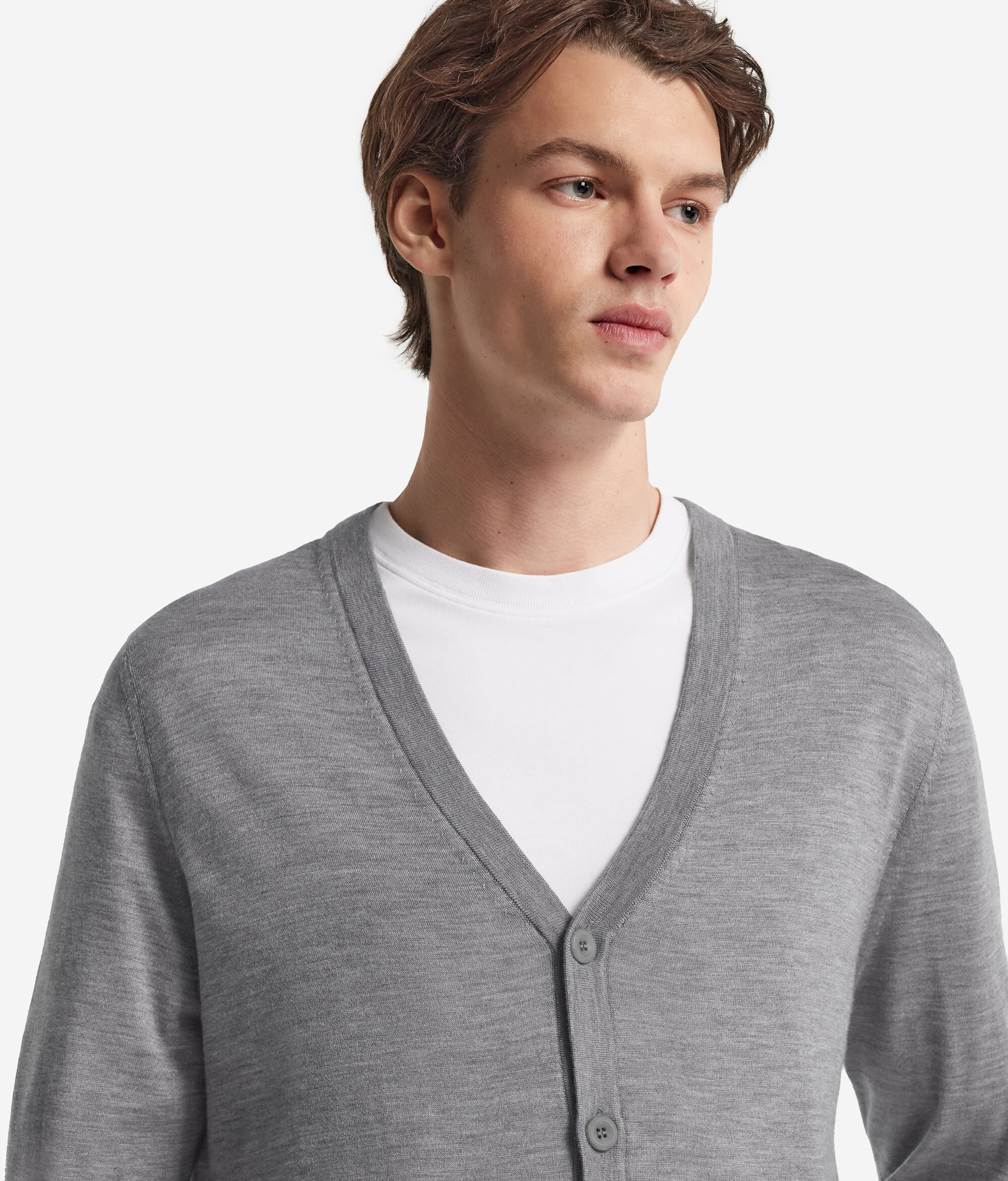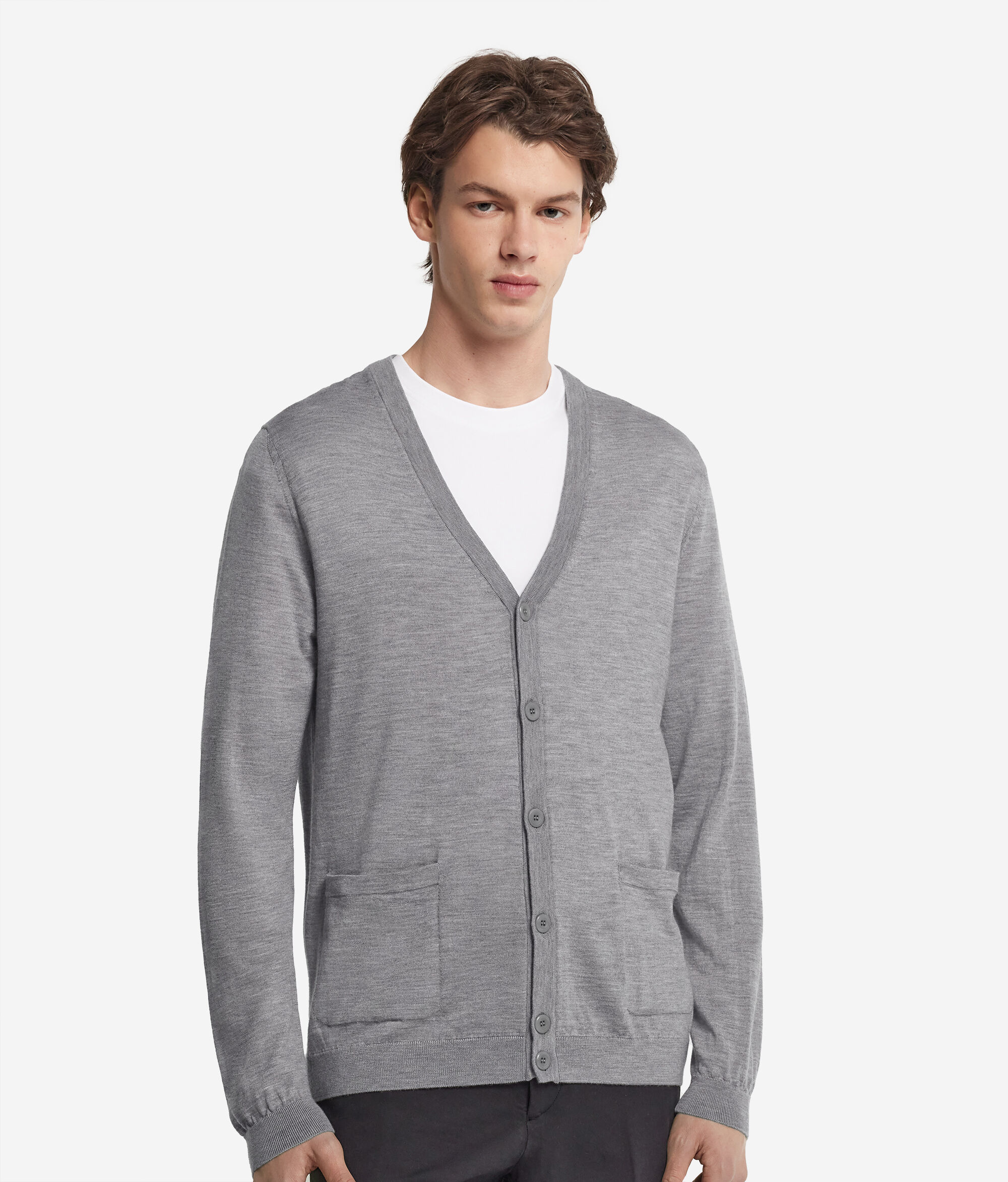 L'attenzione ai dettagli e filati ricercati danno vita a questo cardigan in soffice maglia di cashmere. Caratterizzato da un elegante scollo a V, il capo presenta un'allacciatura centrale con bottoni e delle tasche frontali applicate. La vestibilità regolare assicura una linea equilibrata, perfetta per essere indossata sia da sola che in abbinamento ad altri capi.