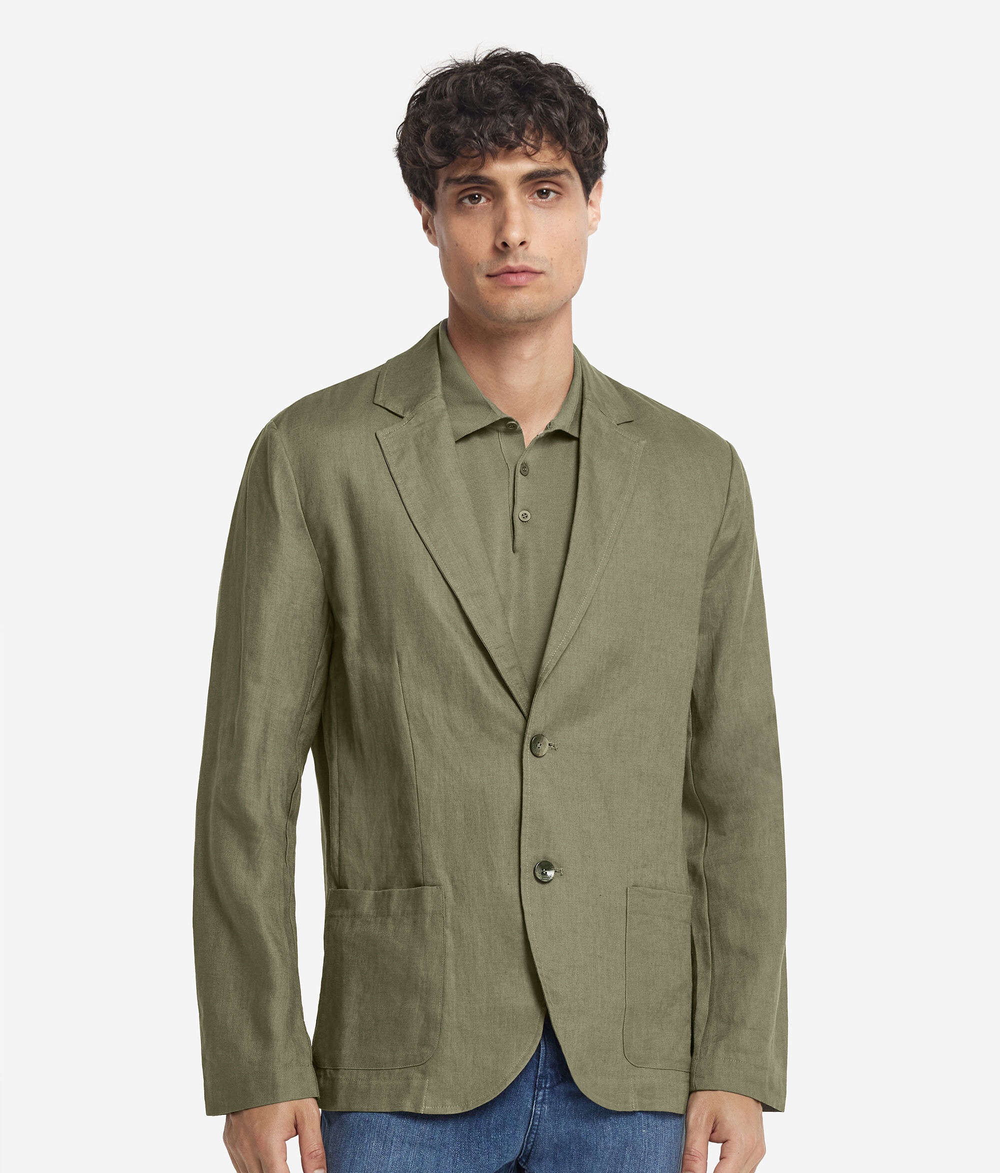 La leggerezza del lino, unita alla raffinatezza del gusto sartoriale, danno vita a questa giacca, un capo imprescindibile nel guardaroba maschile. Il suo stile raffinato e minimalista si adatta perfettamente a qualsiasi occasione, dal look più formale a quello più casual. Il modello è arricchito da un elegante rever e da una chiusura con due bottoni, che combinati alla vestibilità regolare, valorizzano la figura maschile.