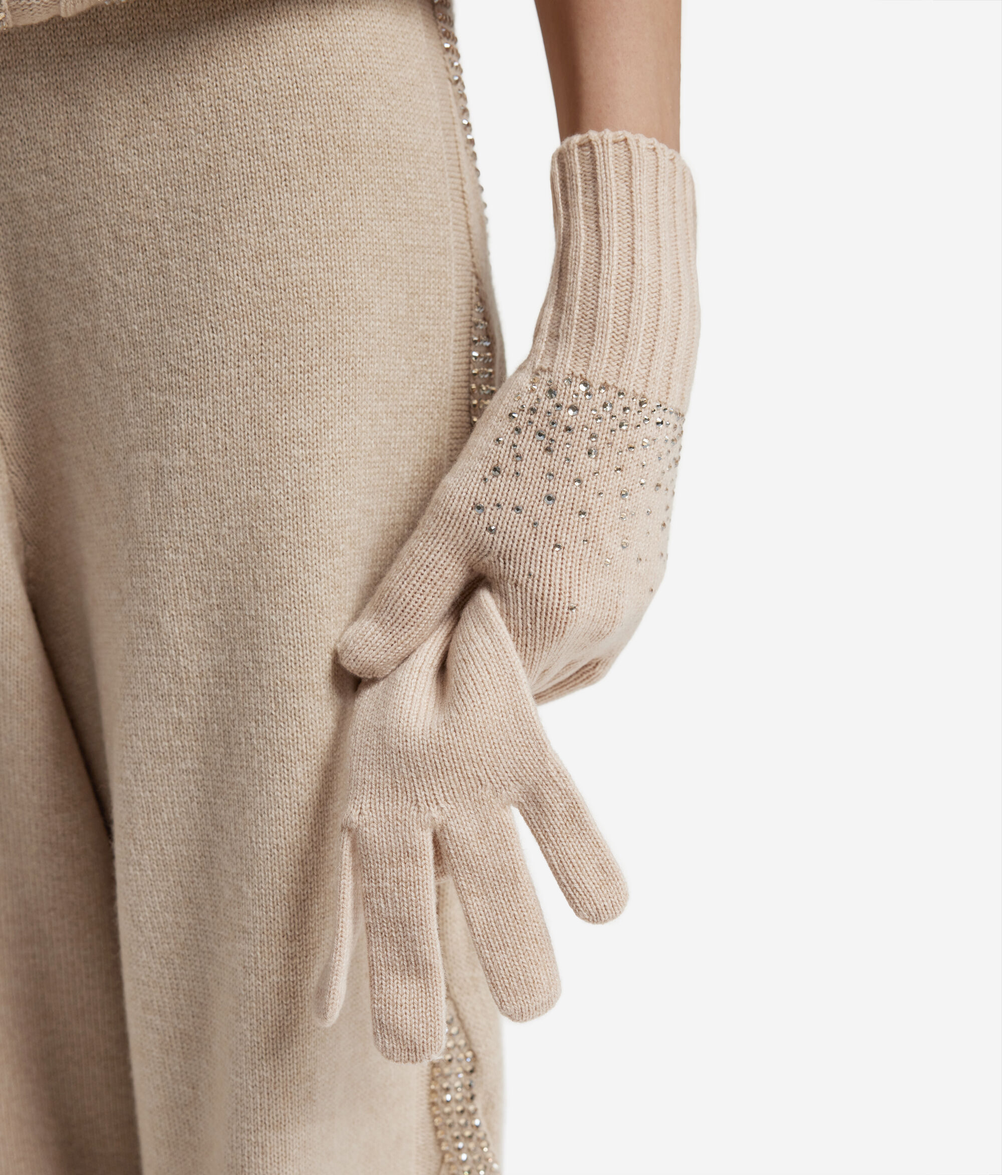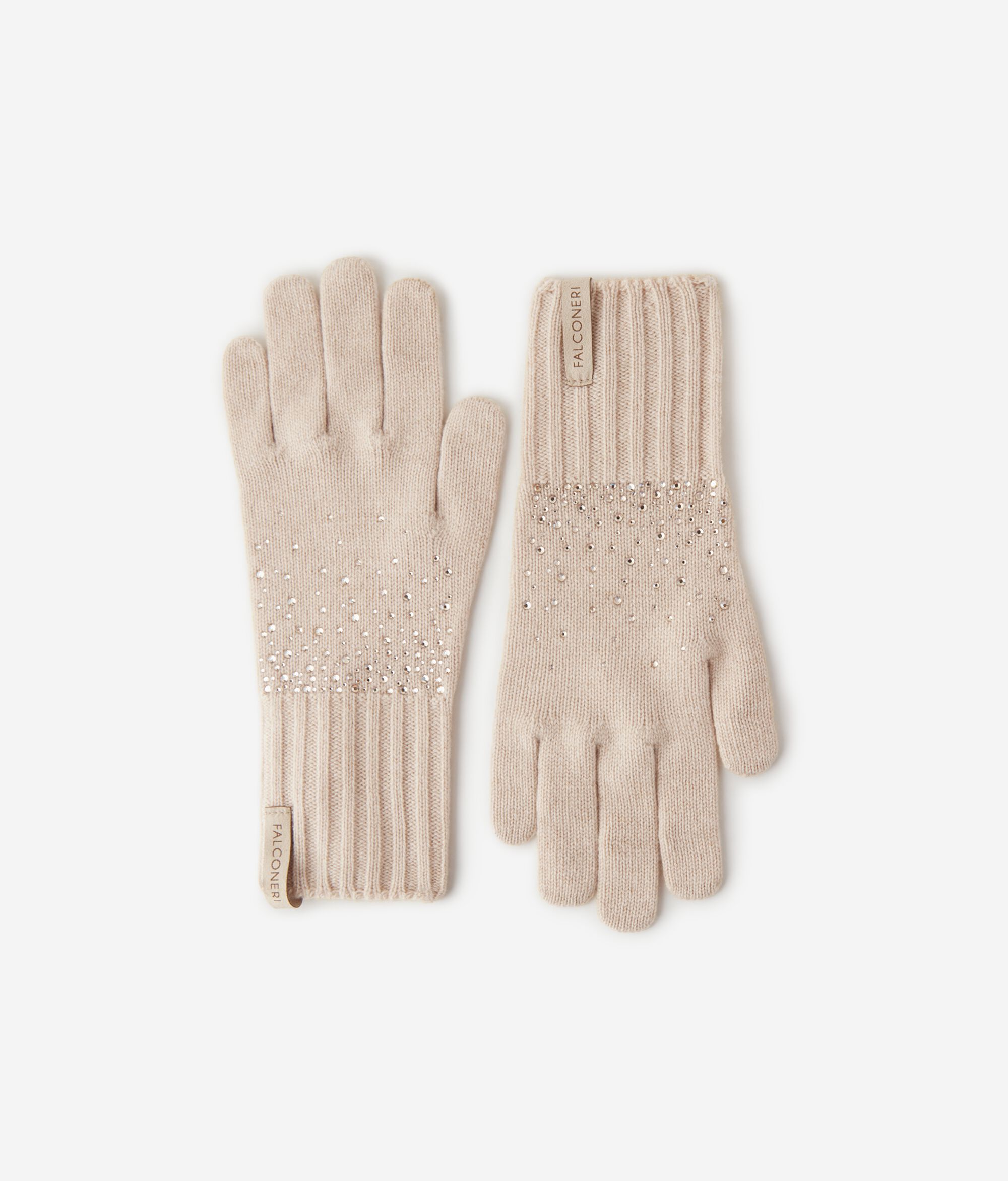 Realizzati in raffinato Cashmere Ultrasoft questi guanti sono pensati per offrire un un tocco di eleganza senza tempo. Il polsino a costina assicura una vestibilità aderente e raffinata, mentre l'applicazione di strass in degradé impreziosisce il design con un dettaglio distintivo.