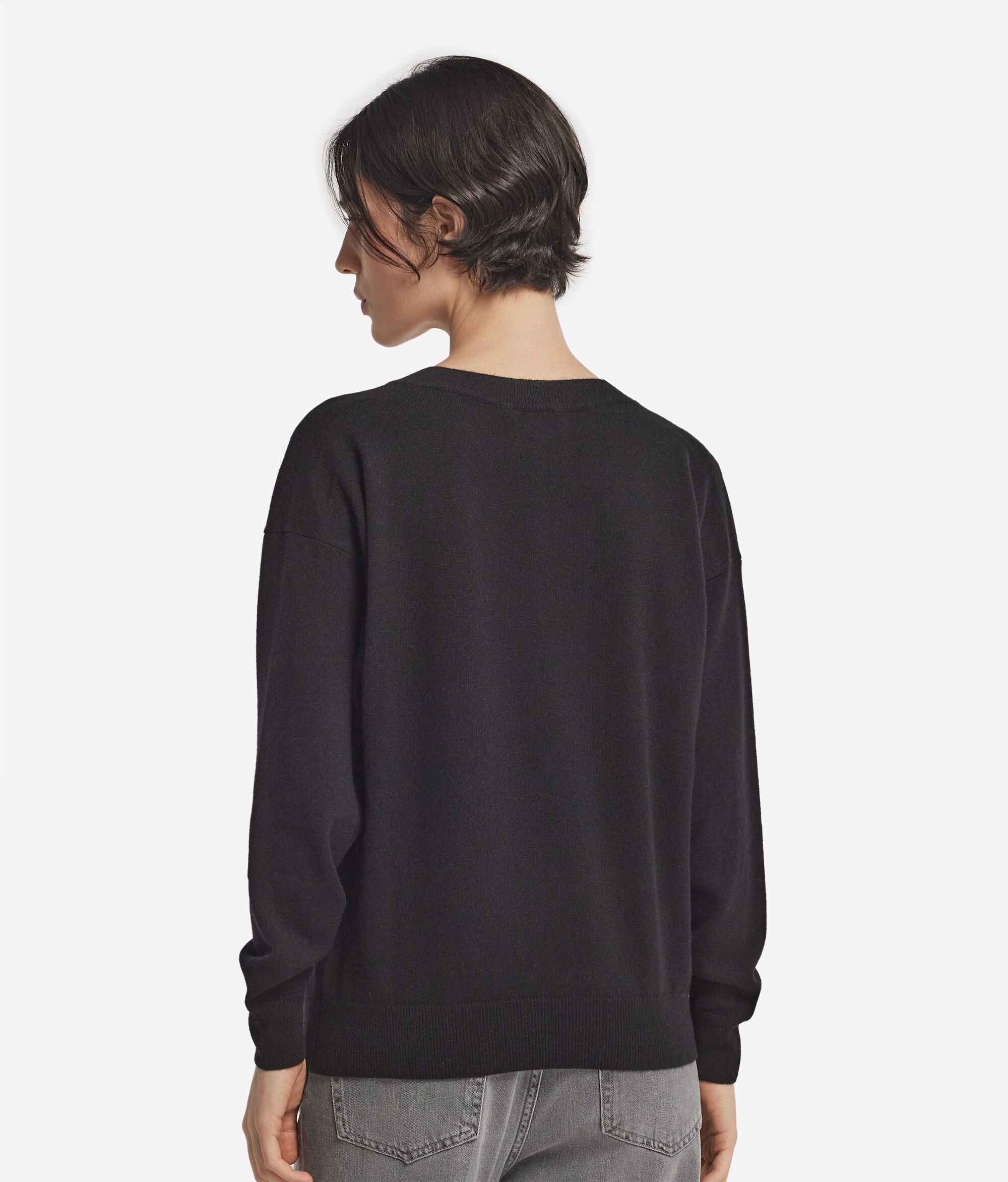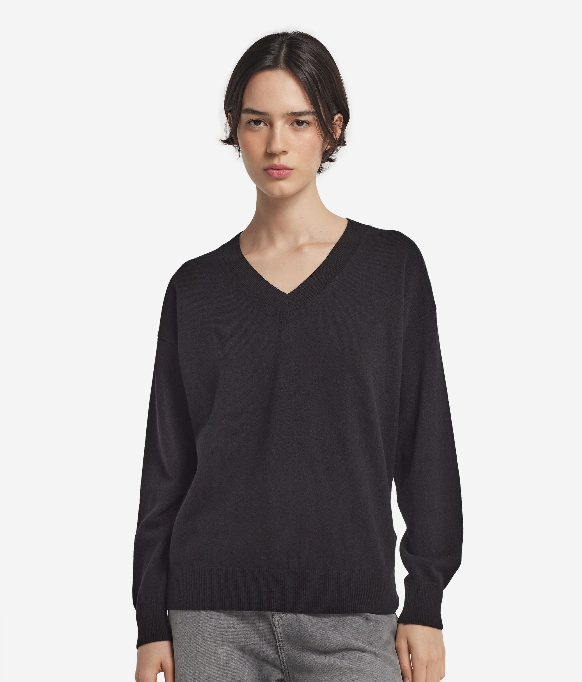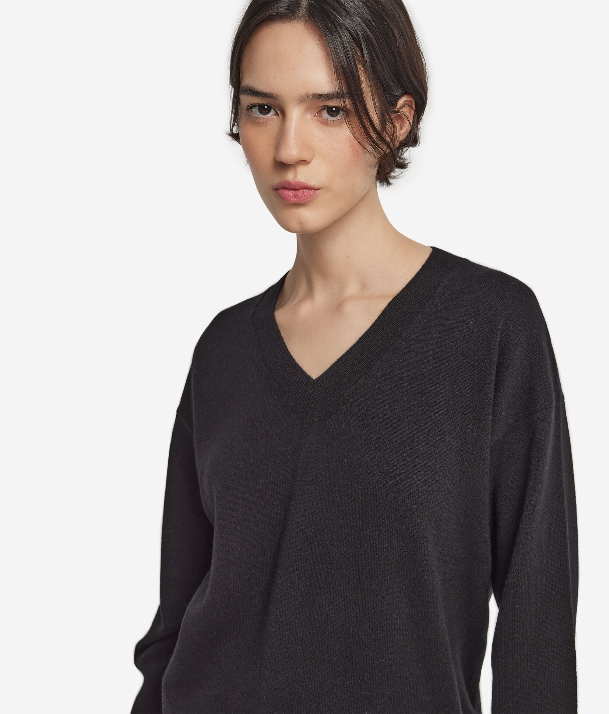 Realizzata in soffice Cashmere Ultrasoft, questa maglia dallo scollo a V diventerà il pezzo chiave del tuo guardaroba durante le giornate più fresche. Il bordo, i polsini e lo scollo sono impreziositi da una lavorazione a costine che aggiunge un tocco di raffinatezza. Le spalle scese e la sua vestibilità morbida conferiscono un fit rilassato e naturale che risponde ad uno stile attuale e contemporaneo.