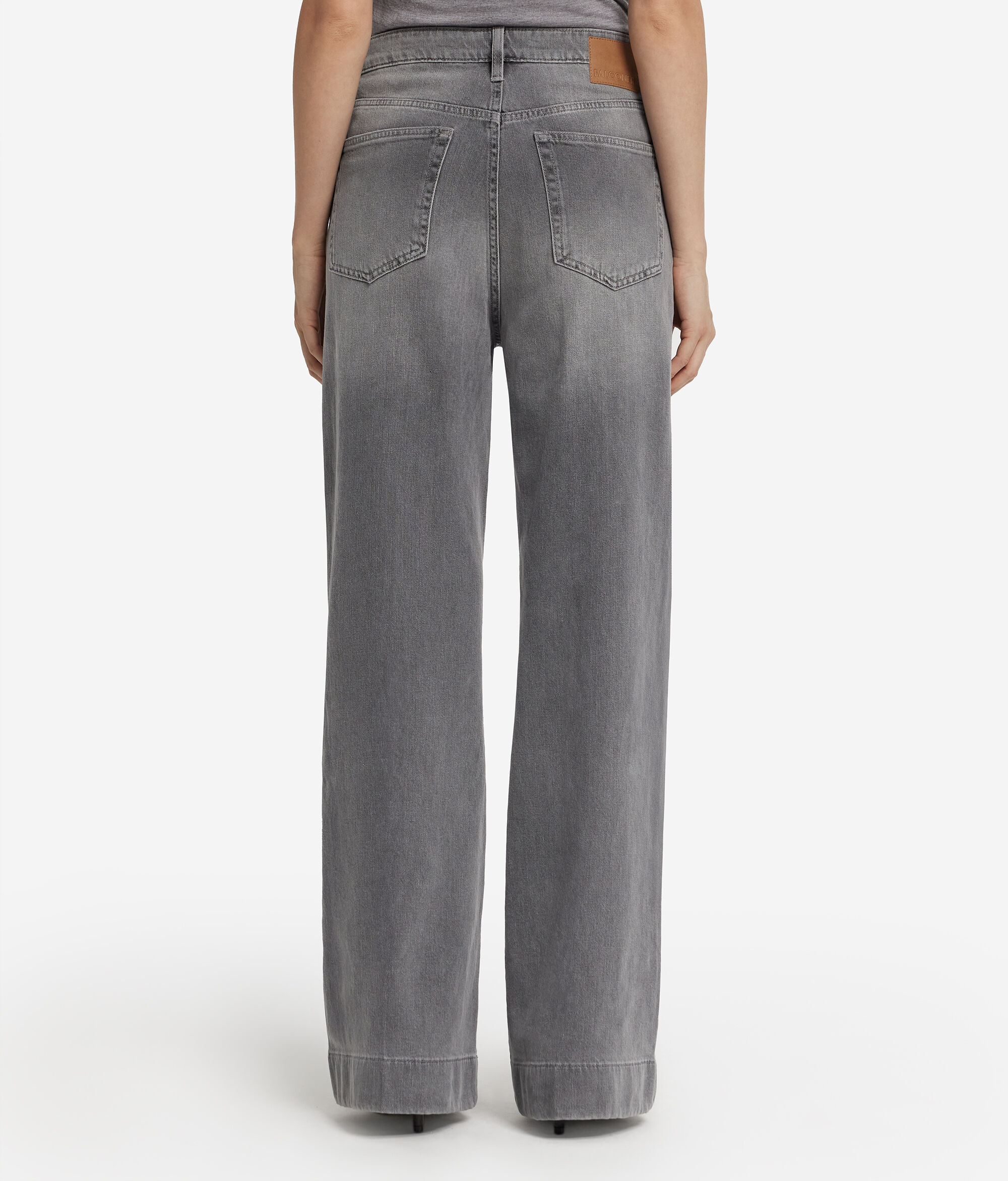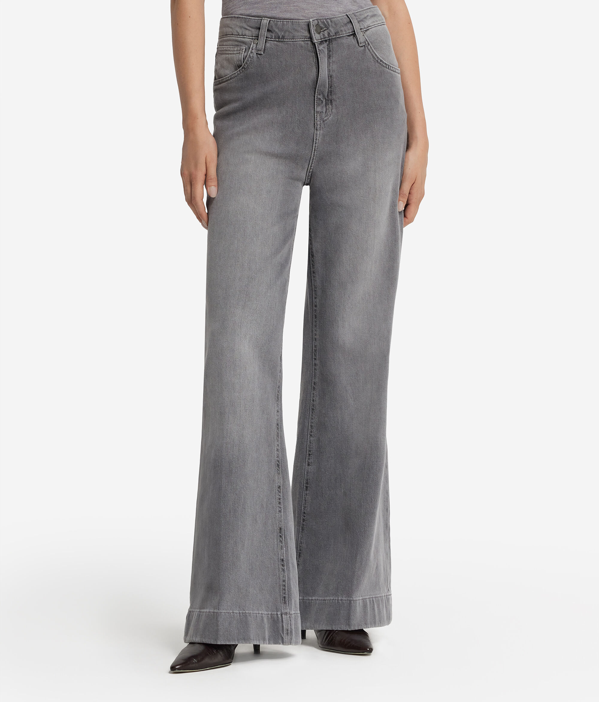 Volumi contemporanei e dettagli sartoriali dialogano in perfetta armonia in questo pantalone palazzo realizzato in denim di cotone e cashmere. Caratterizzato da una chiusura con zip e bottone logato sul davanti, è inoltre dotato di pratiche tasche sui fianchi e dietro. La lunghezza fino a terra enfatizza la silhouette slanciata ed elegante, mentre il tessuto conferisce al modello un aspetto dal gusto casual.