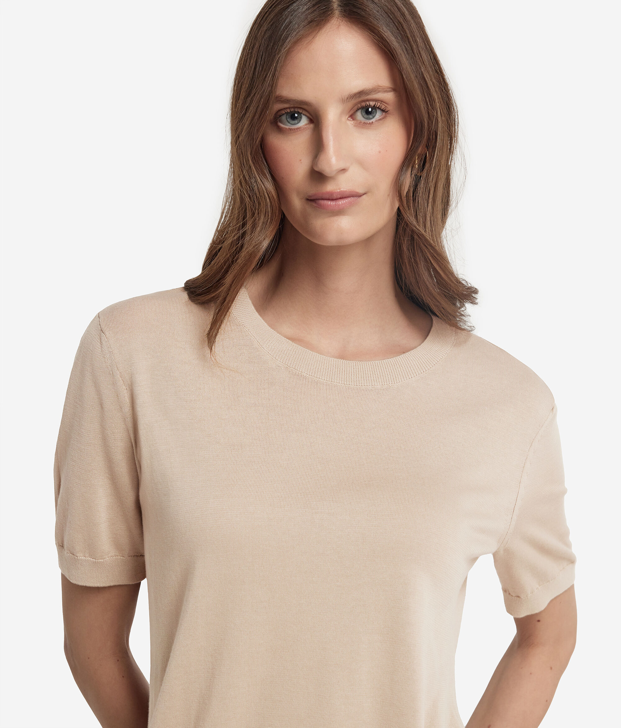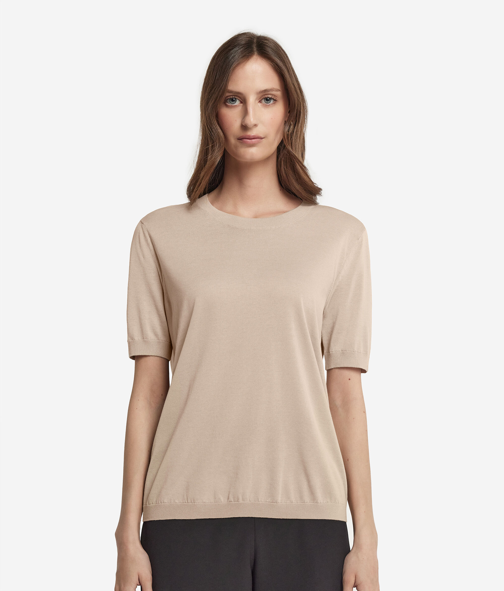 Elemento imprescindibile del guardaroba, questa T-shirt girocollo in cotone è un capo versatile e senza tempo, perfetto per essere abbinato a ogni tipo di look, dal più casual al più raffinato. Realizzata in cotone di alta qualità, è fresca e leggera sulla pelle, offrendo una piacevole sensazione di morbidezza e delicatezza. Grazie alla sua vestibilità regolare si adatta perfettamente alla silhouette.