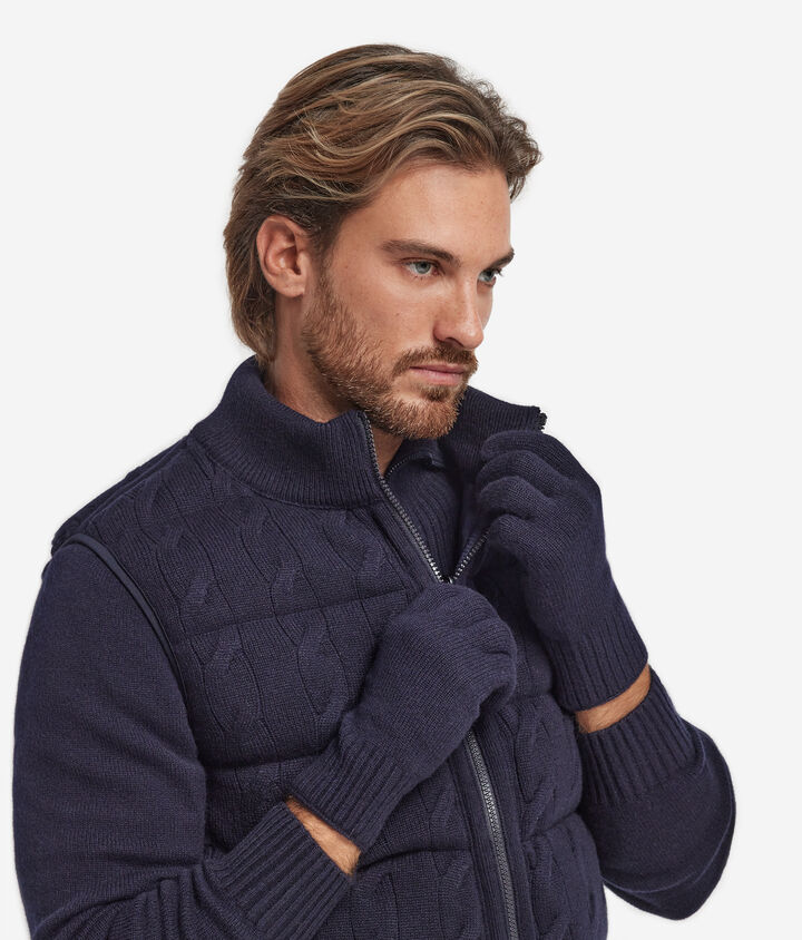 軽量で保温性が高いカシミヤ100%の手袋は、冬のおしゃれに取り入れたいアイテムの一つ。都会的でシックなスタイルがお好みなら、手袋と同色のタートルネックの上から、カシミヤコートを羽織って、すっきりとしたパンツを合わせましょう。さらに寒い日には、ファルコネーリのダウンベストがおすすめです。コンパクトなシルエットで、アウターとしても、コートの中に着るインナーとしても着用できる万能アイテム。レディースカシミヤ手袋と組み合わせて、暖かいコーディネートをお楽しみください。