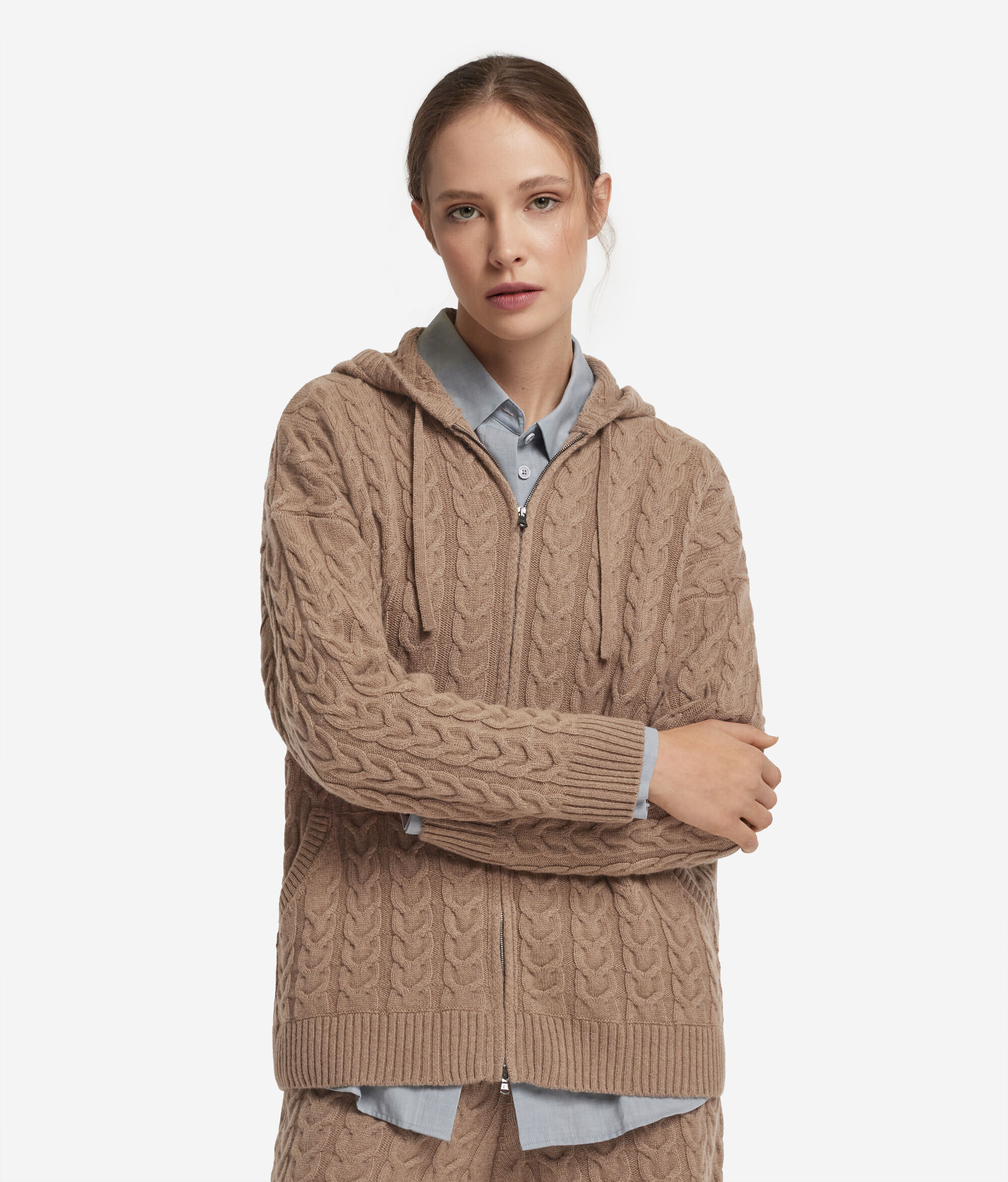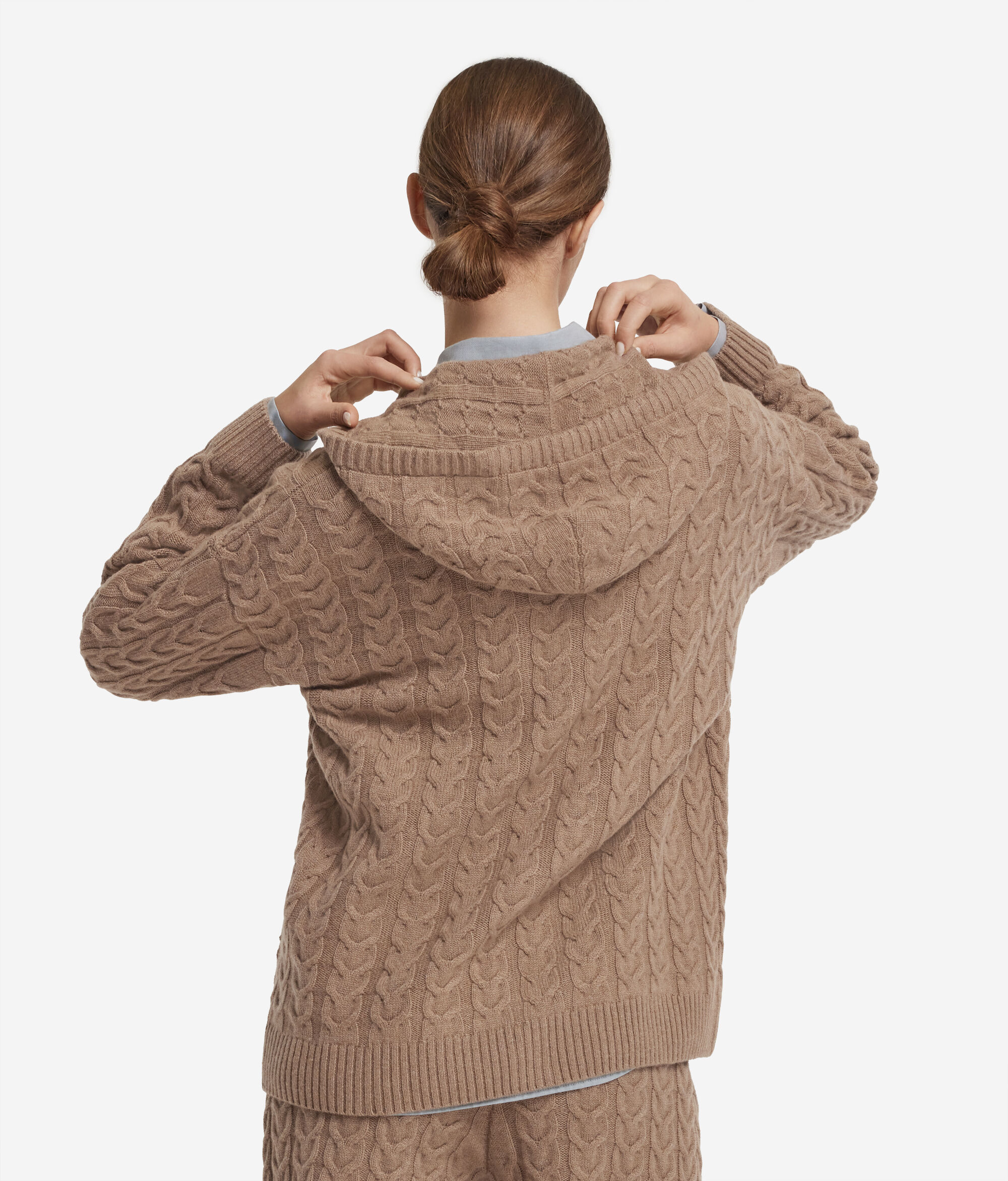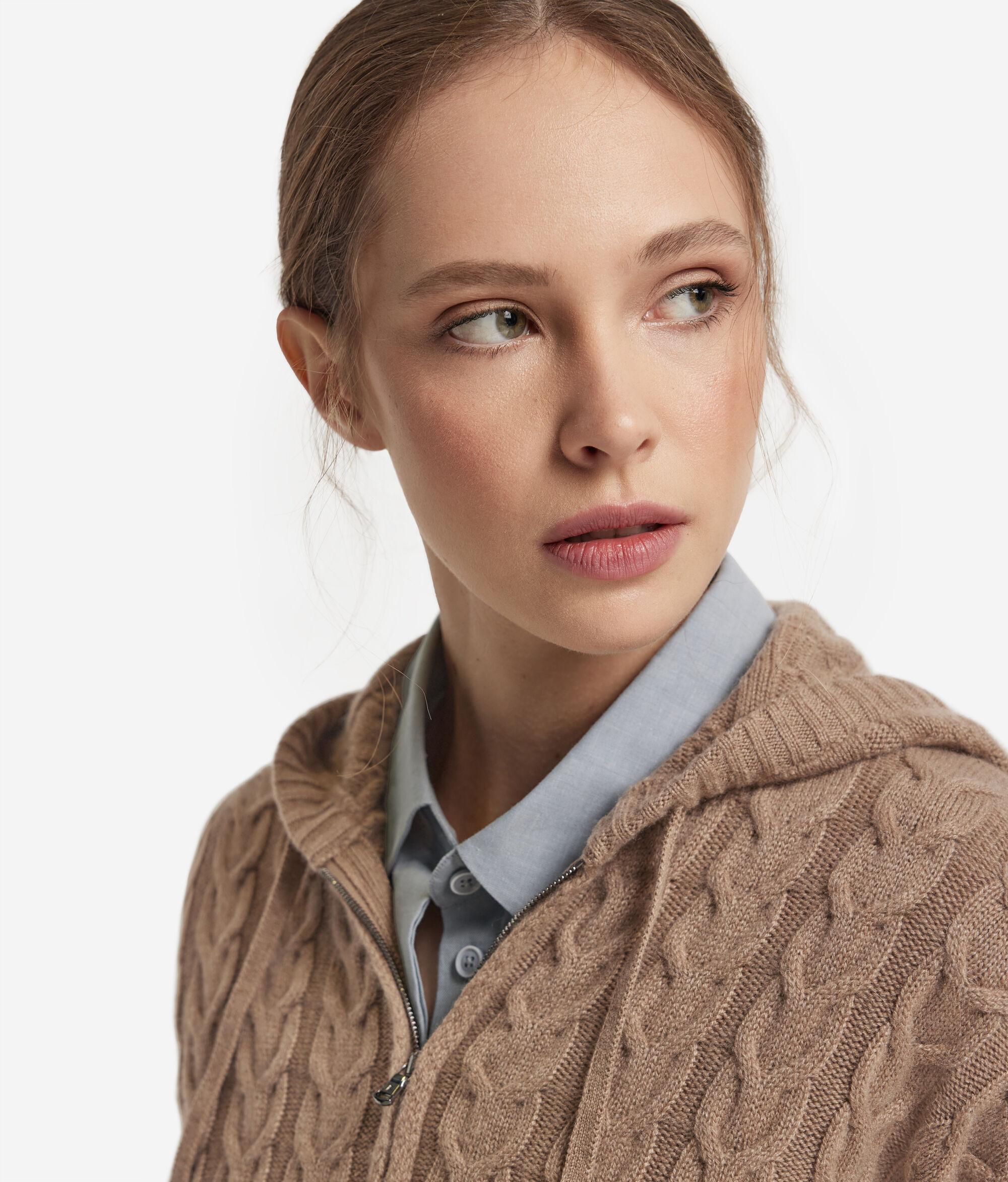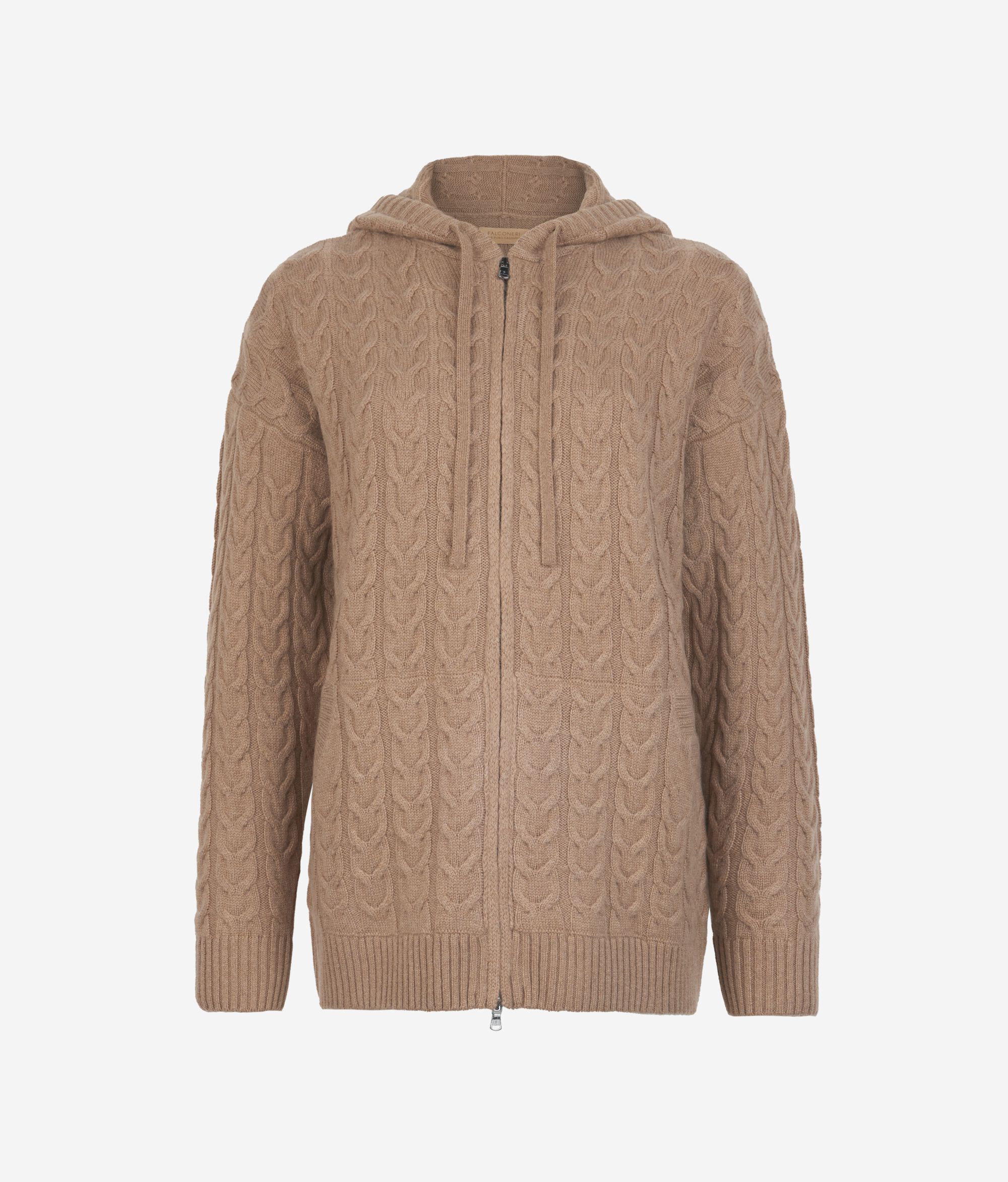カジュアルでありながら洗練を感じさせる、ウルトラソフトカシミヤのスウェットシャツ。繊維の柔らかさと、現代的なスタイルが魅力の一枚。ケーブル編みによりテクスチャー豊かな仕上がりで、ドローストリング付きのフードと、開閉用のファスナーを備えています。ややドロップショルダーで、ゆったりとした快適な着心地。ヘムと袖口はリブ編みで仕上げることにより、シルエットにメリハリを出しました。長さは腰丈。控えめなラグジュアリーを感じさせる実用的なアイテムとして活躍し、エレガンスとカジュアルなテイストを程よく兼ね備えた装いに。