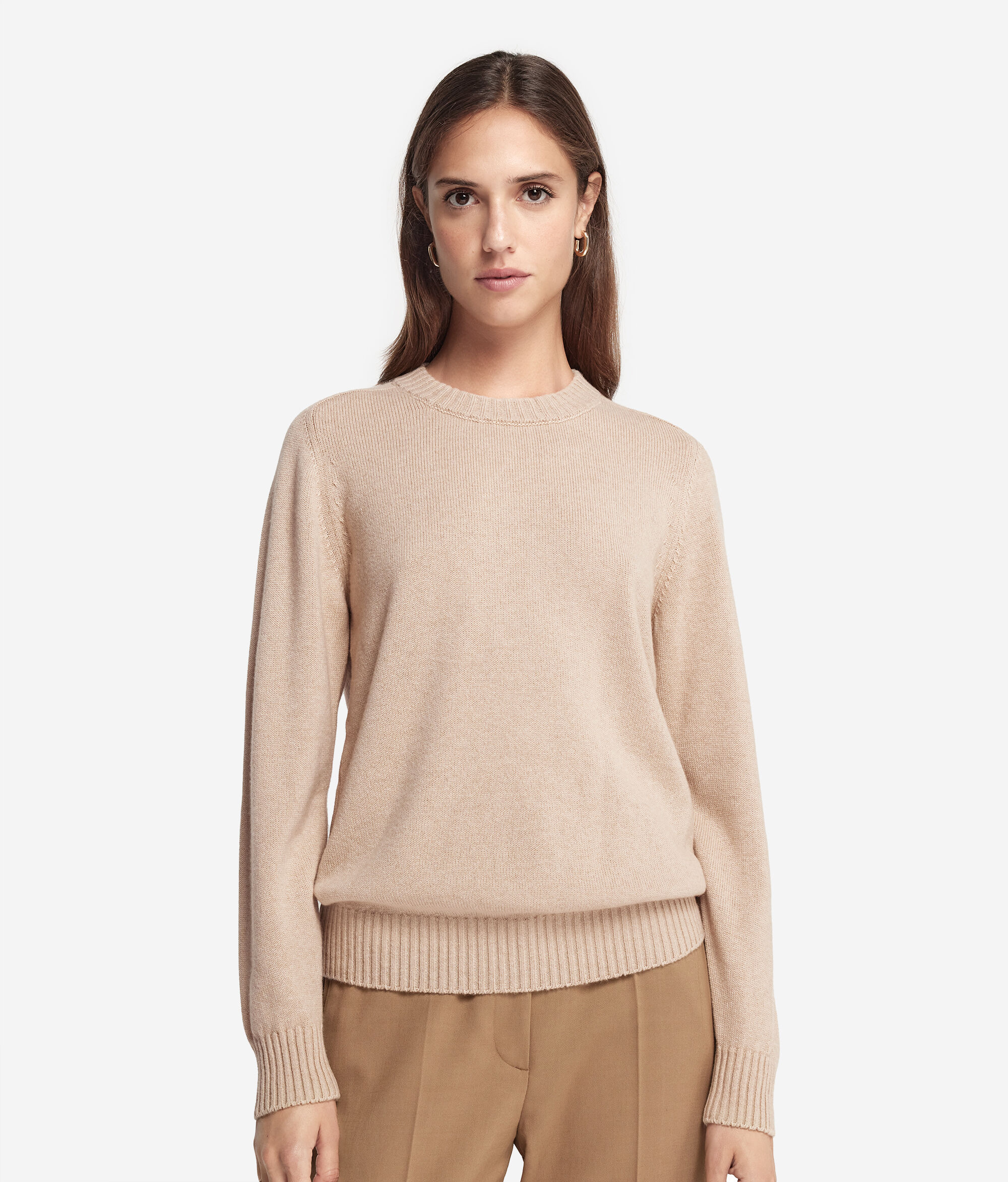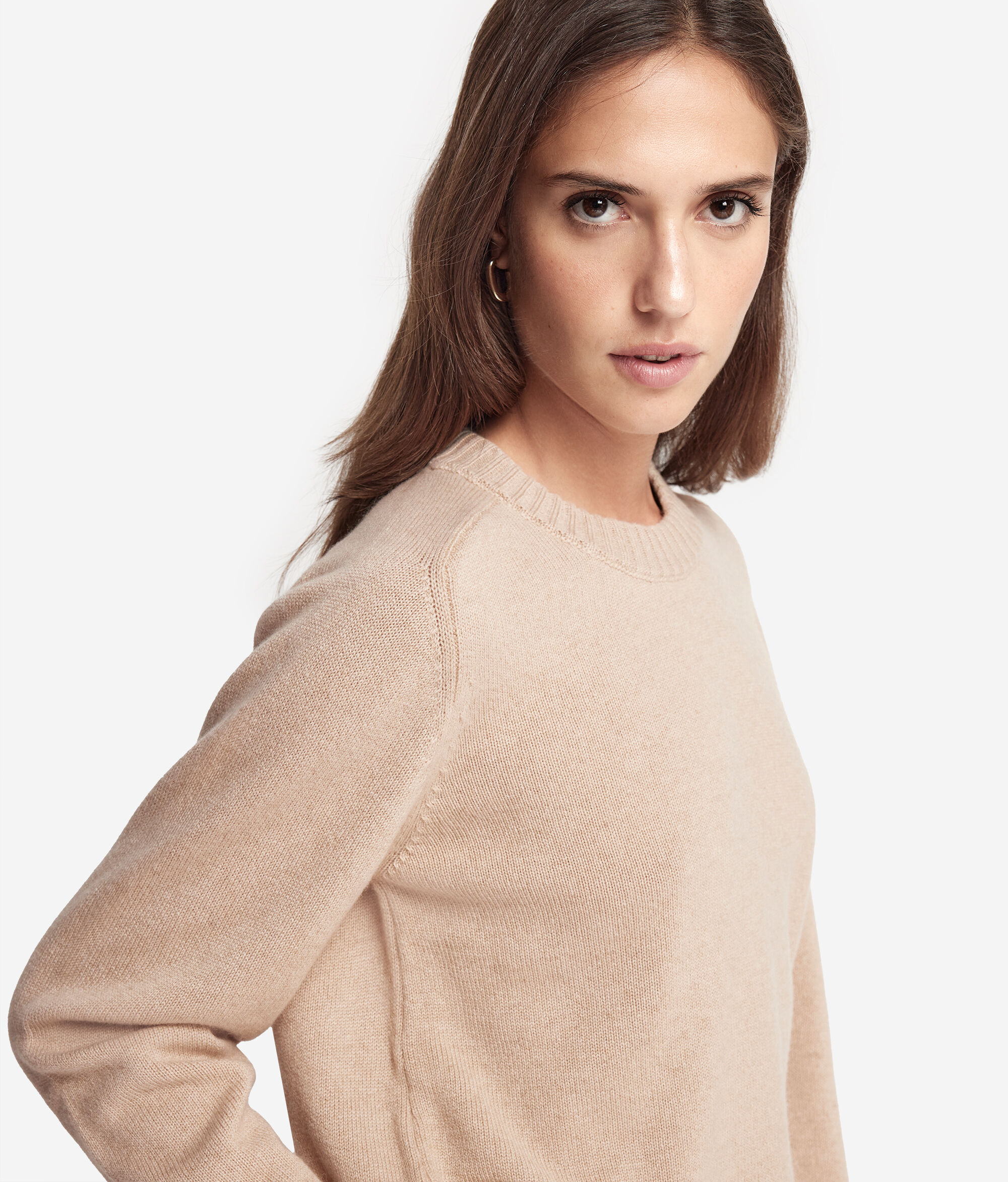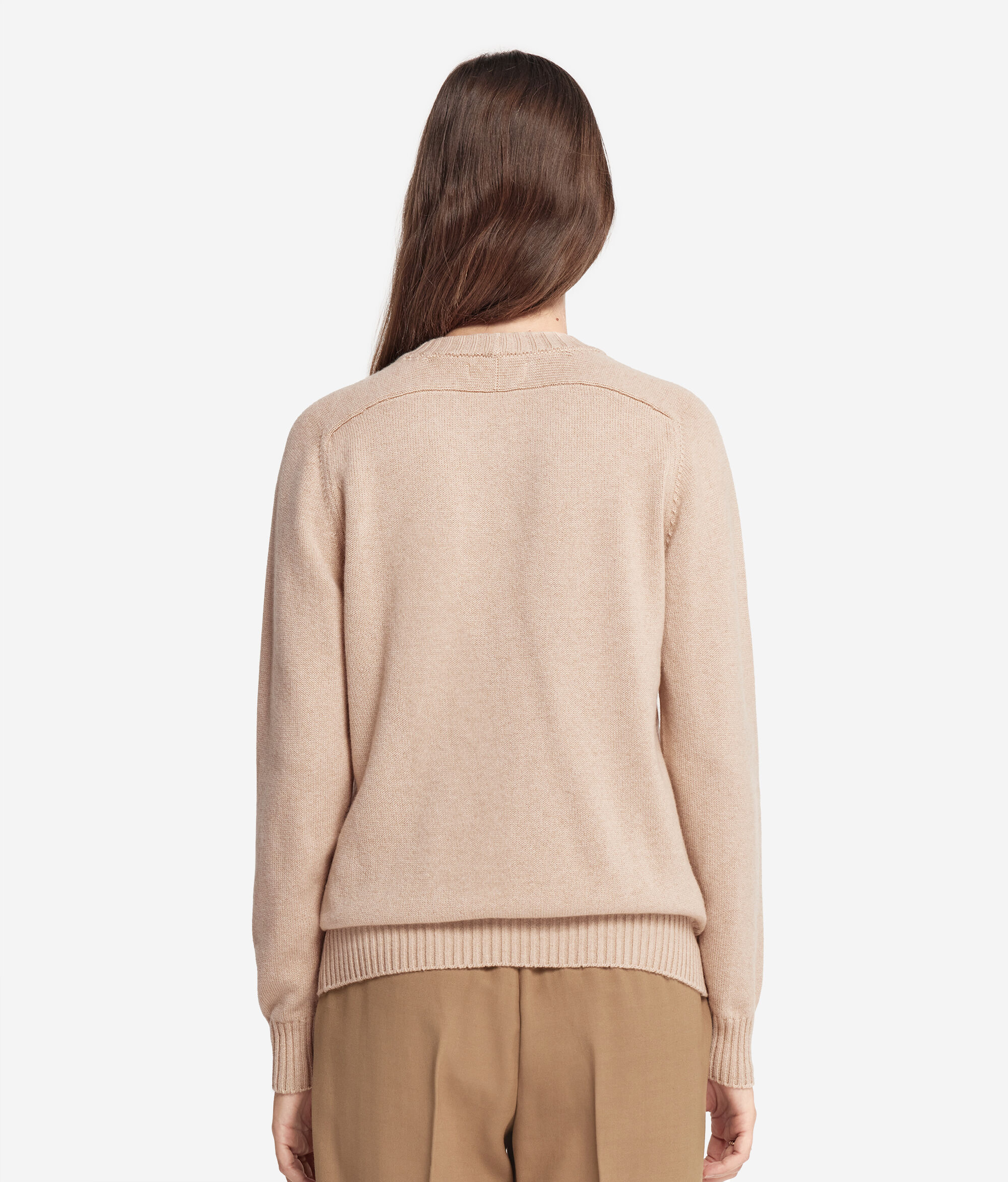 ネックライン、カフスとトリミングをリブで仕上げることで本質的なスタイルに華やかさを添えた、純粋なウルトラソフトカシミヤ製のクルーネックセーター。快適さと洗練性を完璧に組み合わせた、サドルラグランスリーブのショルダー部分がデザインのポイントとなっています。