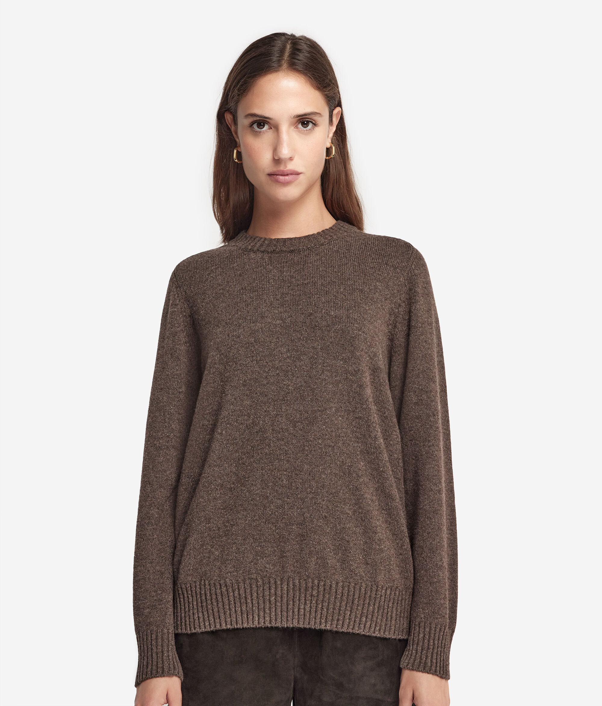 ネックライン、カフスとトリミングをリブで仕上げることで本質的なスタイルに華やかさを添えた、純粋なウルトラソフトカシミヤ製のクルーネックセーター。快適さと洗練性を完璧に組み合わせた、サドルラグランスリーブのショルダー部分がデザインのポイントとなっています。