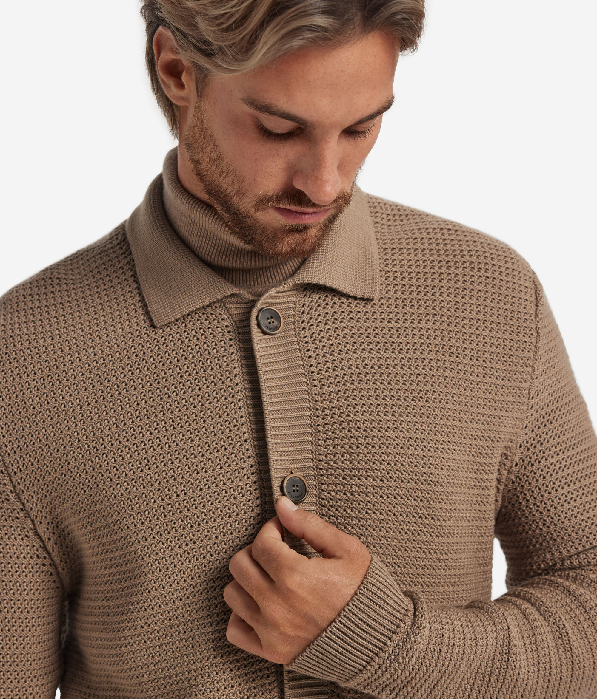 すっきりとしたデザインと素材の質感がポイントとなった、ウールニット地で作られたシャツジャケット。構築感のある襟とシングルブレストのボタンが、レギュラーフィットによって引き立てられた、すっきりと洗練されたシルエットを生み出します。あらゆるシーンで活躍するこのアイテムは、カジュアルに単体で着用することも、軽やかなアウターとして着用することもでき、レイヤリングやミニマルでシックなルックの構築に最適です。