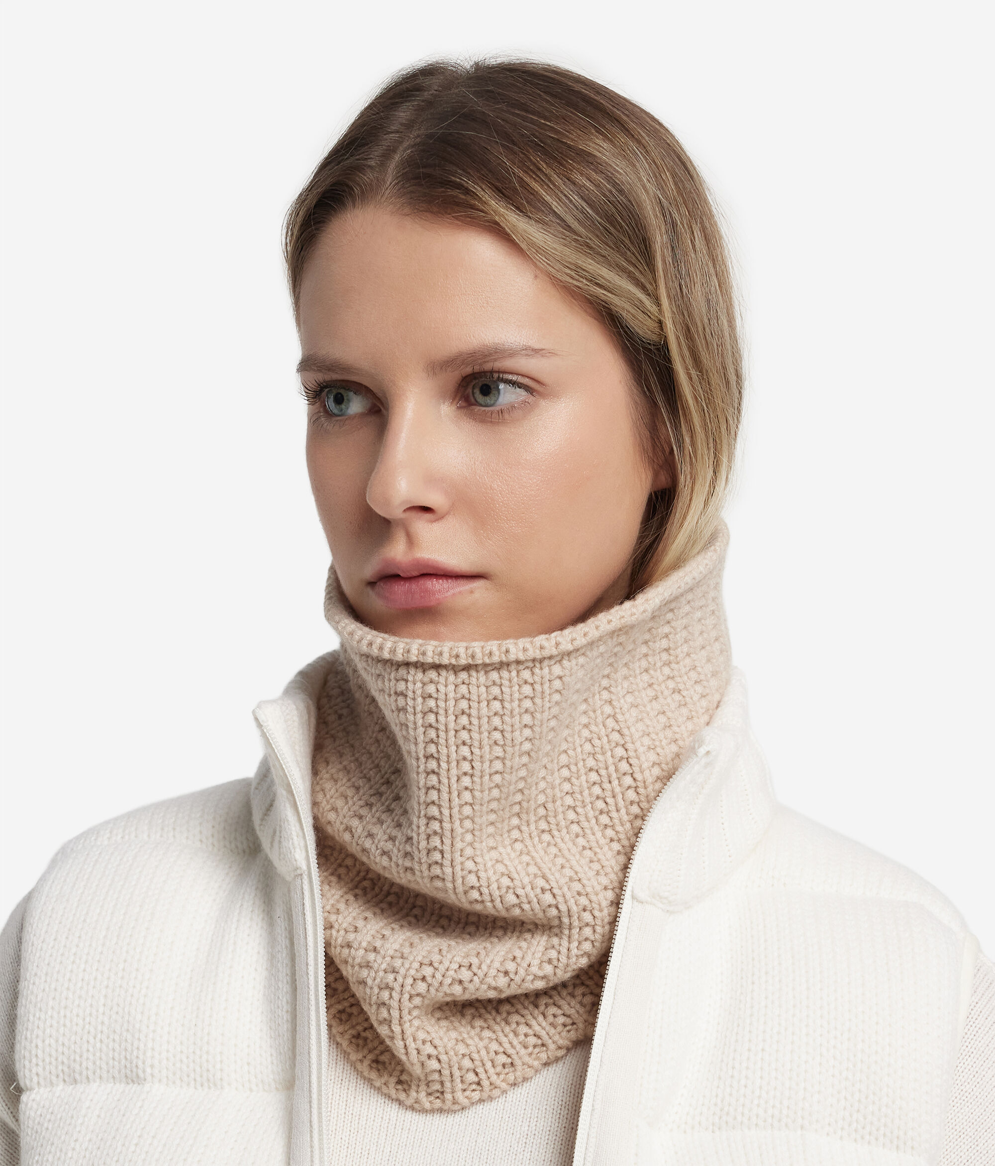 高級カシミヤで作られた、シンプルで本質的なラインが特徴のスヌード。やわらかな質感にリブ編み模様でユニークさをプラスすることで、洗練された優雅さをルックに与えてくれるオールマイティアクセサリーに仕上げました。