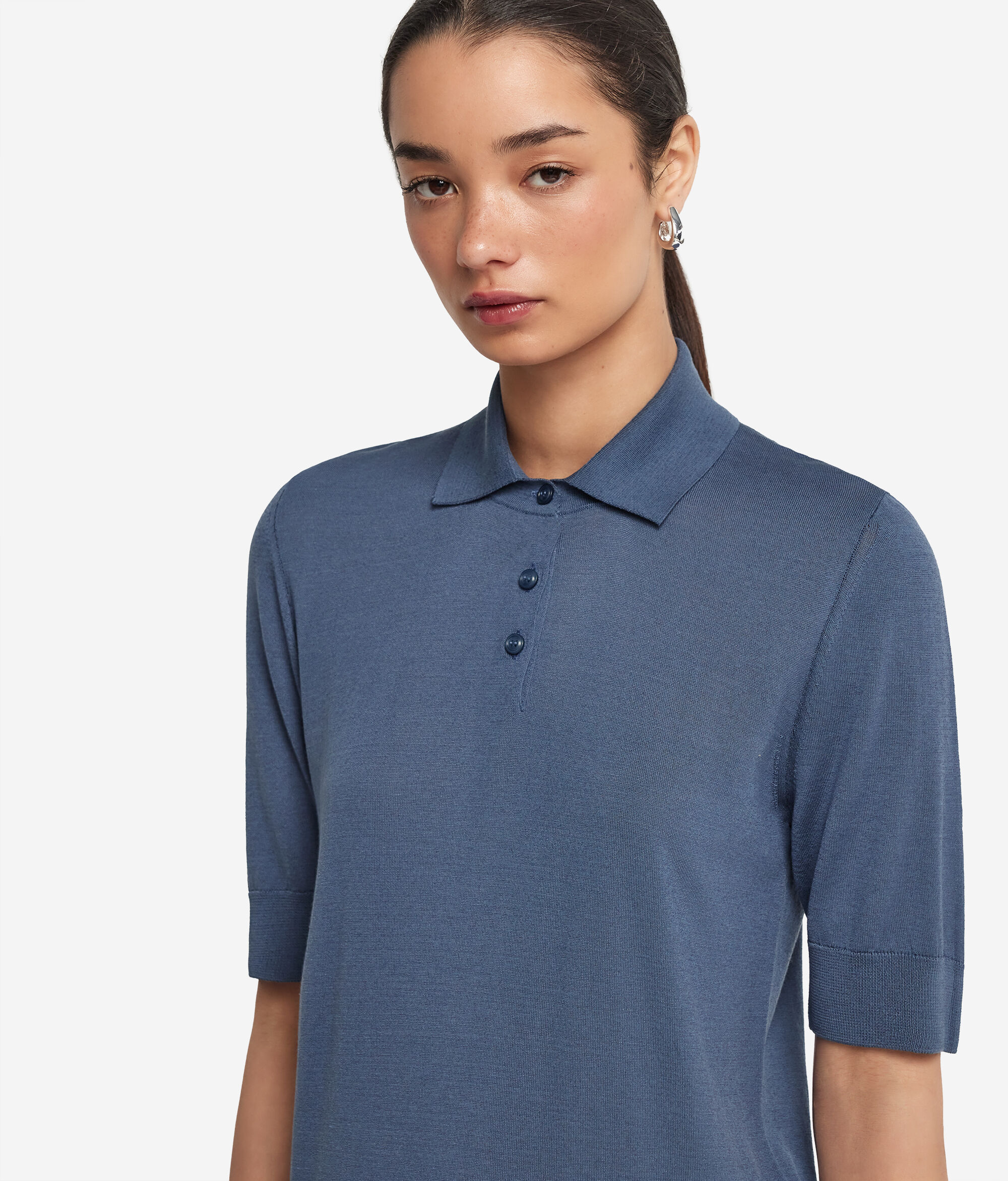 すっきりとして優雅なデザインが特徴となった、シルクとコットンの混紡素材を使用したポロシャツ。ボタン開閉部とネックライン、袖口とトリミングにあしらった繊細なリブ編み仕上げが個性的です。軽やかで本質的なデザインの着こなしやすいこのアイテムは、カジュアルな装いにも、より洗練されたルックの仕上げにも活躍します。
