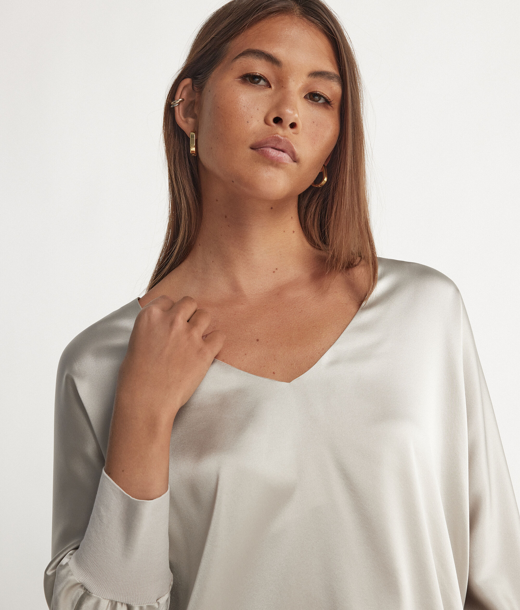 シルク Vネック ブラウス