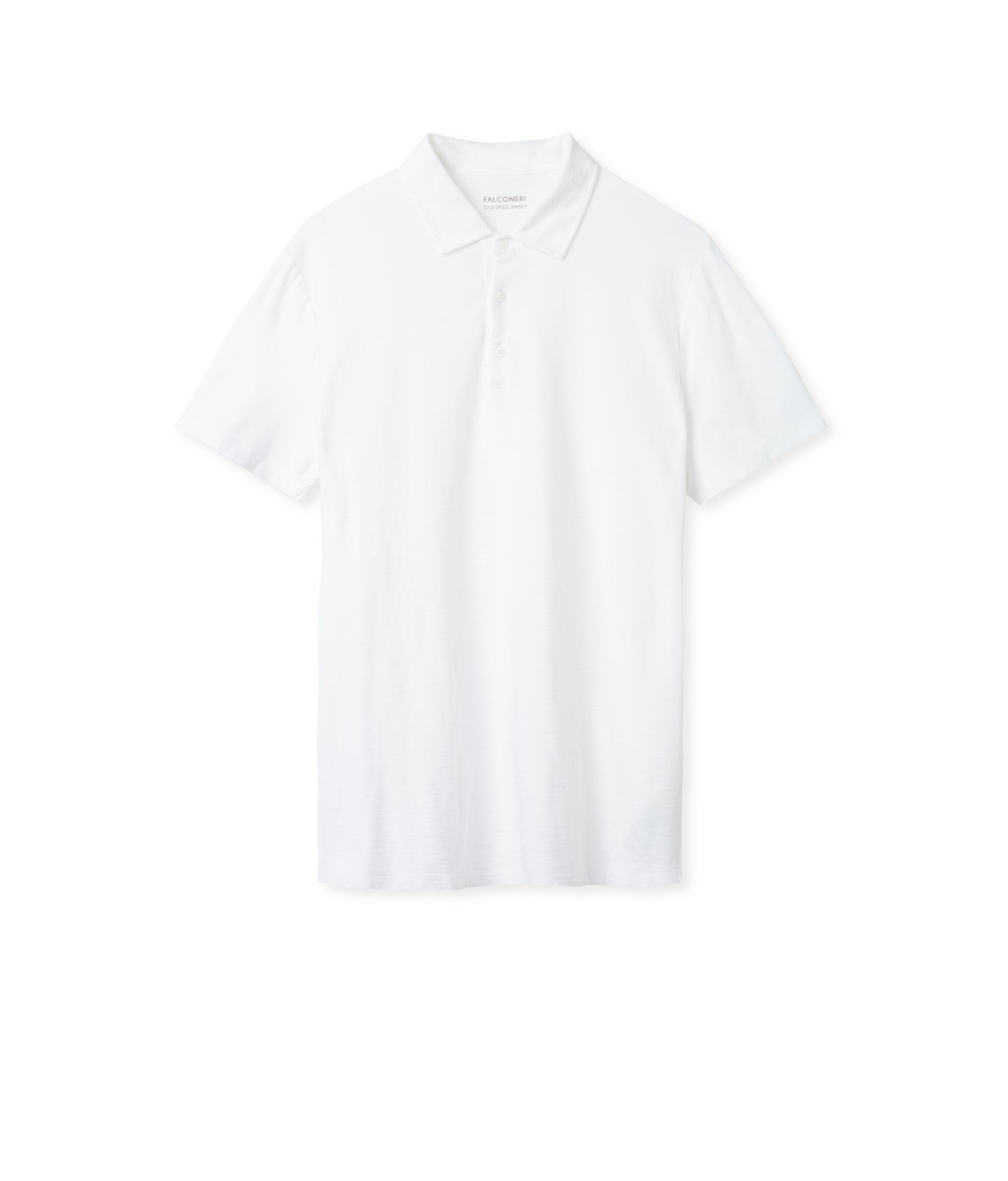 マルフィレコットンを使用したFalconeriの半袖ポロシャツ。クラシックなラインと軽やかでさらりとした肌触りを特長とする、夏のコーディネートには欠かせない1着です。コットン素材に施した特殊なツイスト加工により、ガーメントダイを施すと不均一でムラのある染色効果が得られます。このように一つひとつのアイテムをユニークに仕上げることで、特別な価値を生み出しています。