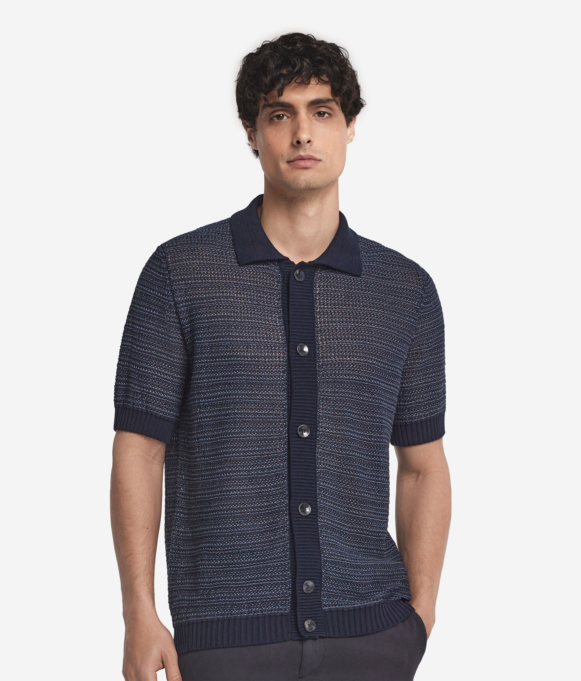横ストライプとこだわりのグラデーションを一体化した柄入りのコットンニット。カジュアルなエレガンスを象徴するような一着です。中央にあしらわれた開閉用のボタンが、品のあるシンプルなデザインに個性をプラス。調和とバランスのとれたボリューム感が自然ともたらす軽やかな着心地は、あらゆるシーンにぴったりです。