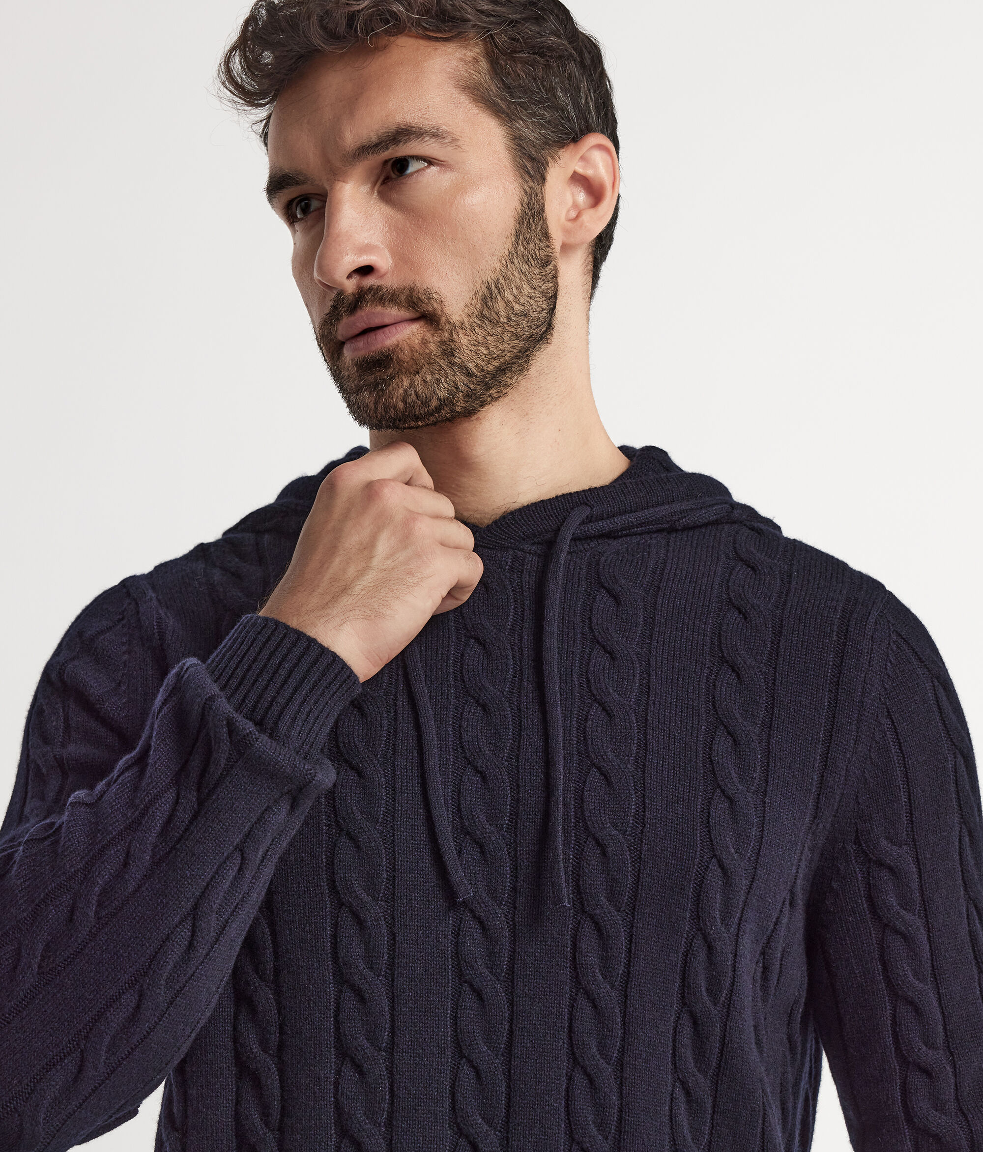 ゆったりとしたラインと北欧風のディテールが出会った、高級ウルトラソフトカシミヤ製のスウェットパーカー。ボディとフード部分にあしらった伝統的なケーブルモチーフで立体的なタッチを与え、ファブリックを引き立てています。レギュラーレングスに仕立て、現代性と匠の技が光る品質の高さが完璧にミックスされた、注目の的になること間違いなしのアイテムです。