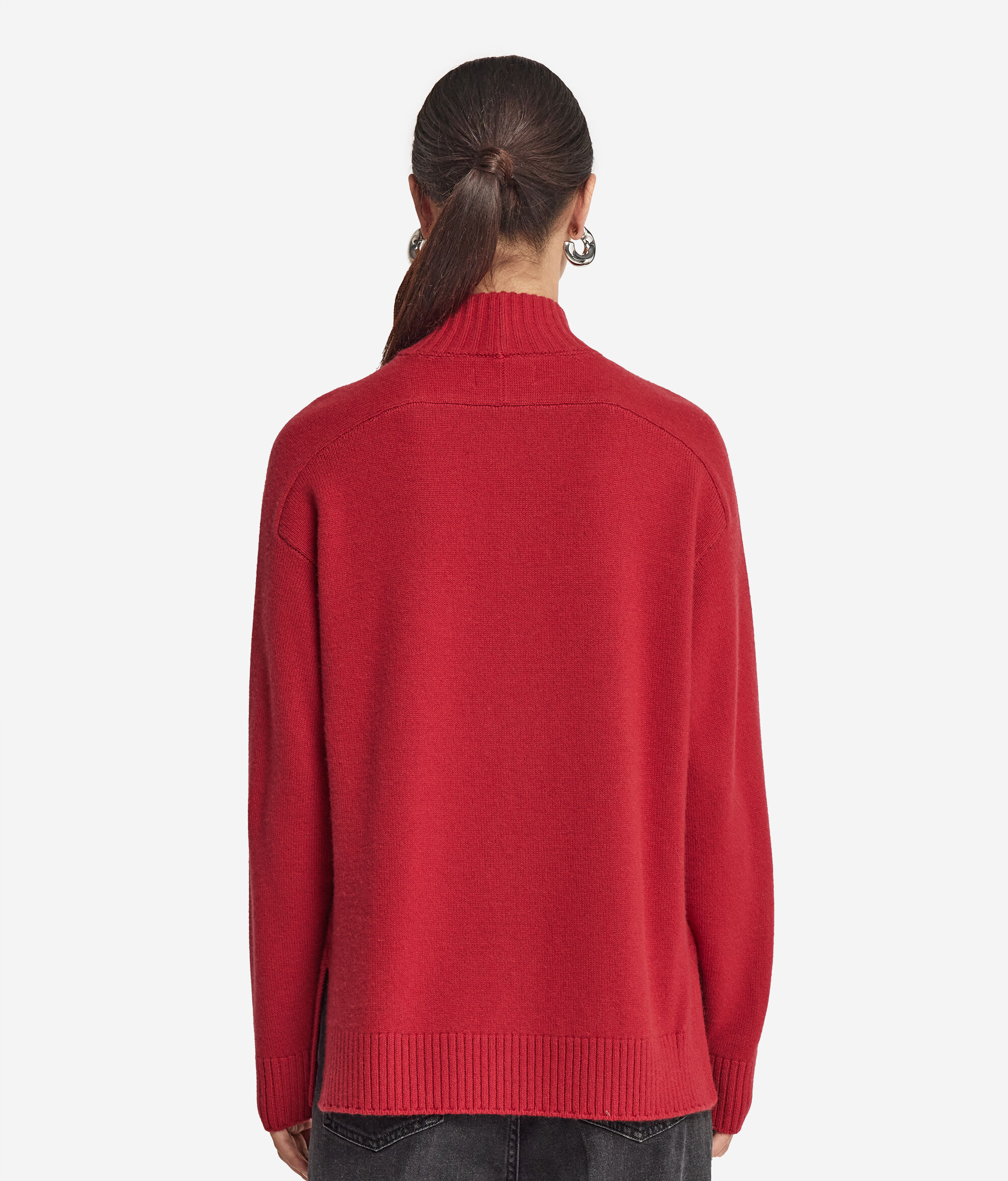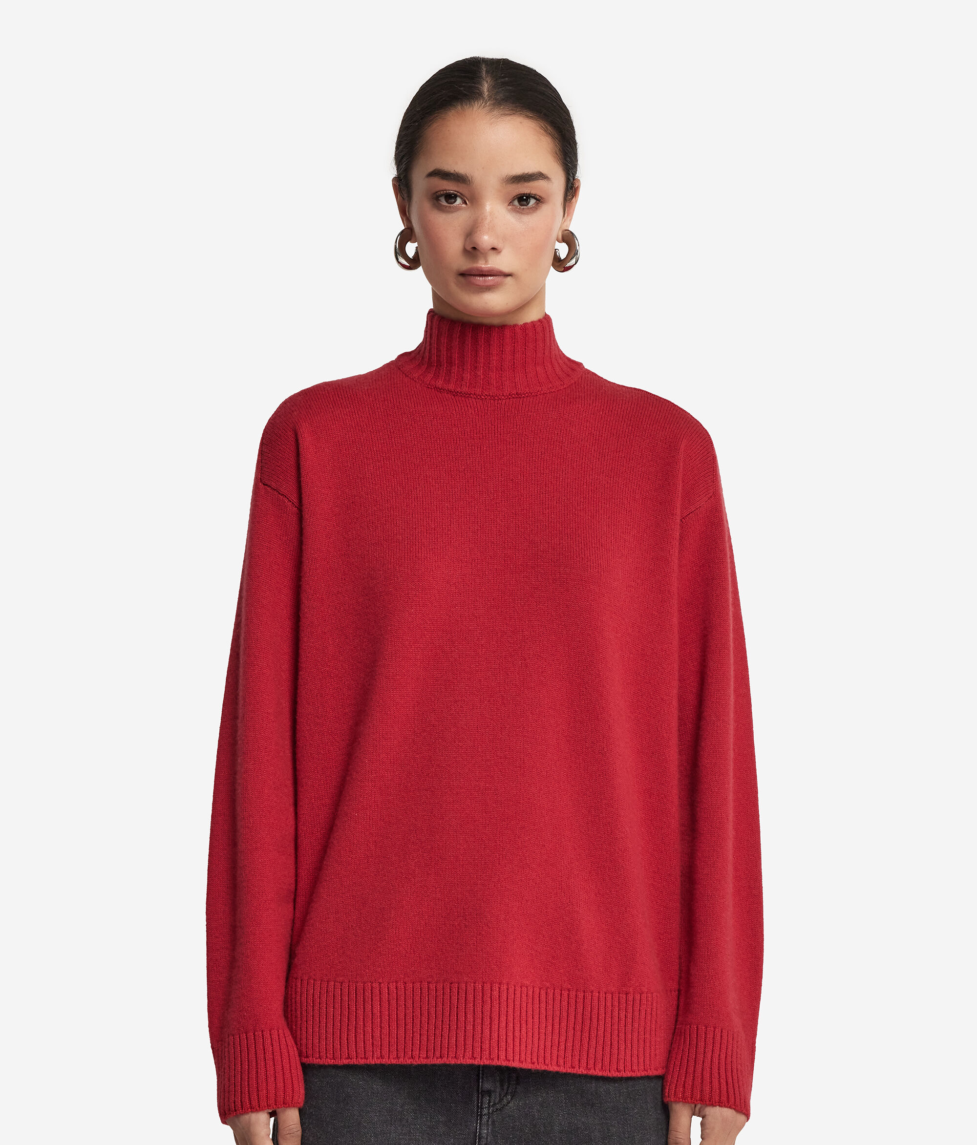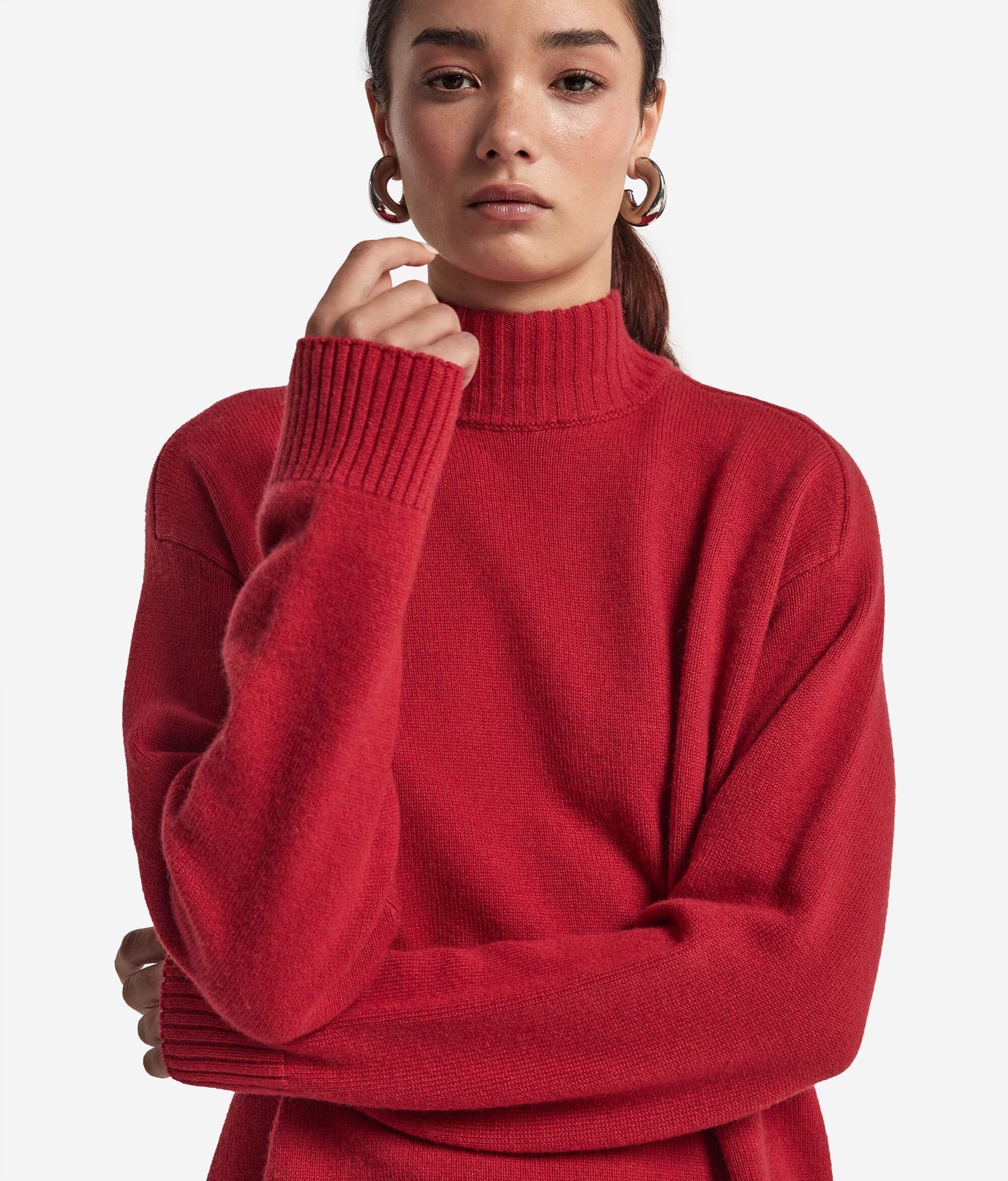 高級ヤーンとフェミニンなディテールが調和の中で融合した、ウルトラソフトカシミヤ製タートルネックセーター。サドルラグランショルダーでゆったりとした着心地を強調し、インフォーマルでありながら優雅なタッチをプラスするリブ編みのトリミングで仕上げています。