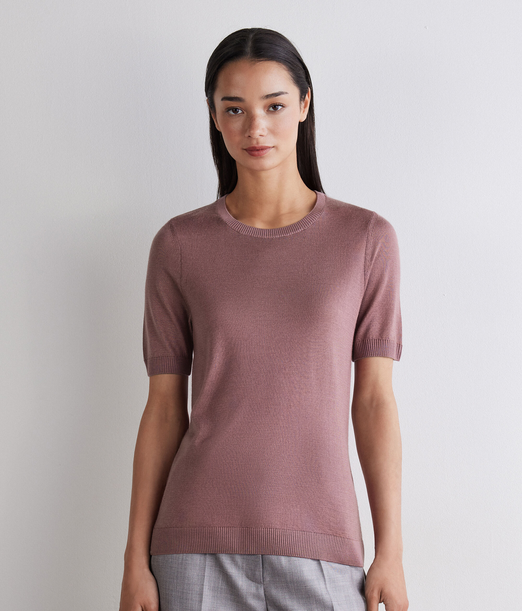 シルクファインカシミヤ 半袖クルーネック セーター