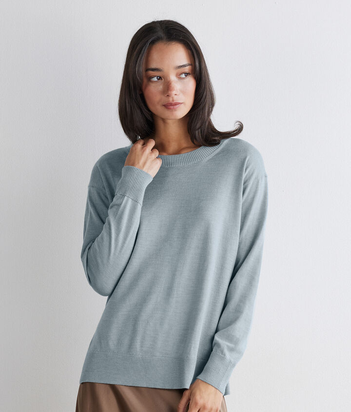 Pull à col rond fendu en cachemire ultra-doux