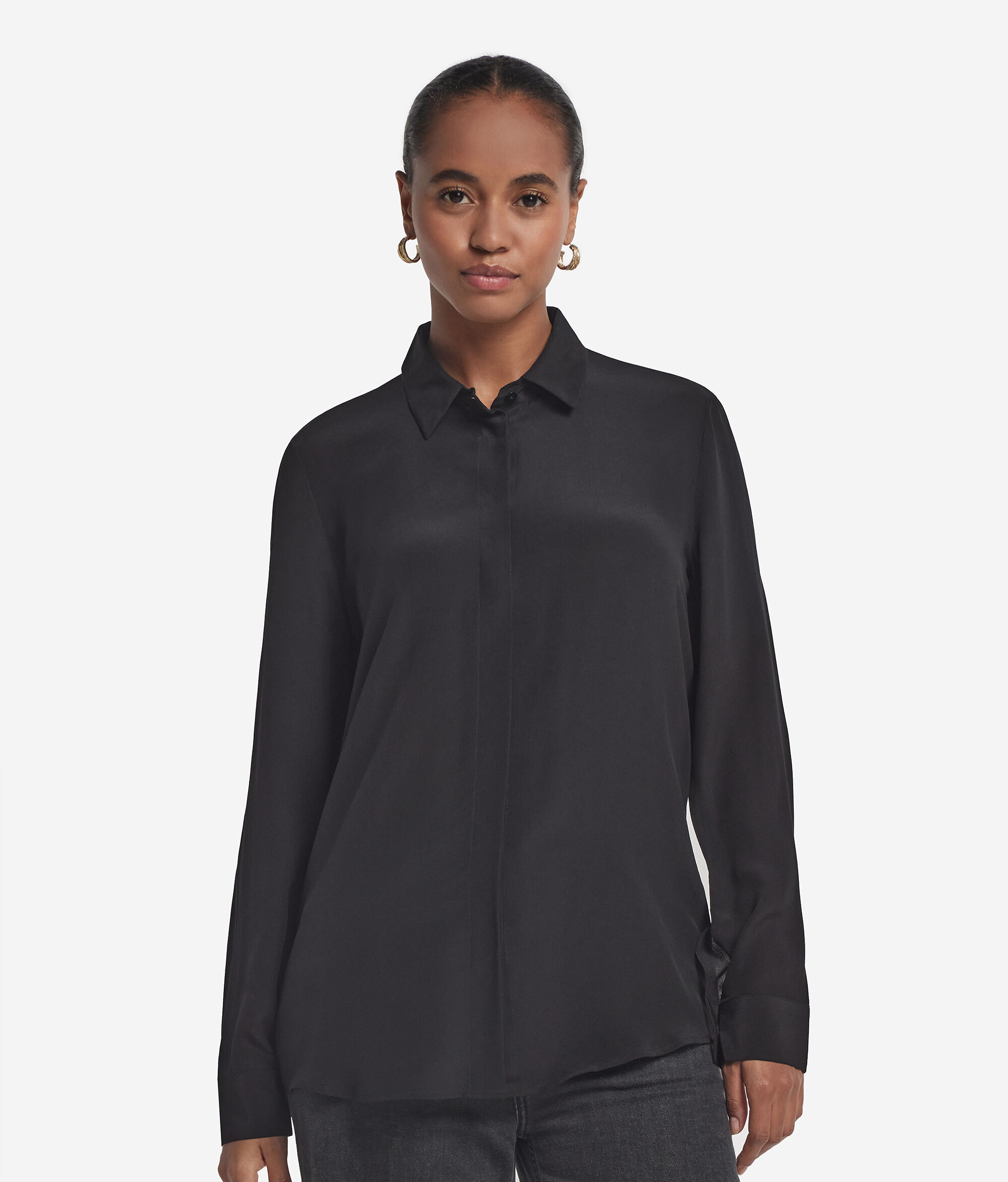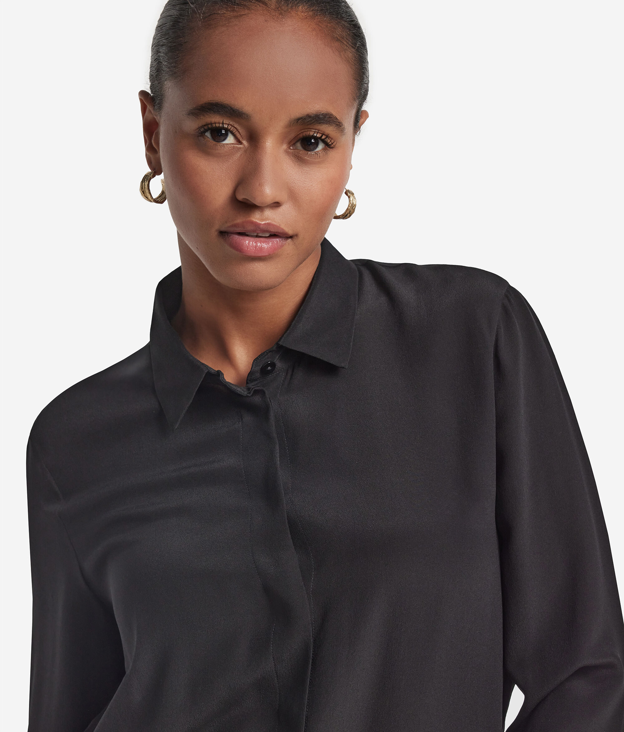 Confectionnée en pure soie, cette chemise pour femme associe élégance et confort grâce à une texture fluide et délicate sur la peau. Sa coupe standard sublime la silhouette avec un tombé naturel, tandis que son col classique lui confère une allure sophistiquée. Elle se ferme à l’aide de petits boutons assortis au tissu, soulignant la finesse des détails, et se ferme également au niveau des poignets avec un bouton identique qui ajoute une touche structurée au modèle. Sa coupe légèrement arrondie au dos, assure un tombé harmonieux et une aisance parfaite au porté. Son design épuré, rehaussé par une teinte unie intemporelle, en fait un incontournable du vestiaire féminin. Cette chemise en soie pour femme Falconeri se prête à toutes les occasions. Portez-la avec un jean brut et des mocassins pour un look décontracté chic ou associez cette chemise élégante à un pantalon habillé et des escarpins pour une silhouette plus sophistiquée.
