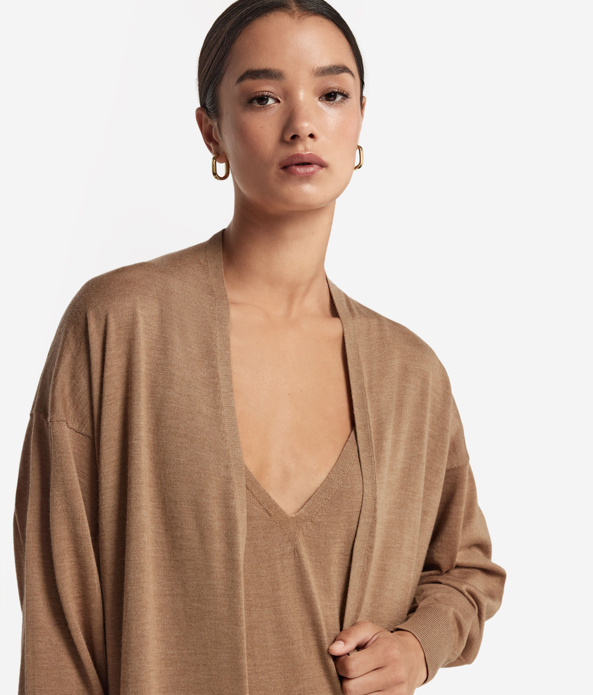 Ce gilet en prestigieux cachemire ultra-fin allie douceur et caractère. Ce modèle plutôt long est rehaussé d'une finition côtelée raffinée sur les poignets et le bord, apposant une touche de texture à ses lignes épurées. Ouvert sur le devant, son style naturel et fluide épouse délicatement les contours du corps, tandis que des fentes latérales sur le bas lui confèrent une touche de mouvement et de légèreté. Dotée d'emmanchures basses et d'une coupe standard, cette pièce est idéale pour une tenue décontractée mais chic.