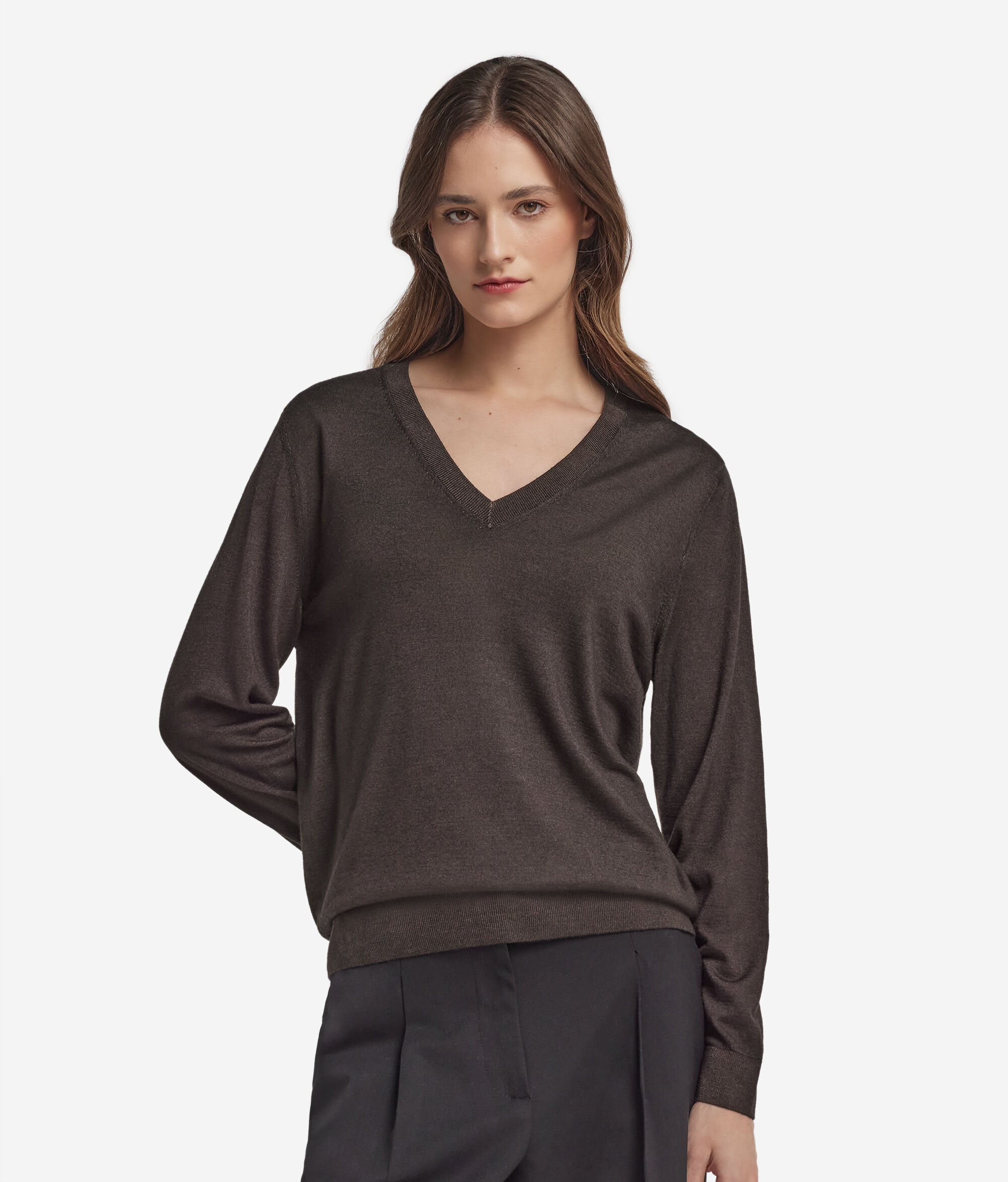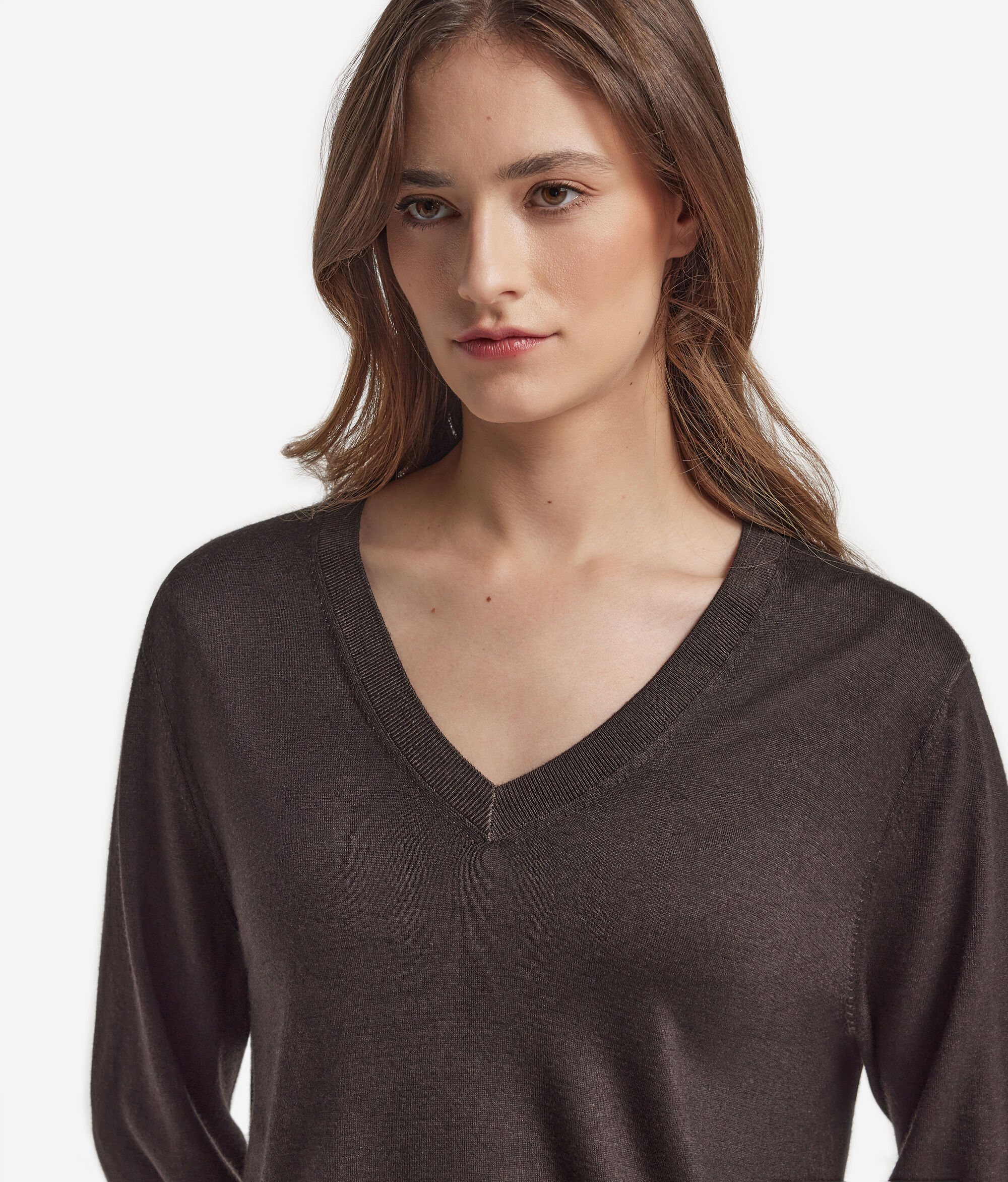 Apportez une touche de luxe et de confort à votre garde-robe, avec ce pull à col V en cachemire ultra-fin. Une finition côtelée sur l'encolure, les poignets et le bord subliment ce modèle en lui apportant une touche d'élégance minimaliste. Ses lignes fluides allient harmonieusement classicisme et style moderne, pour apporter une touche de luxe discrète et intemporelle à toutes les garde-robes.