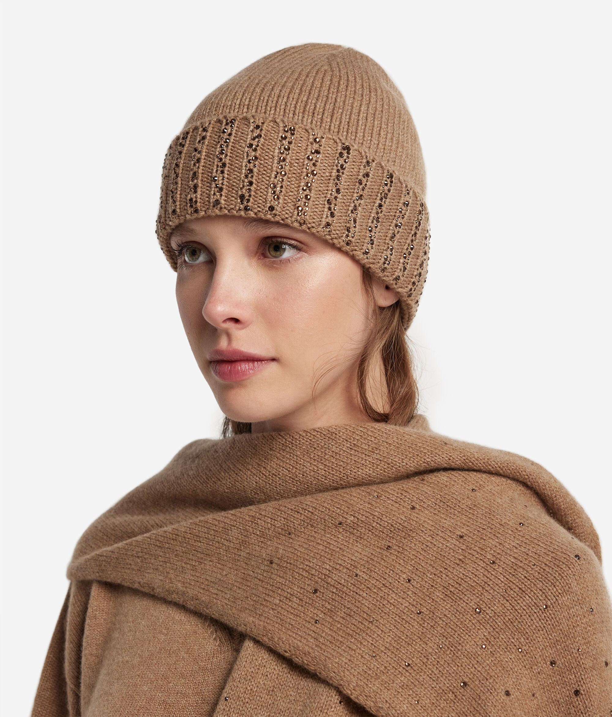 This hat envelops the head in a warm and light embrace of the quality of Ultrasoft Cashmere. The ribbed trim adds a touch of sophistication, while the inset rhinestones create a delicate play of light, catching the eye without being excessive. A true element of style, ideal for completing your looks in a chic and sophisticated way.