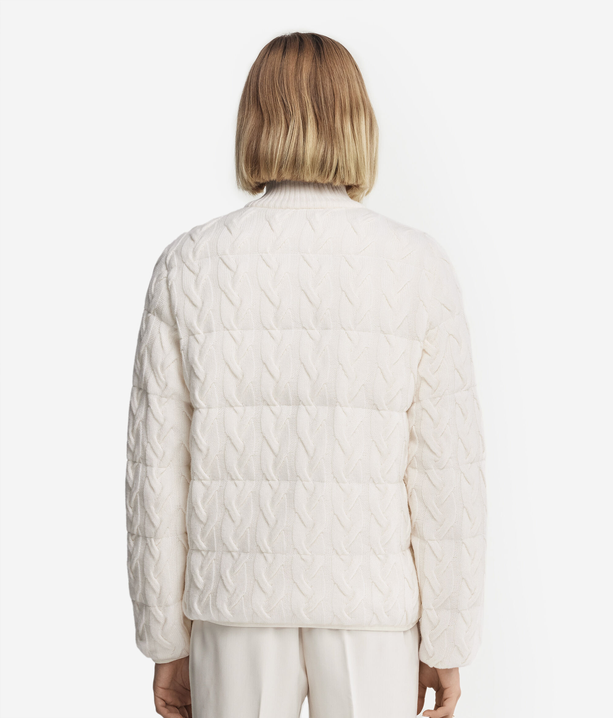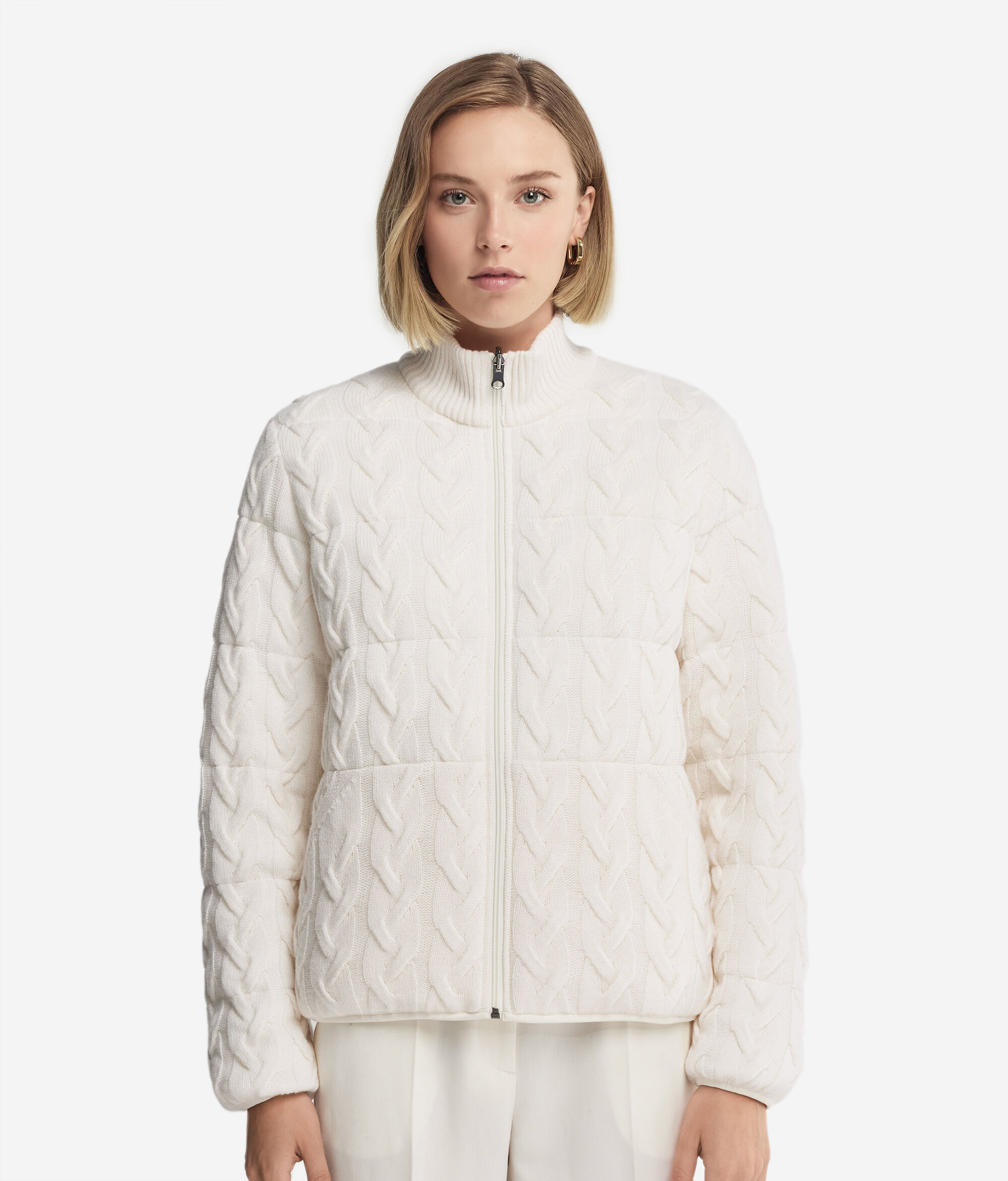 Discover la softness and elegance of this reversible down jacket. The technical fabric lining ensures comfort and warmth, while the Ultrasoft Cashmere exterior with a cable knit pattern offers a soft and sophisticated texture. The zip fastening and pockets on both sides offer practicality and utility without jeopardising its style. The balance between classic and modern joined with the use of fine materials make this garment sophisticated and comfortable, which enriches every wardrobe with a tou