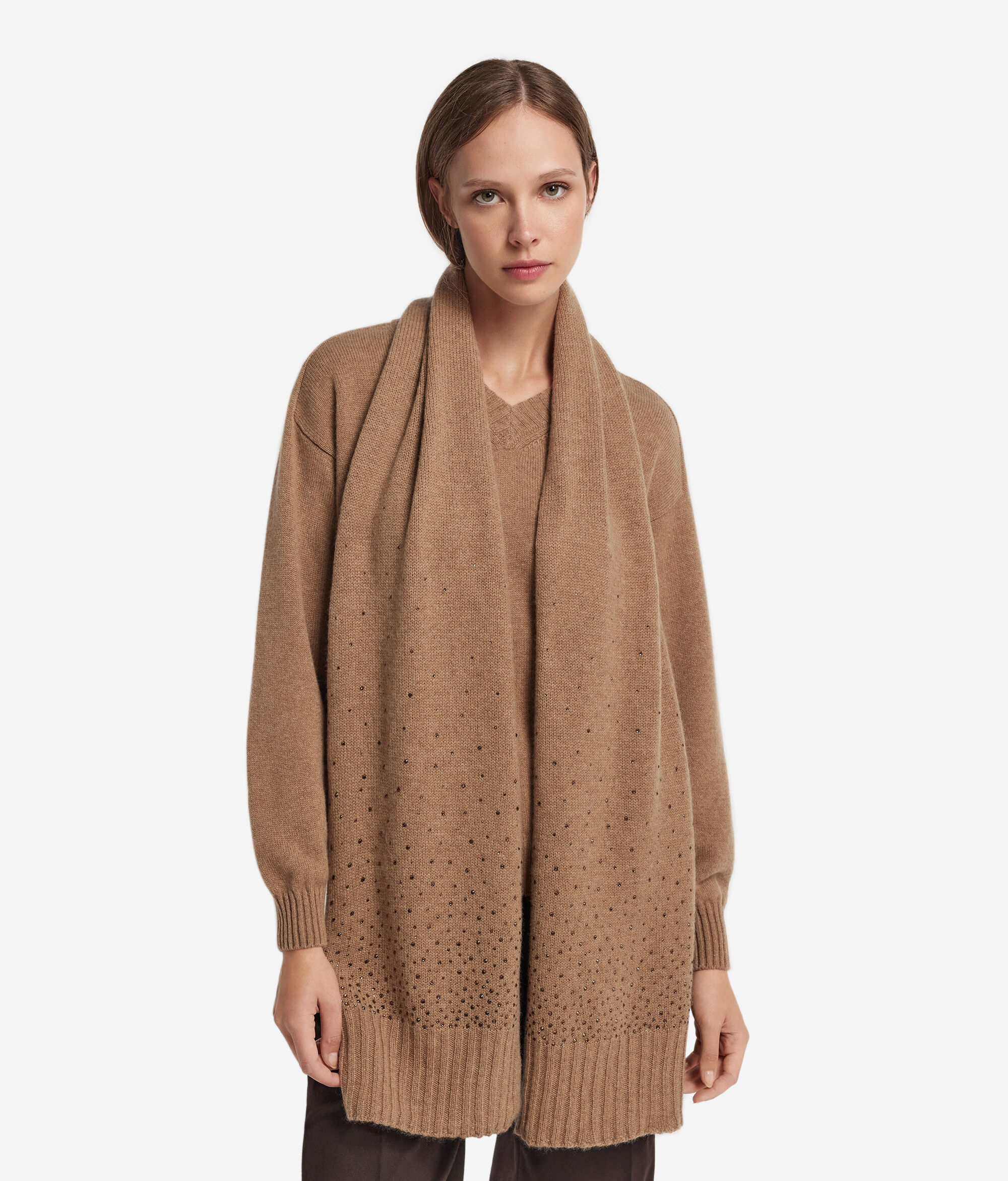 Cosy and luxurious, this Ultrasoft Cashmere scarf is the ideal accessory to provide warmth and protection during the colder months. At the ends, an elegant detail of sparkling degradé rhinestones catches the light, creating a brilliant effect that adds a unique touch of sophistication.